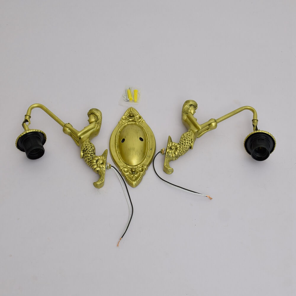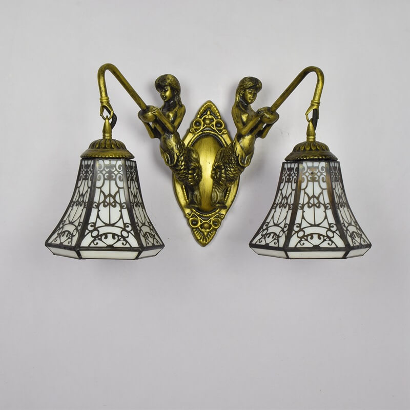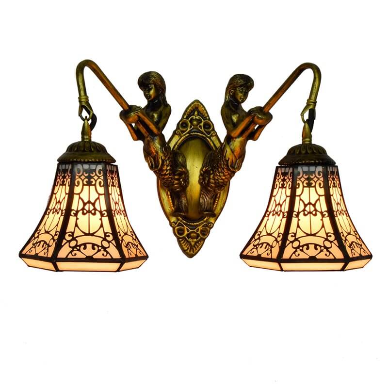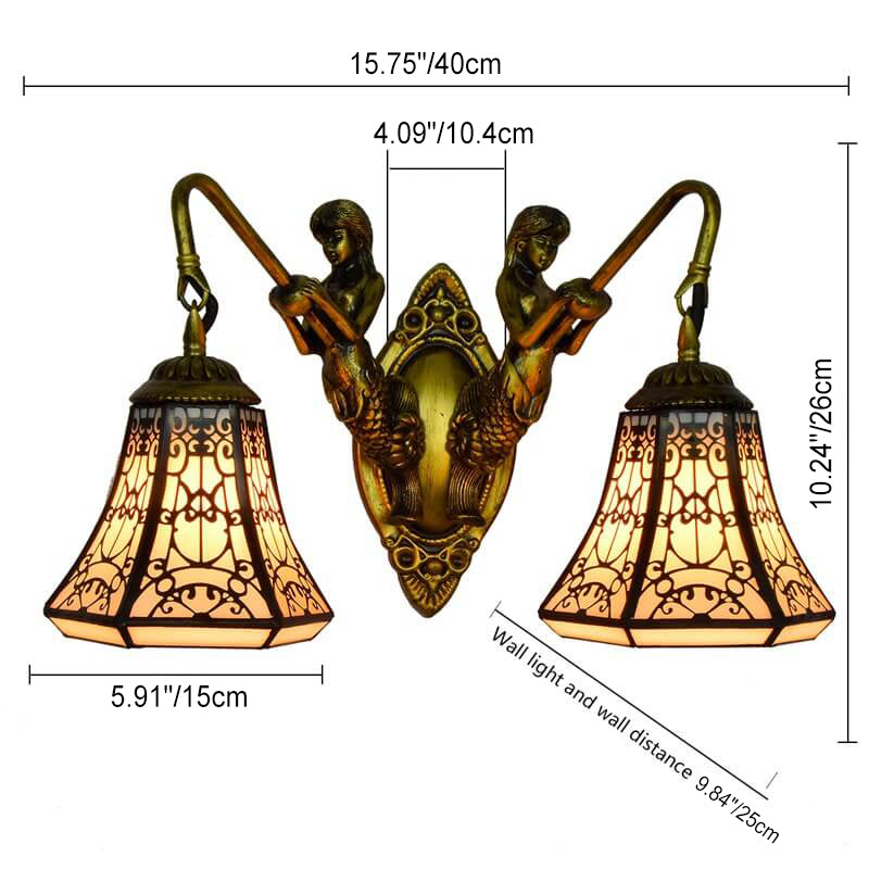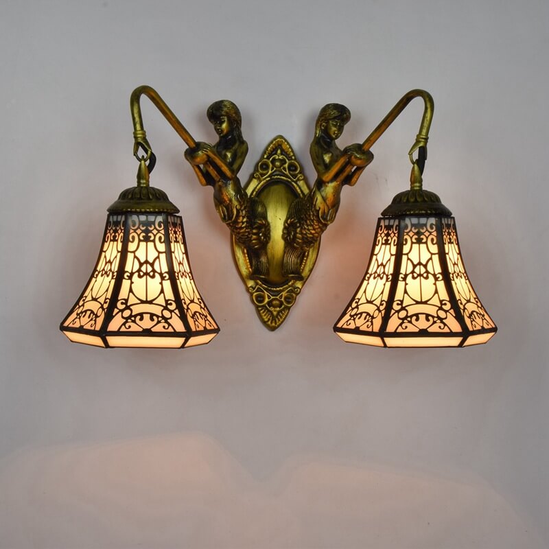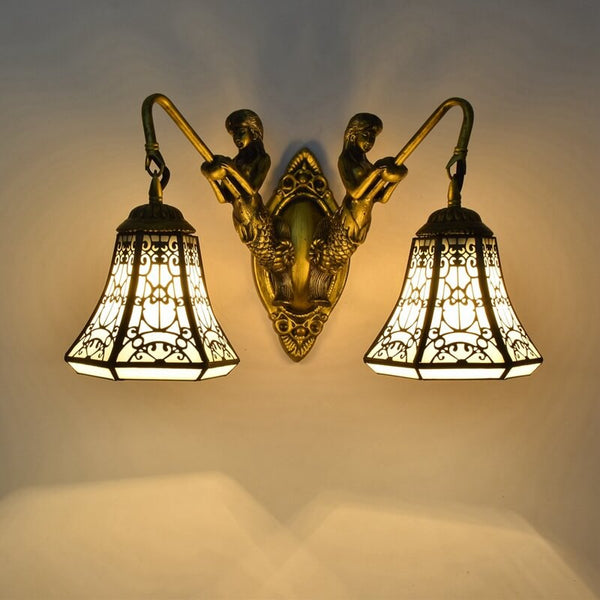 Tiffany Arabesque Mermaid Lamp Arm Stained Glass 2-Light Wall Sconce Lamp