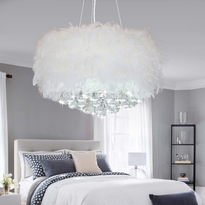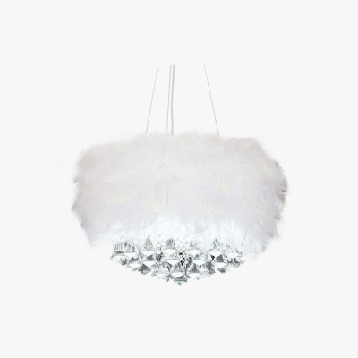 O'Moore Lámpara de araña redonda moderna de lujo, pluma/cristal, blanco