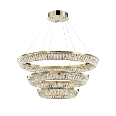 Lámpara de araña moderna de cristal dorado de lujo Marilyn, tricírculo