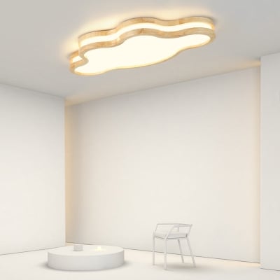 Lámpara de techo empotrada en forma de luna/nube/estrella Minori, madera y acrílico