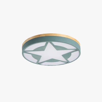 Lámpara de techo empotrada de madera y acrílico con forma de estrella redonda moderna Quinn, blanco/verde/gris