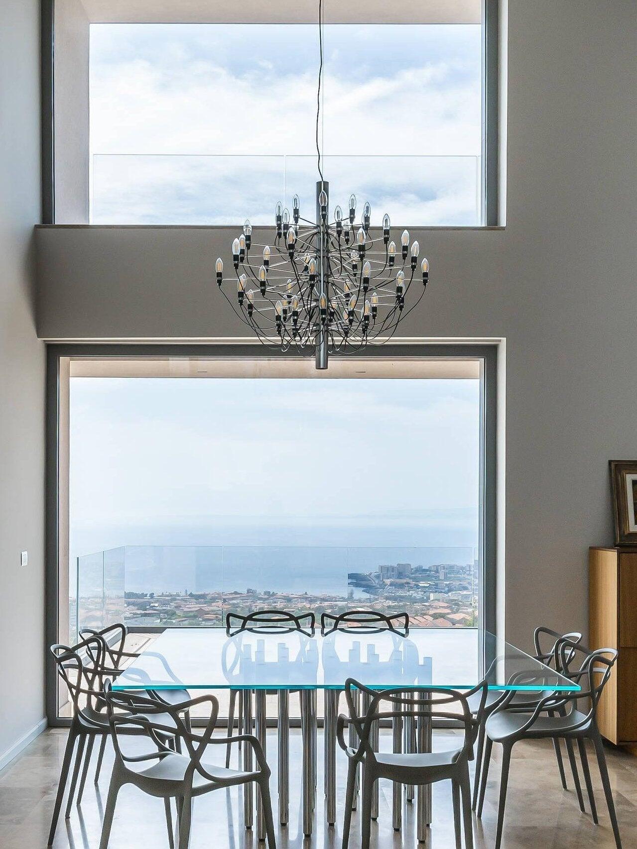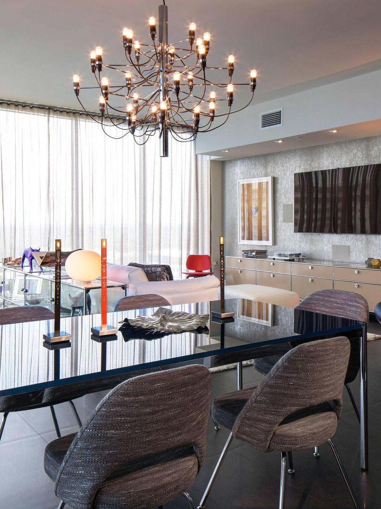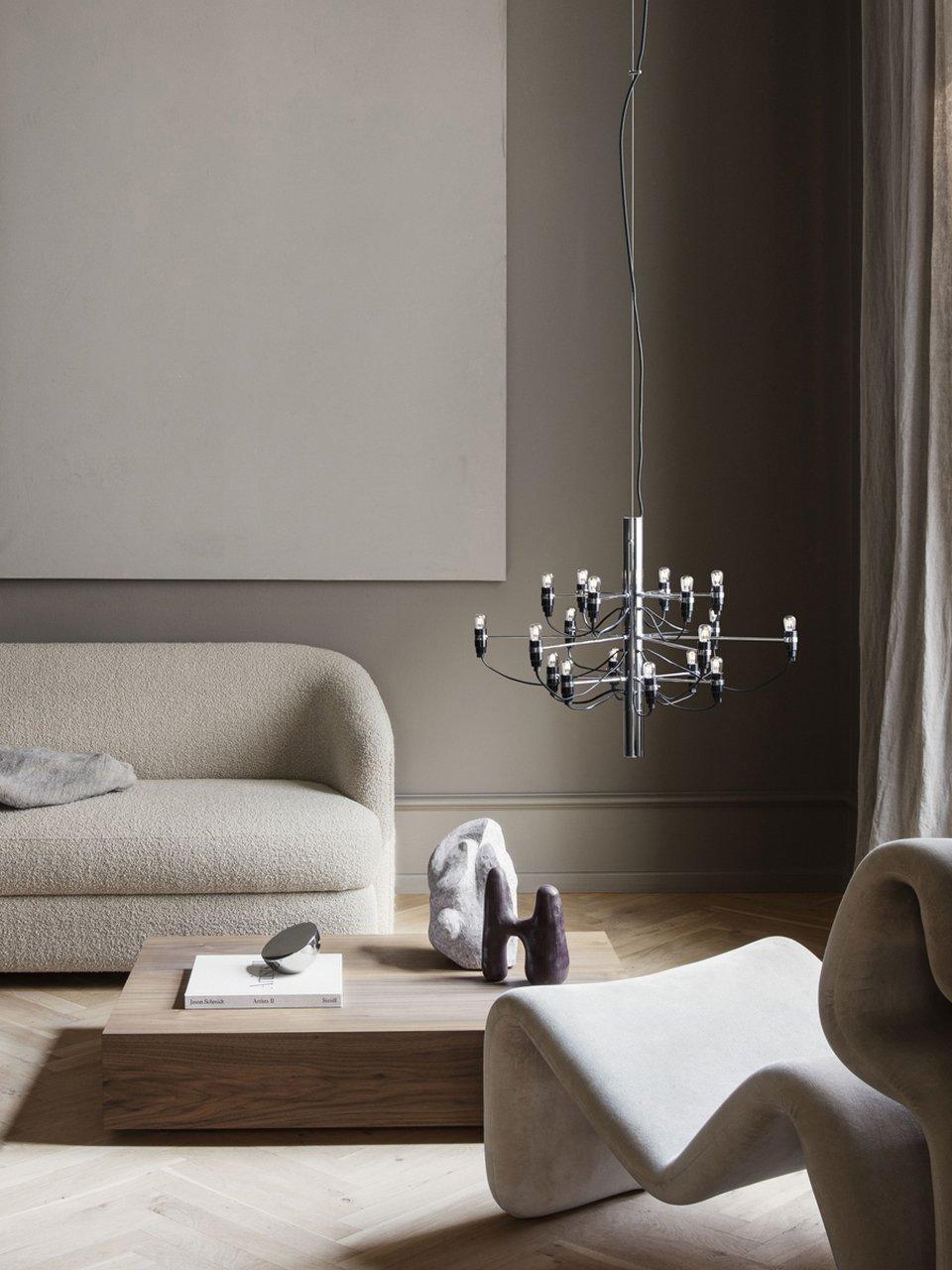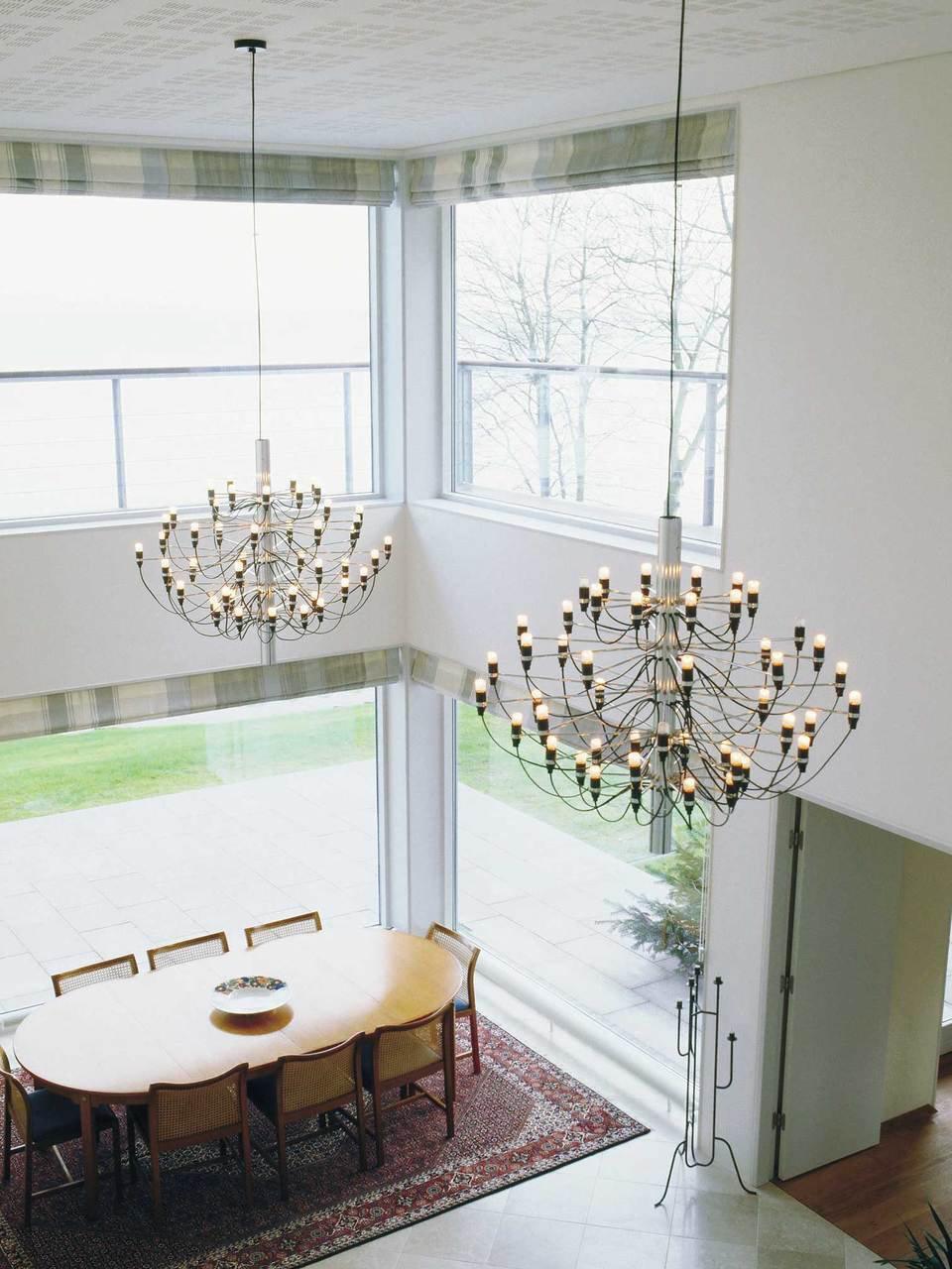 Desde 1958, este diseño icónico de lámpara colgante 2097 ha servido como una representación ultramoderna de la lámpara de araña tradicional de mediados de siglo. Cada detalle de esta lámpara de techo de última generación es excepcional, desde el acabado pulido tipo espejo de su estructura principal de acero hasta la forma en que cada bombilla está equipada con su propio brazo horizontal y el elegante cableado que serpentea por el tallo.*100002 *