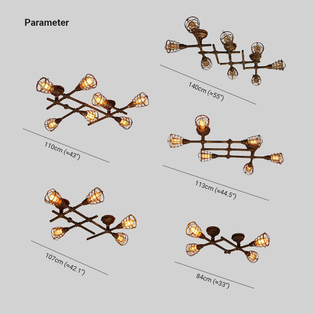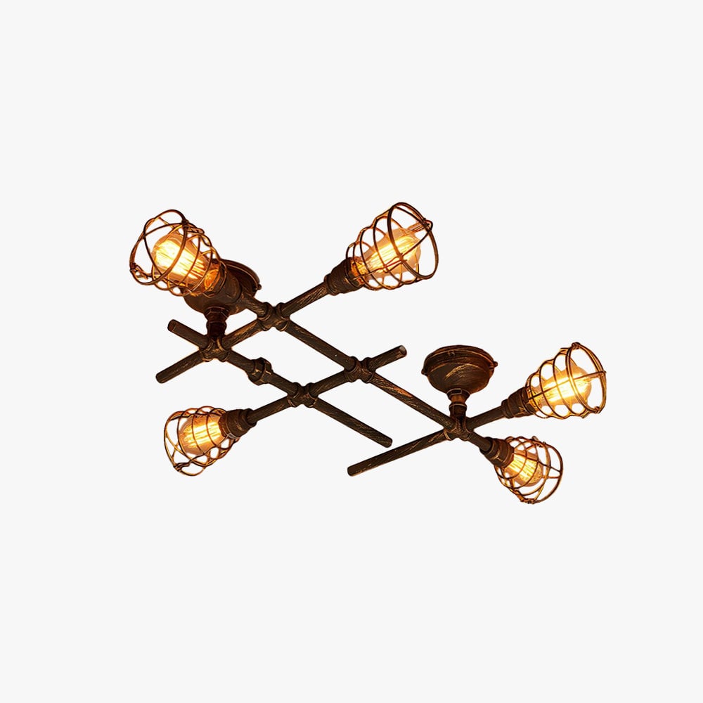 Lámpara de techo empotrada múltiple de metal industrial Alessio, latón