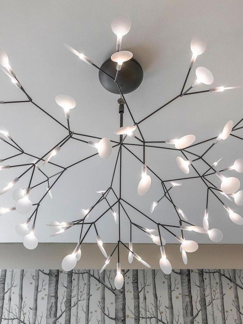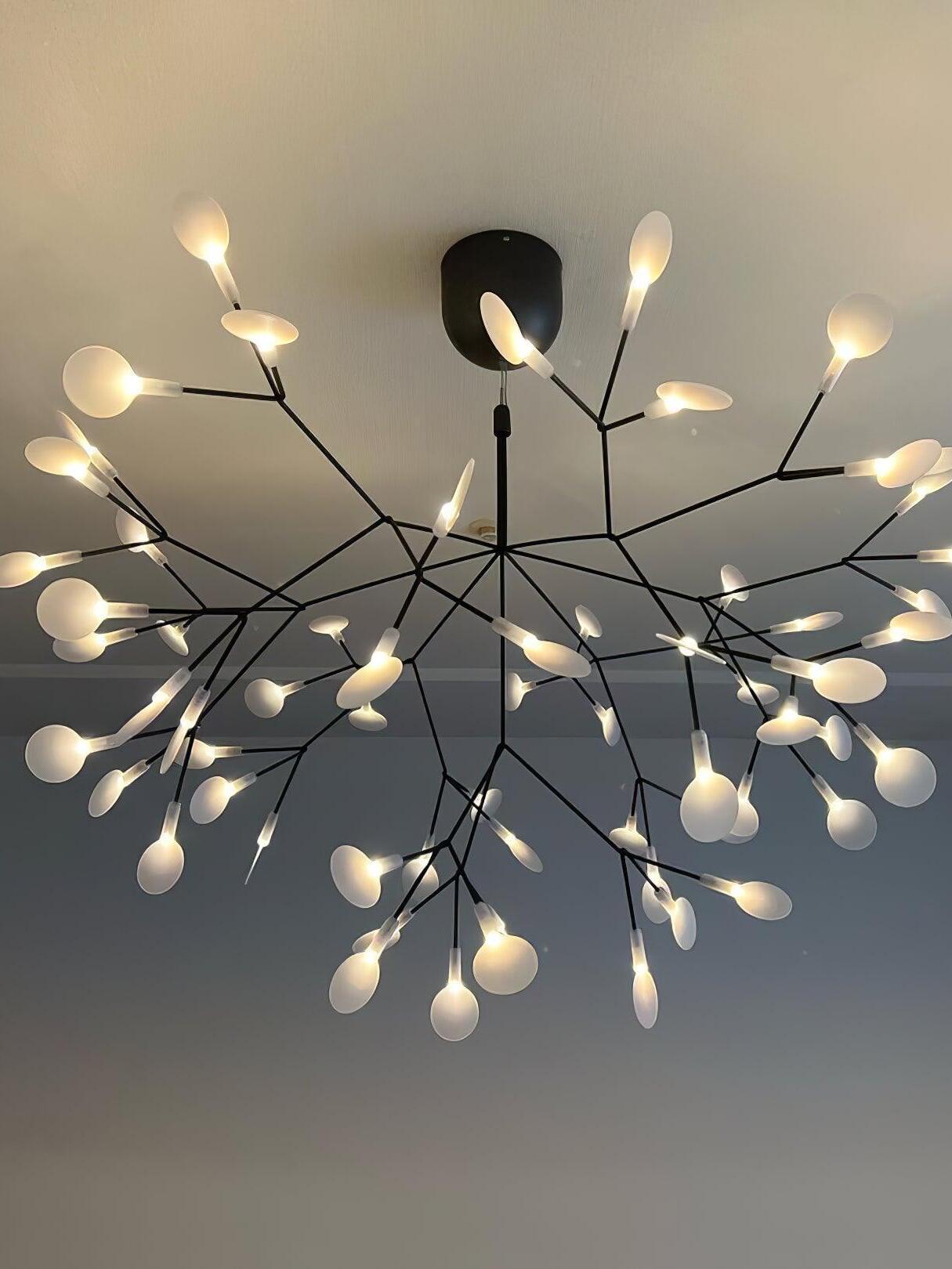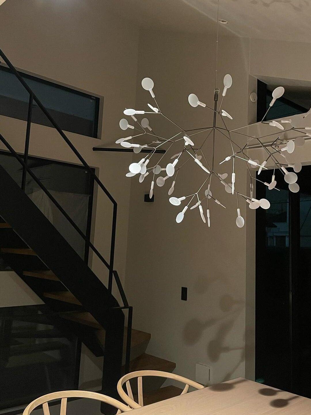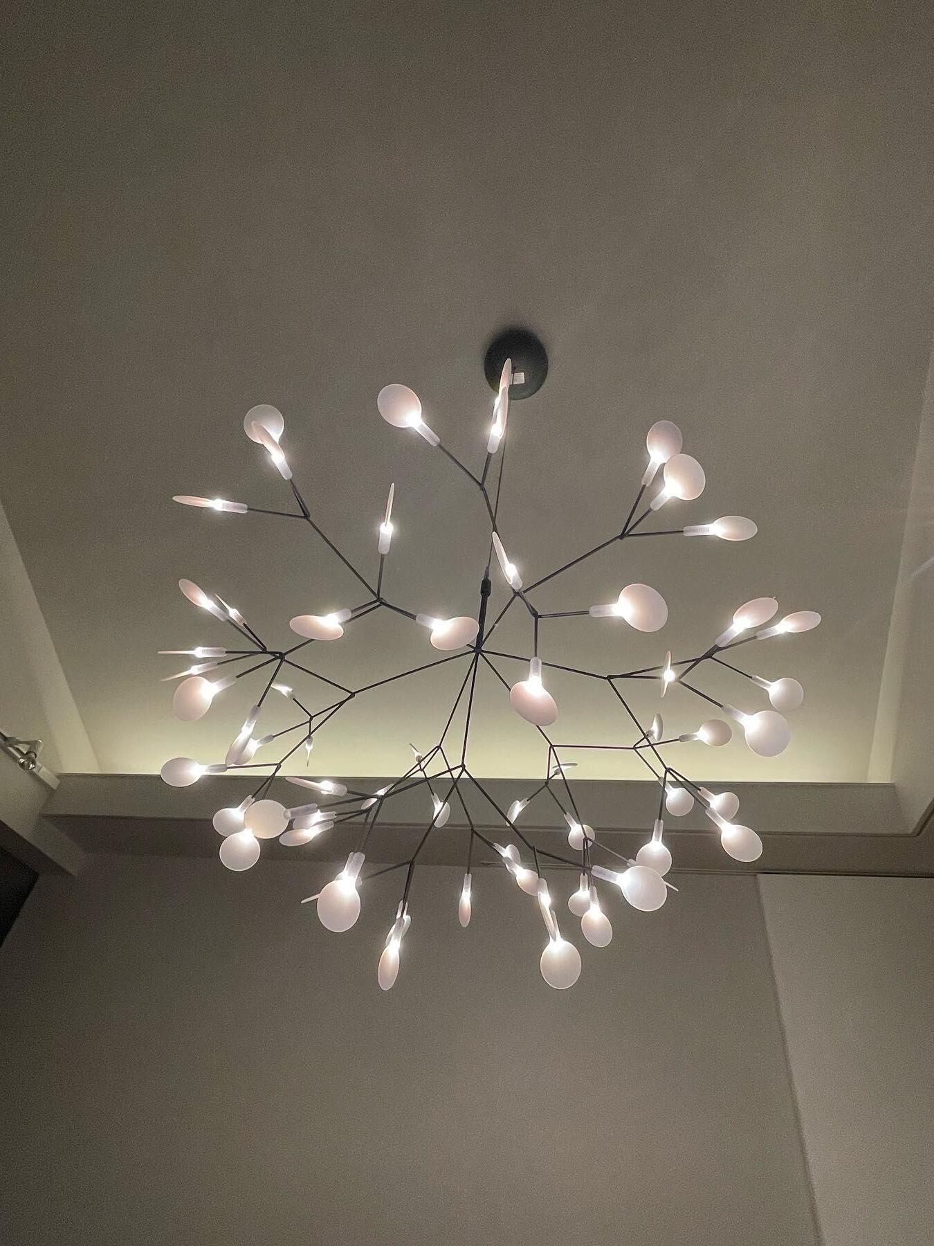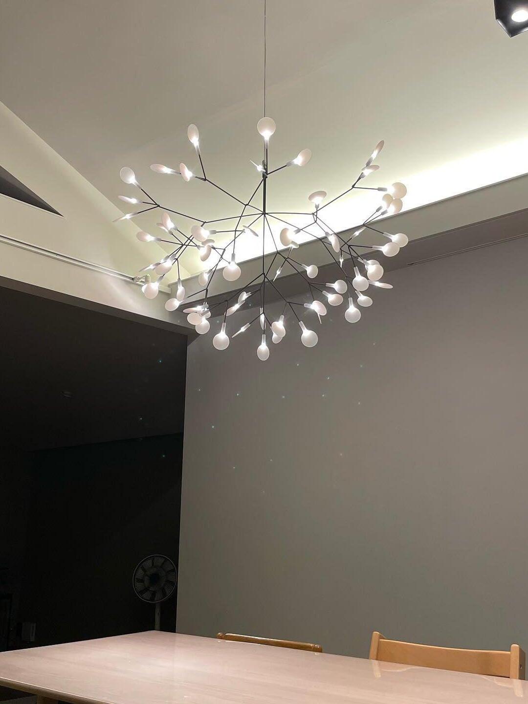 Caracterizada por pequeñas obleas, la lámpara de araña LED Heracleum tiene una forma de flor floreciente. Cuando se ilumina, parece que hay muchas luciérnagas bailando, lo que debe ser el diseño más brillante de todo el espacio.