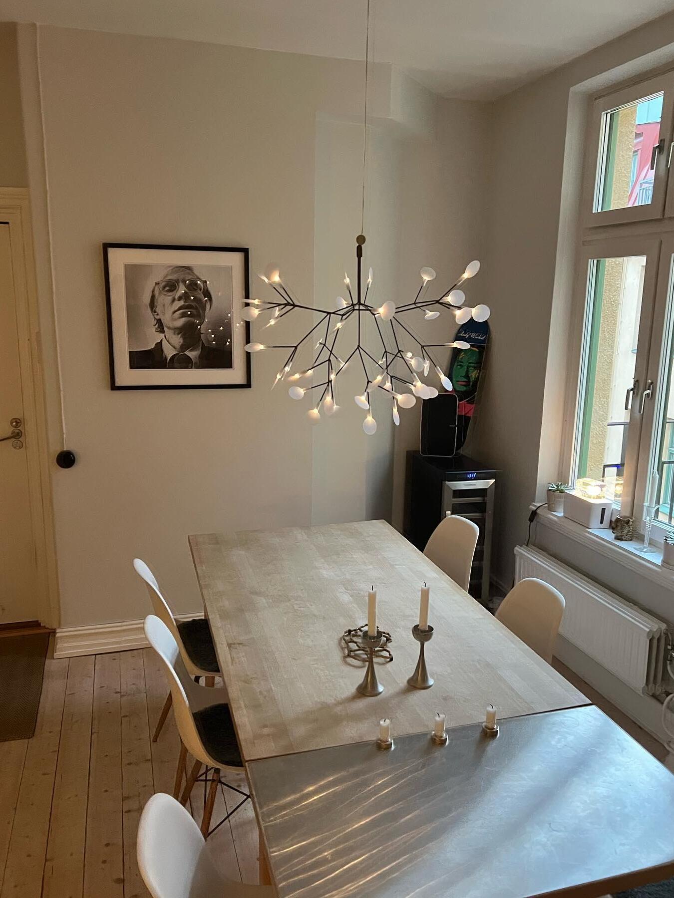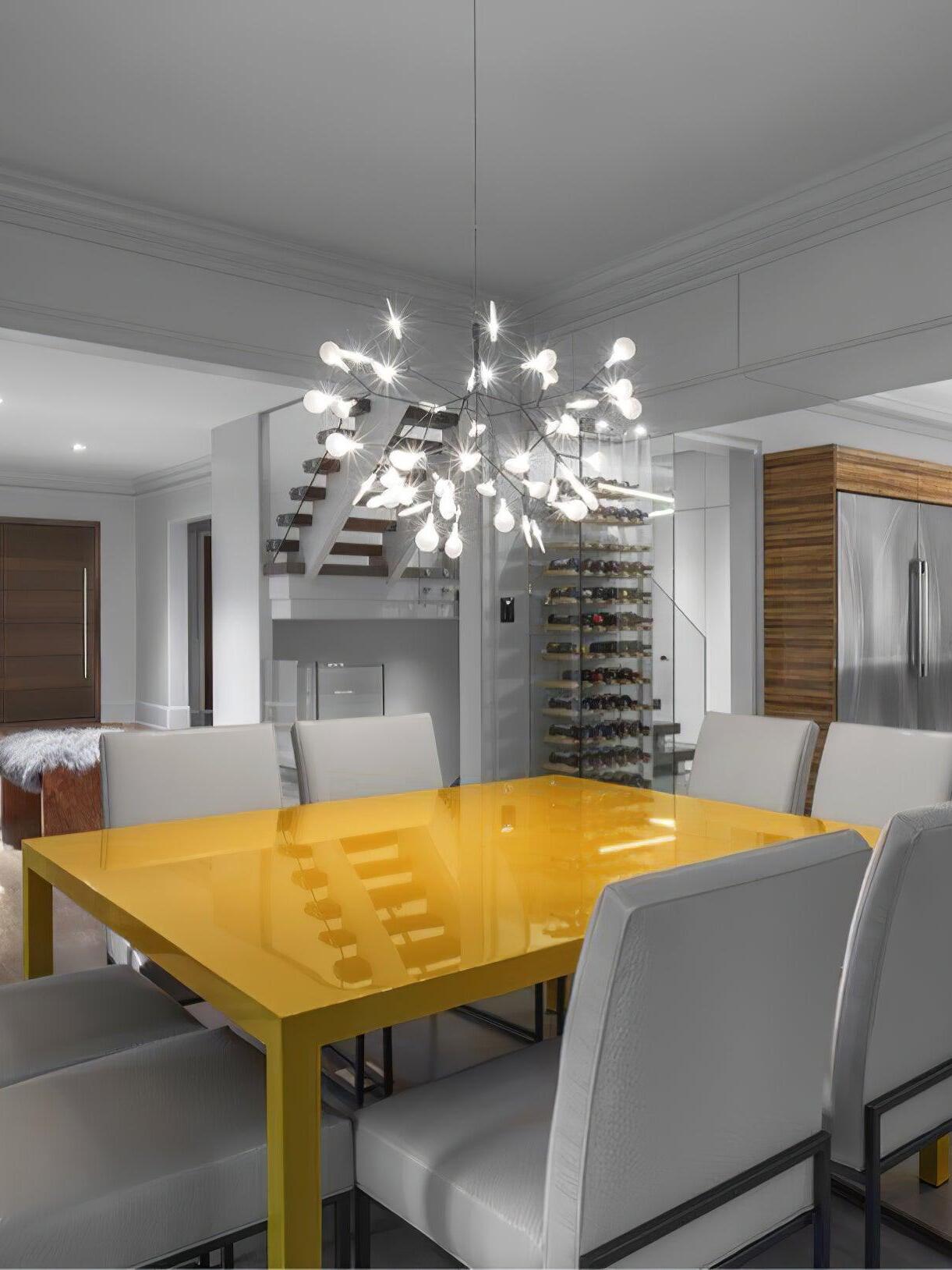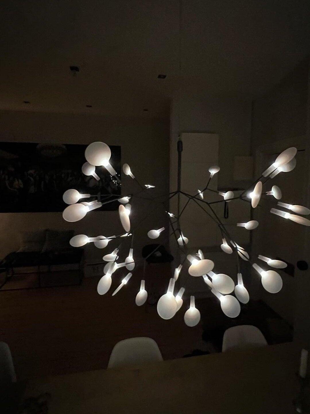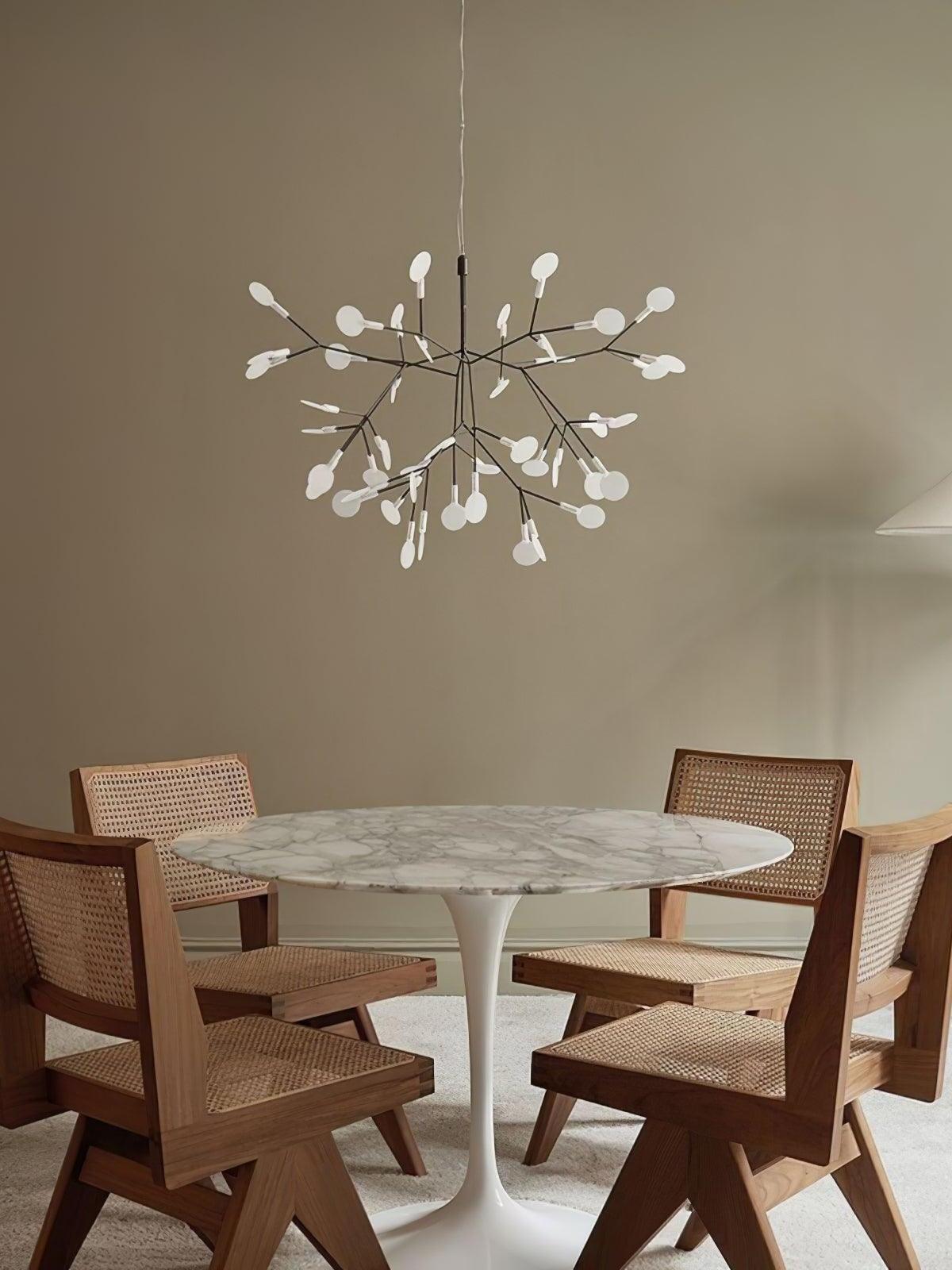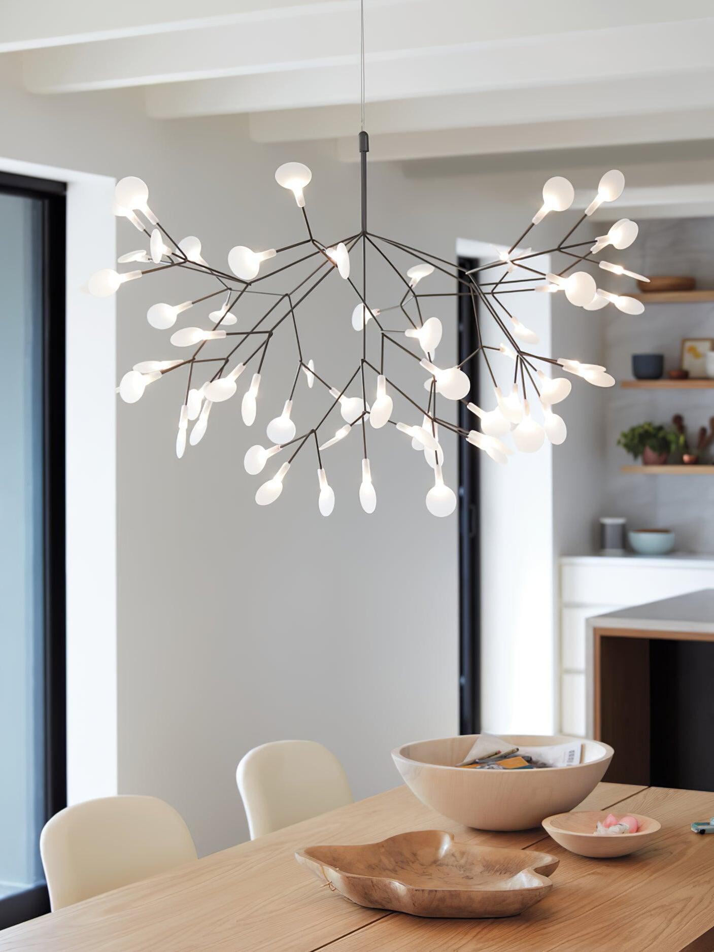 Caracterizada por pequeñas obleas, la lámpara de araña LED Heracleum tiene una forma de flor floreciente. Cuando se ilumina, parece que hay muchas luciérnagas bailando, lo que debe ser el diseño más brillante de todo el espacio.