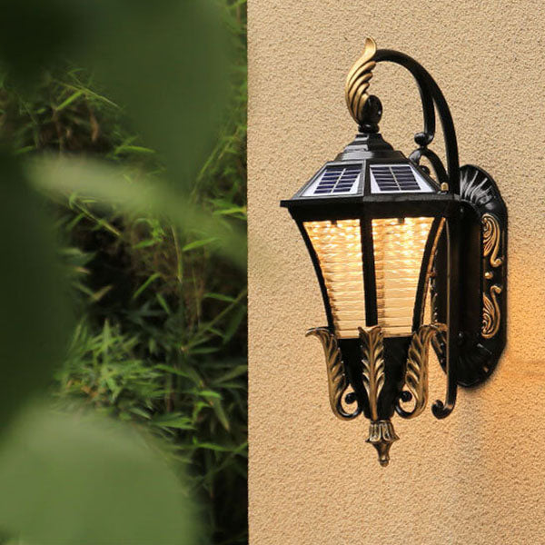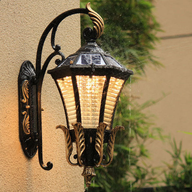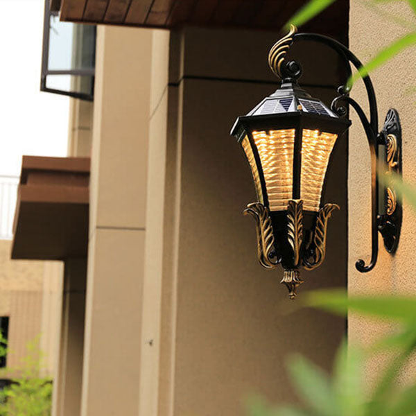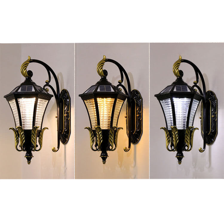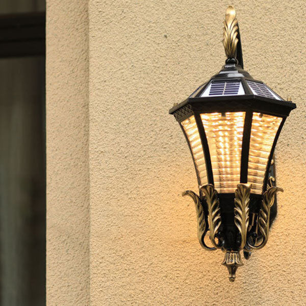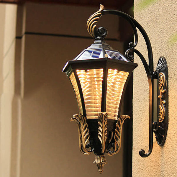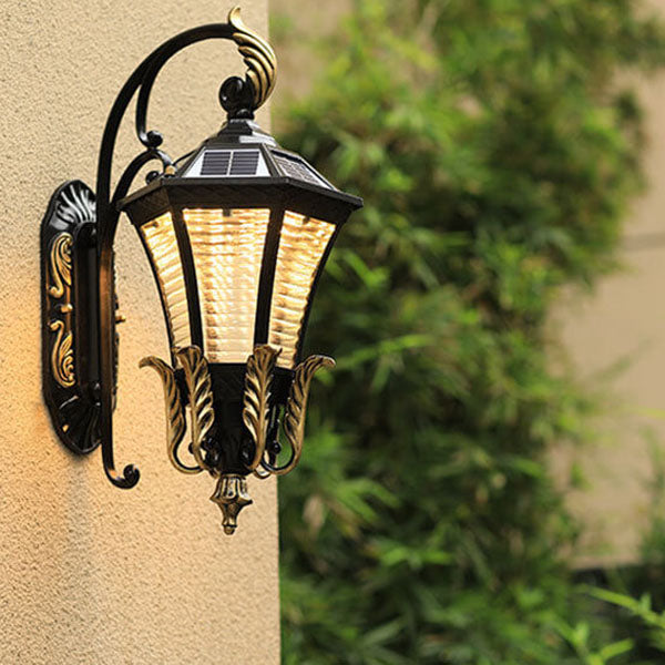 Lámpara de aplique de pared LED para Patio impermeable al aire libre con linterna Hexagonal Solar europea