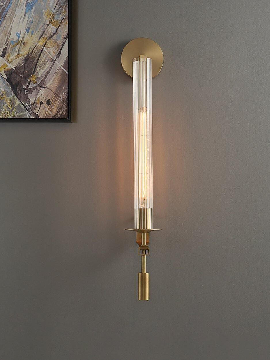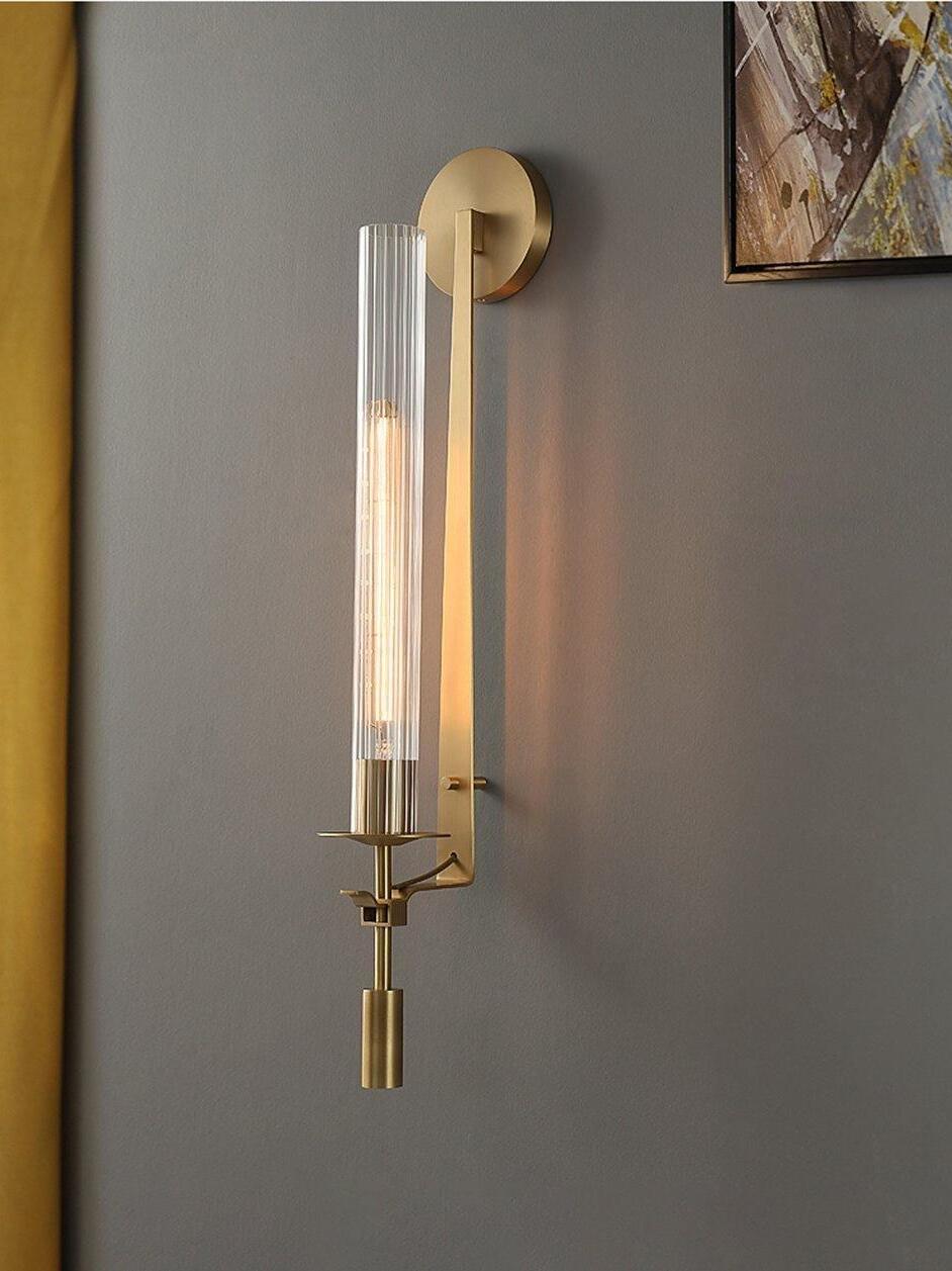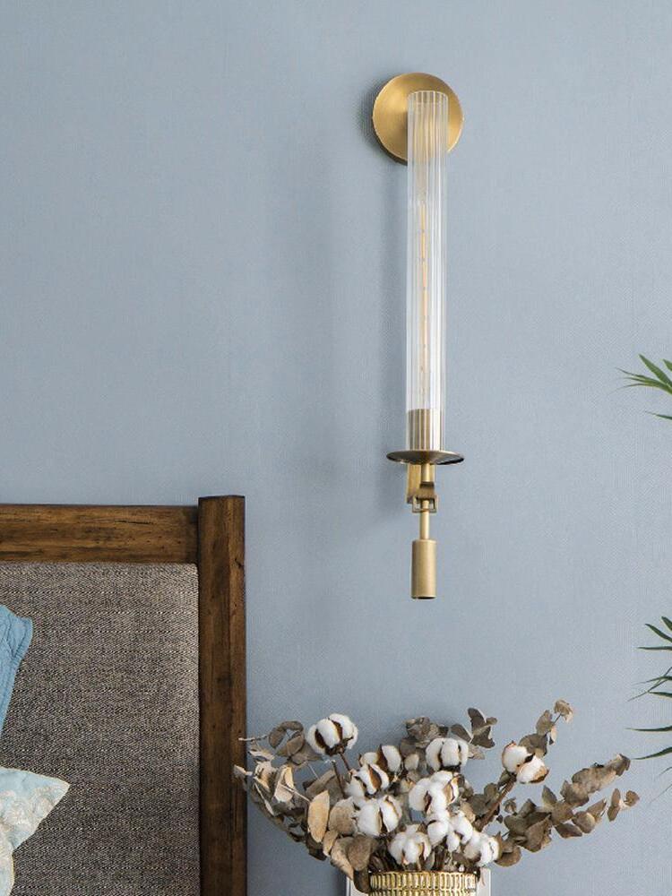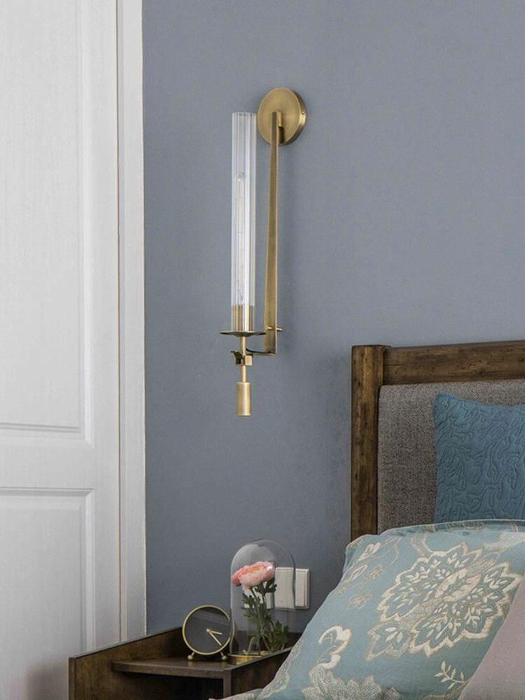 Lámpara de pared de vidrio Fontanelle de latón retro para dormitorio