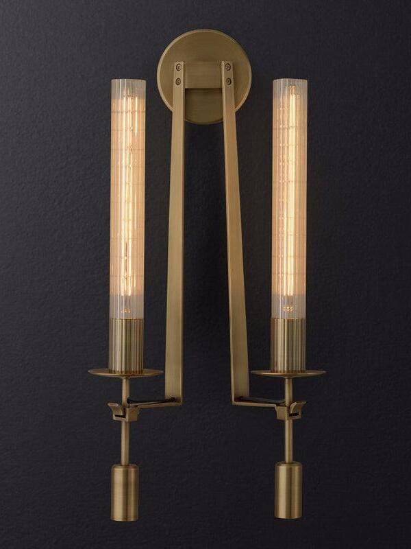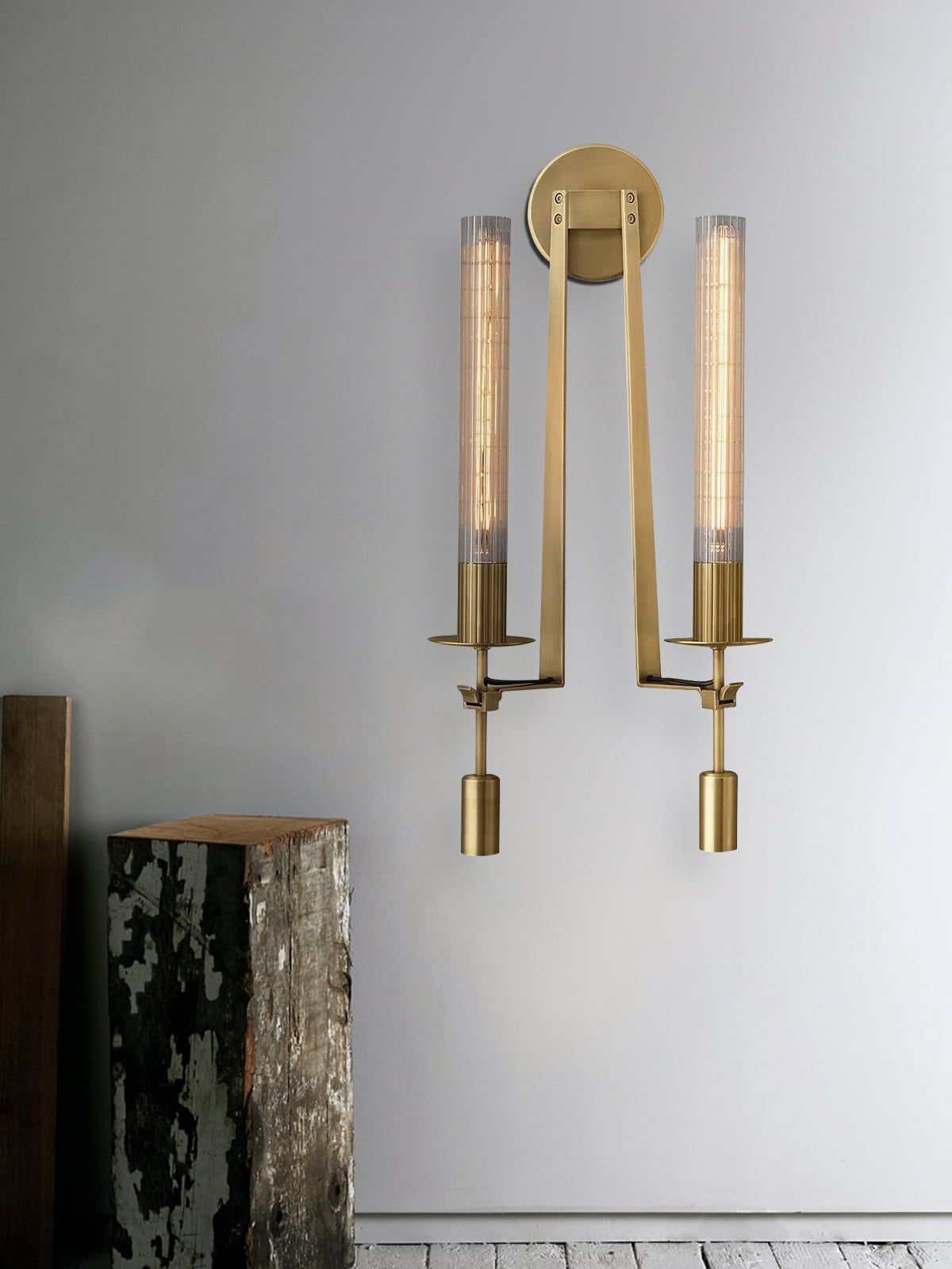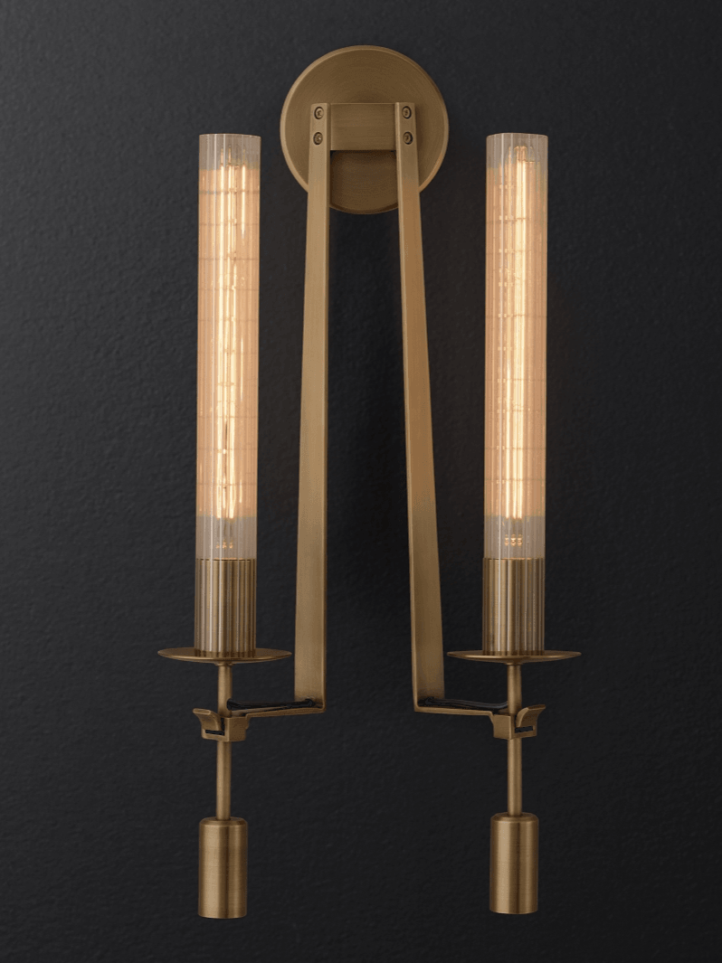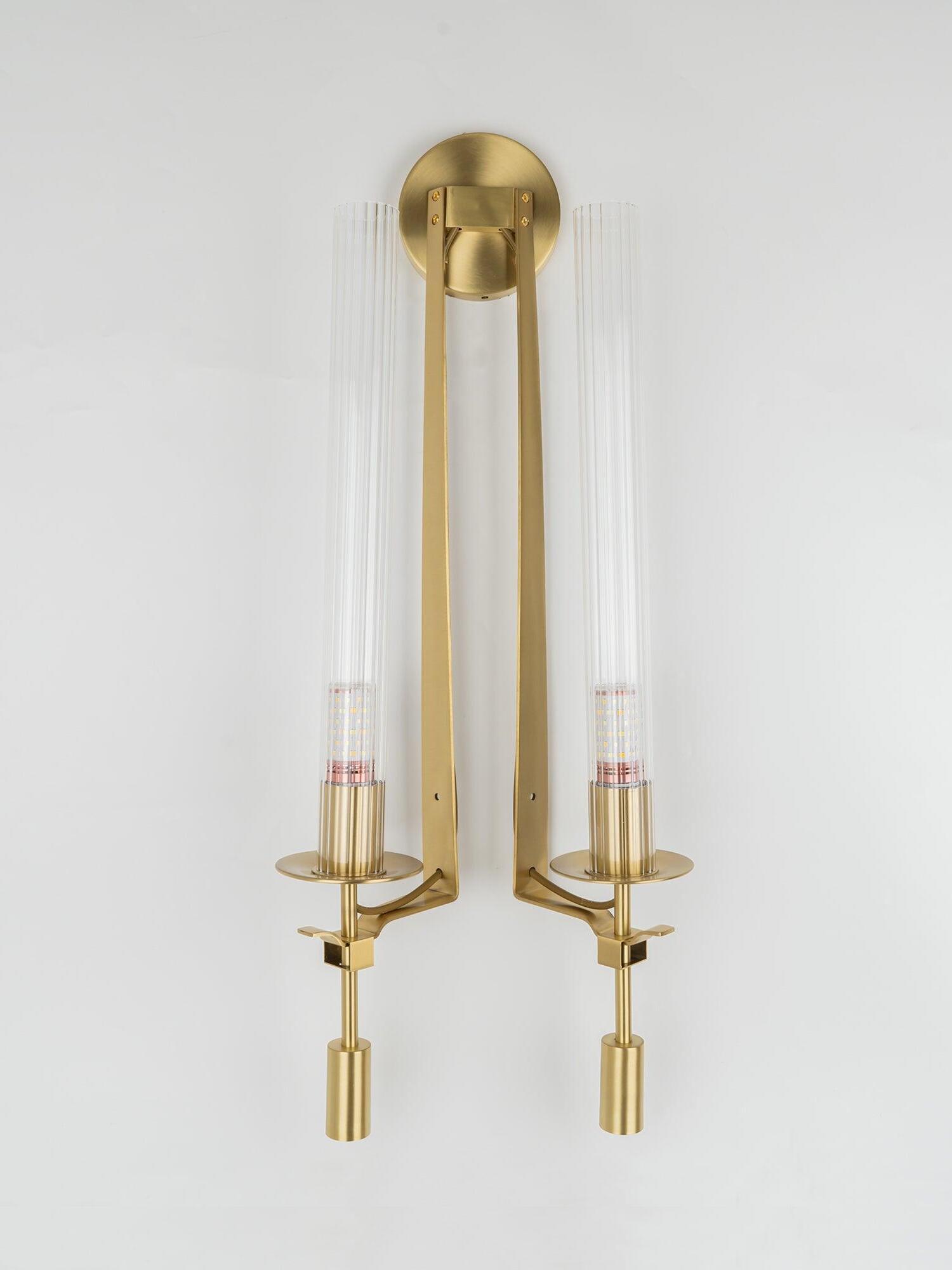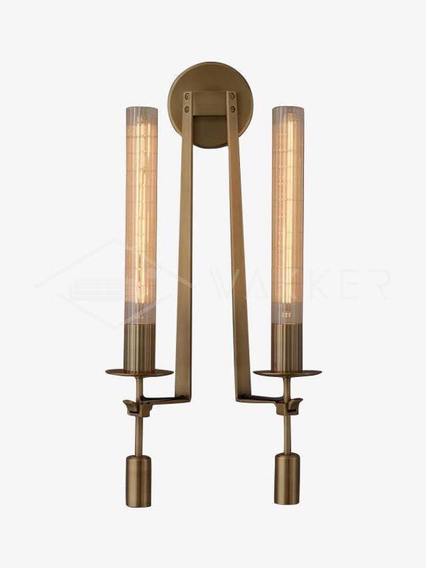 Lámpara de pared de vidrio Fontanelle de latón retro para dormitorio