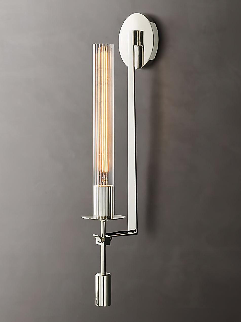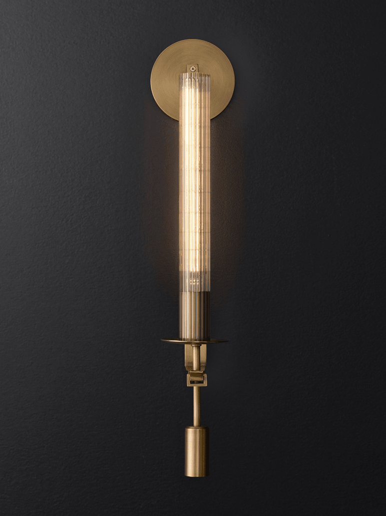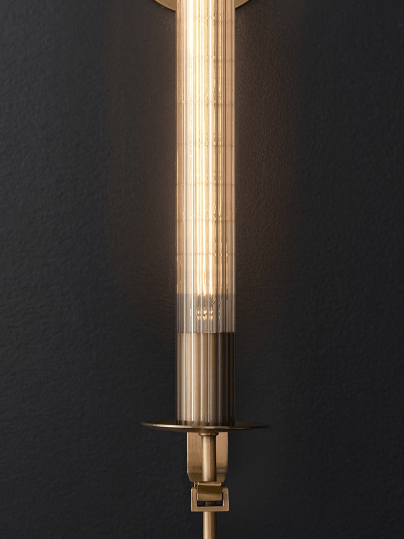 Ideal para acentuar la belleza de su dormitorio, este aplique retro agrega un toque de sofisticación y crea un ambiente acogedor para relajarse y descansar. Elaborado con exquisita atención al detalle, este exclusivo accesorio de iluminación presenta un resistente marco de latón que sostiene delicadamente una fascinante pantalla de vidrio. El cálido resplandor emitido a través del vidrio texturizado crea un ambiente nostálgico, proyectando patrones encantadores en las paredes.