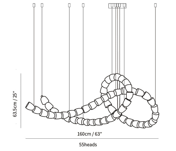 43+53+65=161 cabezales: diámetro 120 cm x alto 300 cm / ∅ 47,2 ″ x alto 118 ″