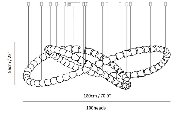 10+10+21+26=67 cabezales: diámetro 150 cm x alto 180 cm / ∅ 59 ″ x alto 70,9 ″