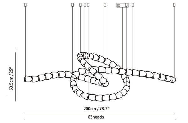 42+22=64 cabezas: Largo 200 cm x Alto 63,5 cm / Largo 78,7 ″ x Alto 25 ″