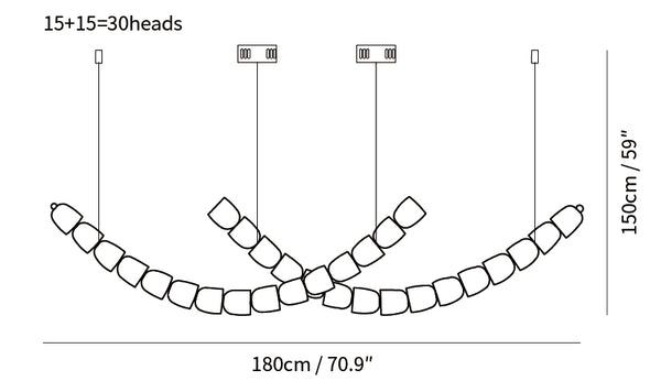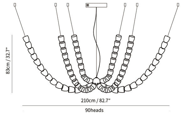 15+15+15+15+15+15=90 cabezales: diámetro 210 cm x alto 83 cm / ∅ 82,7 ″ x alto 32,7 ″