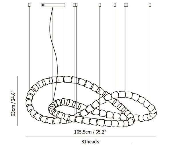 81 cabezales: diámetro 165,5 cm x alto 63 cm / ∅ 65,2 ″ x alto 24,8 ″