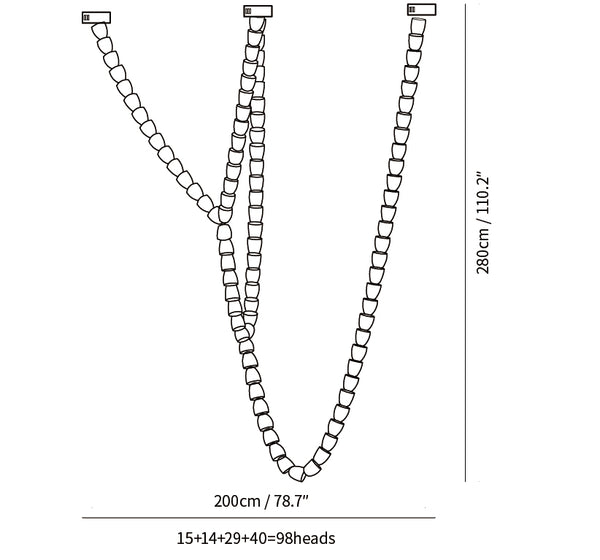 15+14+29+40=98 cabezales: diámetro 200 cm x alto 280 cm / ∅ 78,7 ″ x alto 110,2 ″
