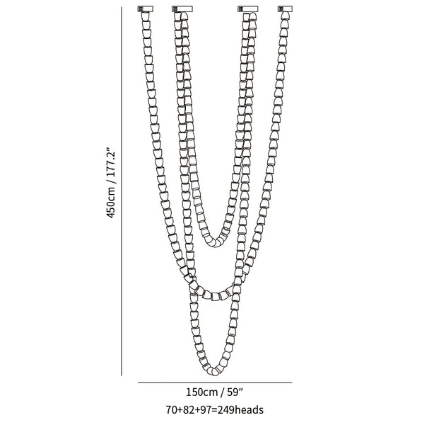 70+82+97=249 cabezales: diámetro 150 cm x alto 450 cm / ∅ 59 ″ x alto 177,2 ″