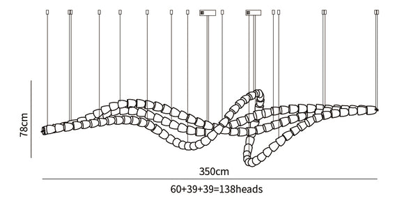 60+39+39=138 cabezas: L 350 cm x H 78 cm / L 137,8 ″ x H 30,7 ″