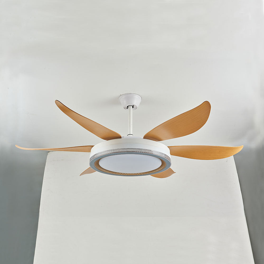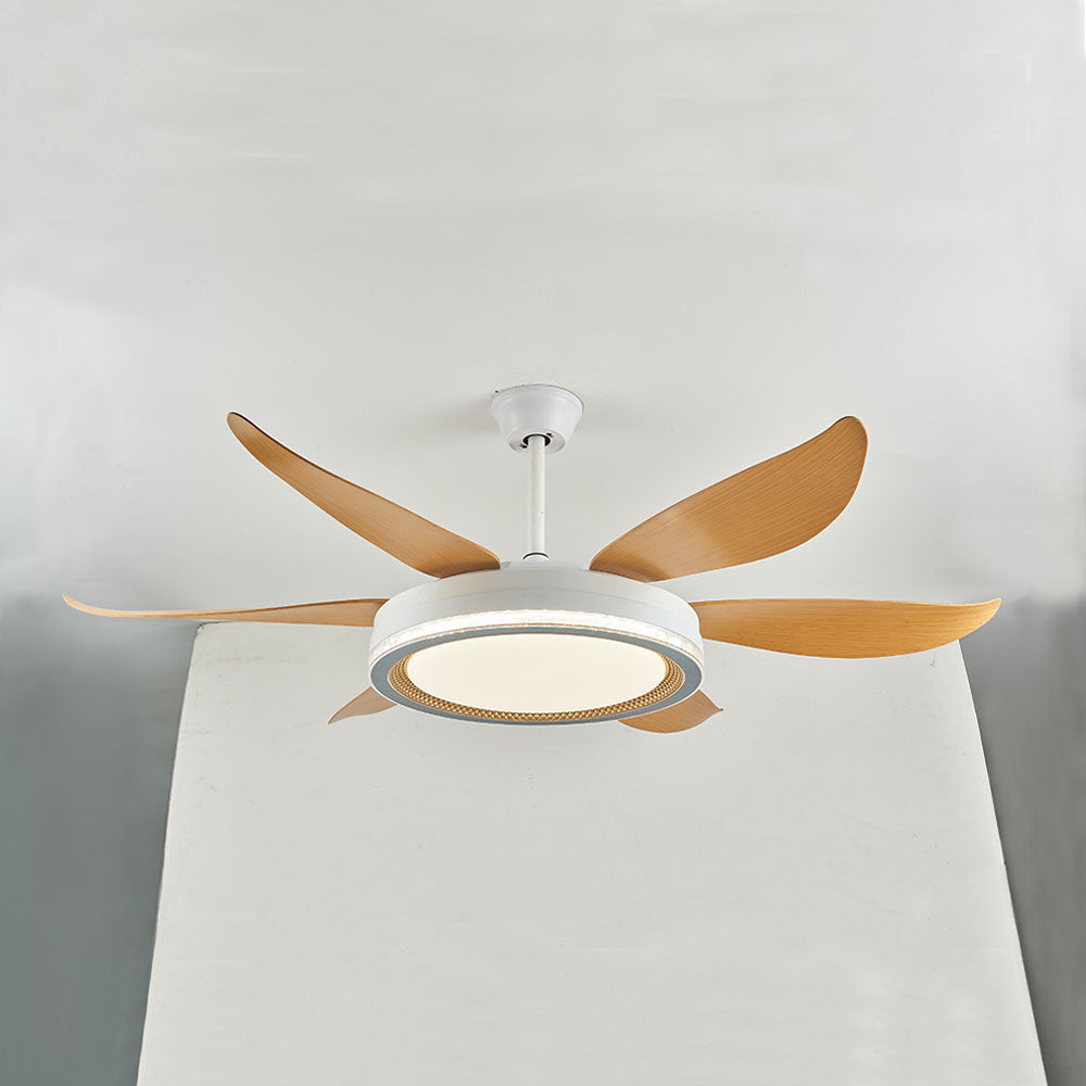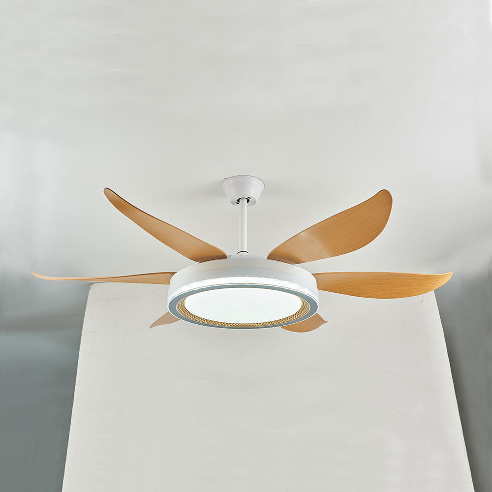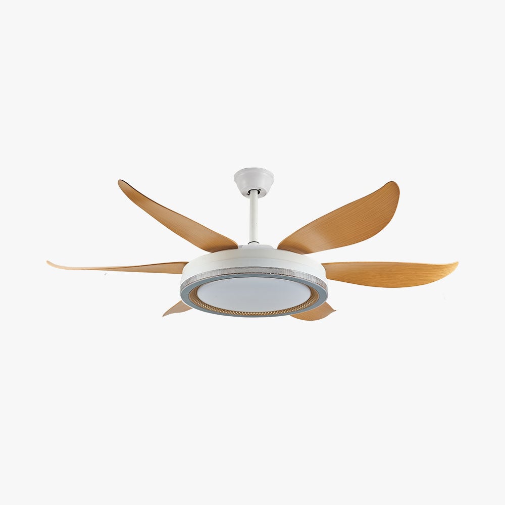 Ventilador de techo CC de 6 aspas con luz Haydn, blanco y madera
