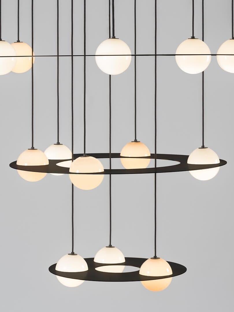 La Colección Laurent destila el globo de leche en su relación esencial entre círculo y esfera. Una serie de formas delgadas complementan los globos de Laurent: formas que tallan el espacio, moviéndose entre línea, superficie y volumen. Estas formas se combinan en patrones infinitos, lo que hace posible que una instalación de lámparas Laurent habite cualquier espacio con sutileza y fuerza silenciosa.