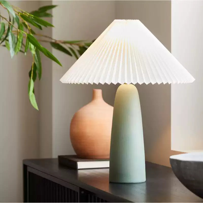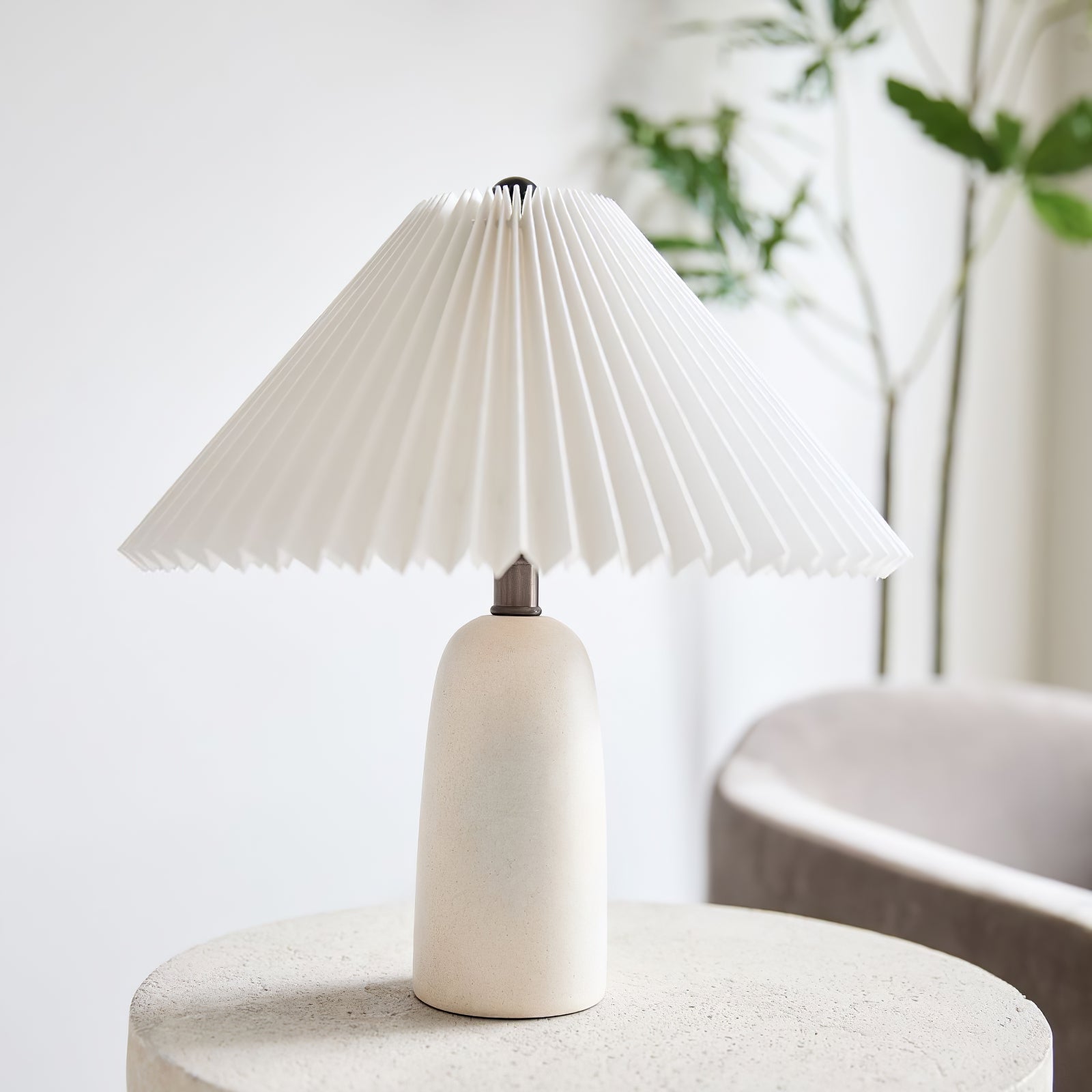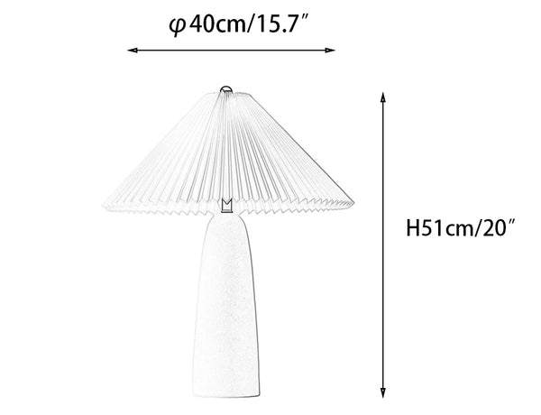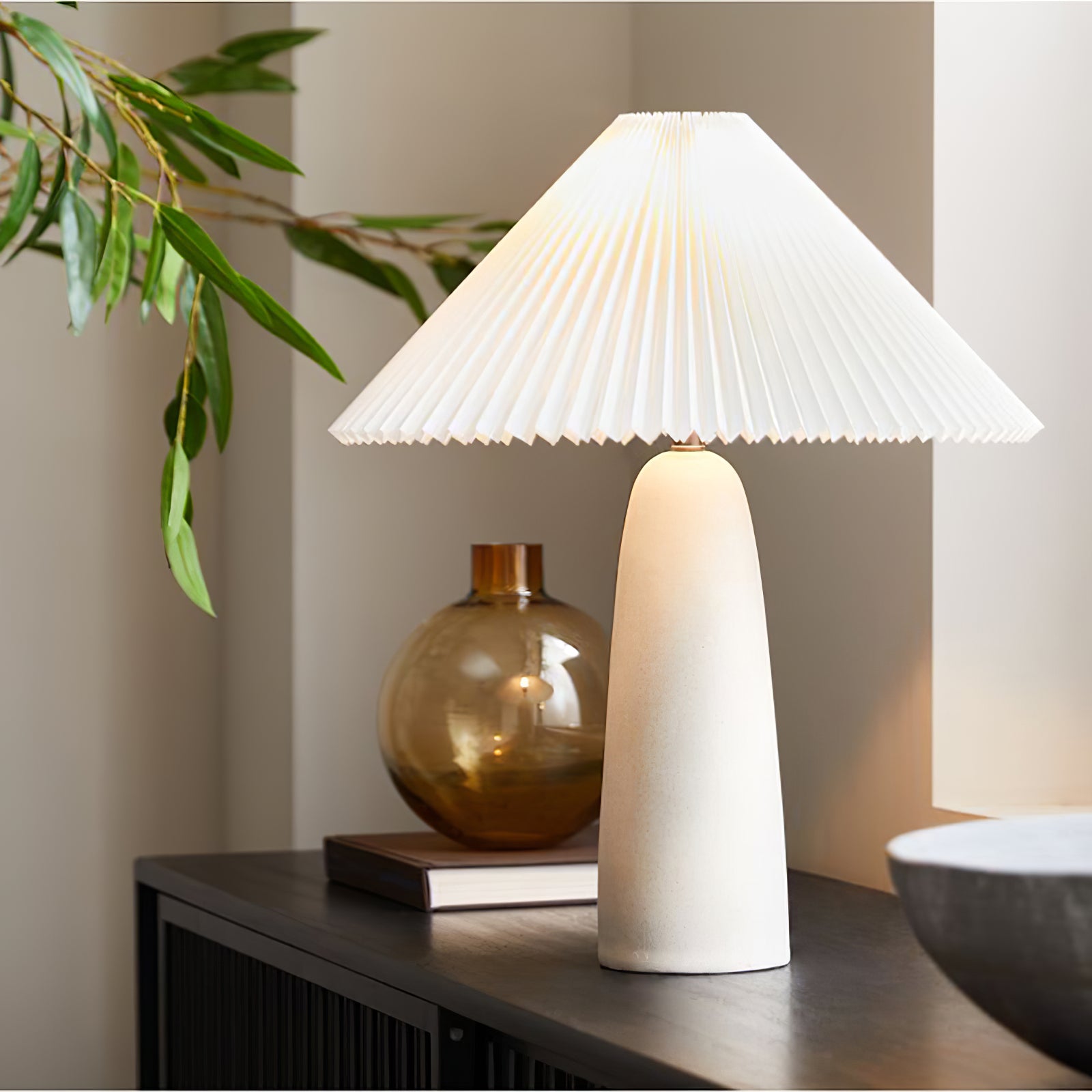 La lámpara de mesa con base cónica minimalista Louis irradia una elegancia atemporal a través de su diseño minimalista y detalles refinados. Esta lámpara presenta una base cónica elegantemente afinada con un acabado mate suave que le confiere una presencia robusta pero estilizada. El tono suave y neutro de la base complementa una variedad de estilos decorativos, lo que la convierte en una opción versátil para interiores modernos, escandinavos y minimalistas. En la parte superior de la base se encuentra una hermosa pantalla de papel plisado, moldeada en una forma cónica amplia que difunde la luz de manera uniforme, proyectando un resplandor cálido y acogedor. Los pliegues añaden un toque de textura y sofisticación, realzando la estética de la lámpara mientras mantiene su encanto discreto.