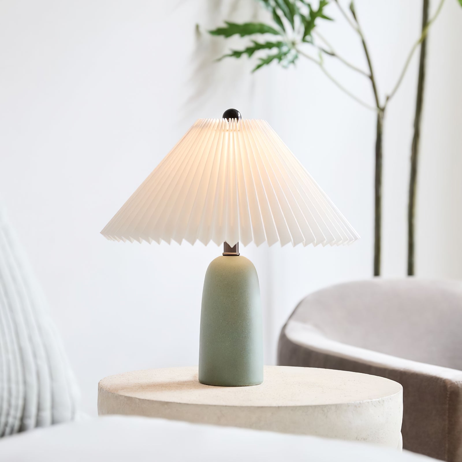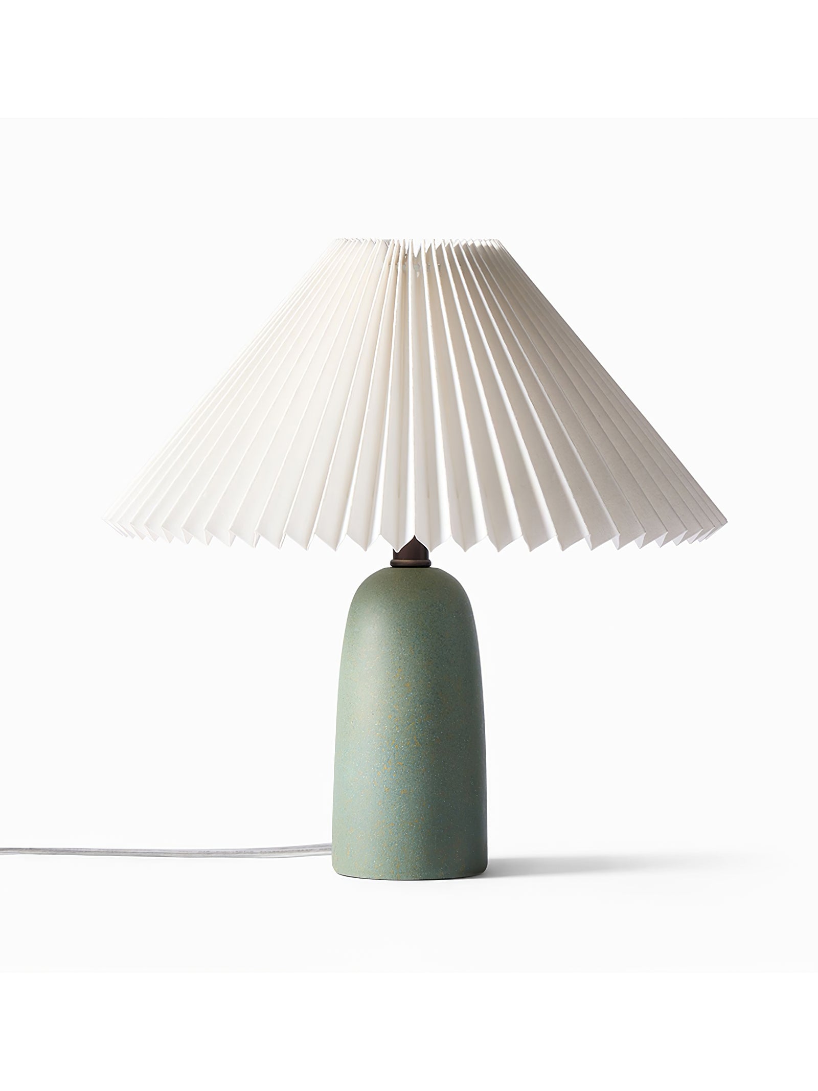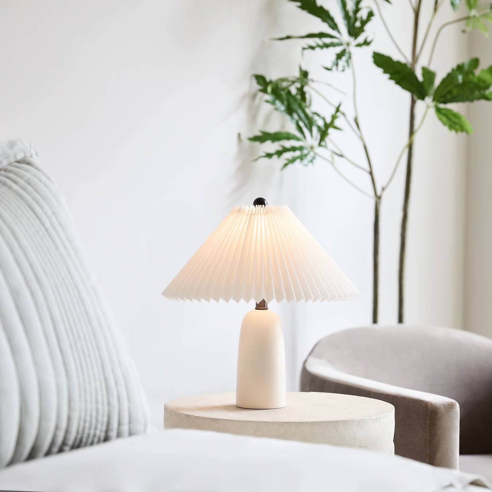 La lámpara de mesa con base cónica minimalista Louis irradia una elegancia atemporal a través de su diseño minimalista y detalles refinados. Esta lámpara presenta una base cónica elegantemente afinada con un acabado mate suave que le confiere una presencia robusta pero estilizada. El tono suave y neutro de la base complementa una variedad de estilos decorativos, lo que la convierte en una opción versátil para interiores modernos, escandinavos y minimalistas. En la parte superior de la base se encuentra una hermosa pantalla de papel plisado, moldeada en una forma cónica amplia que difunde la luz de manera uniforme, proyectando un resplandor cálido y acogedor. Los pliegues añaden un toque de textura y sofisticación, realzando la estética de la lámpara mientras mantiene su encanto discreto.