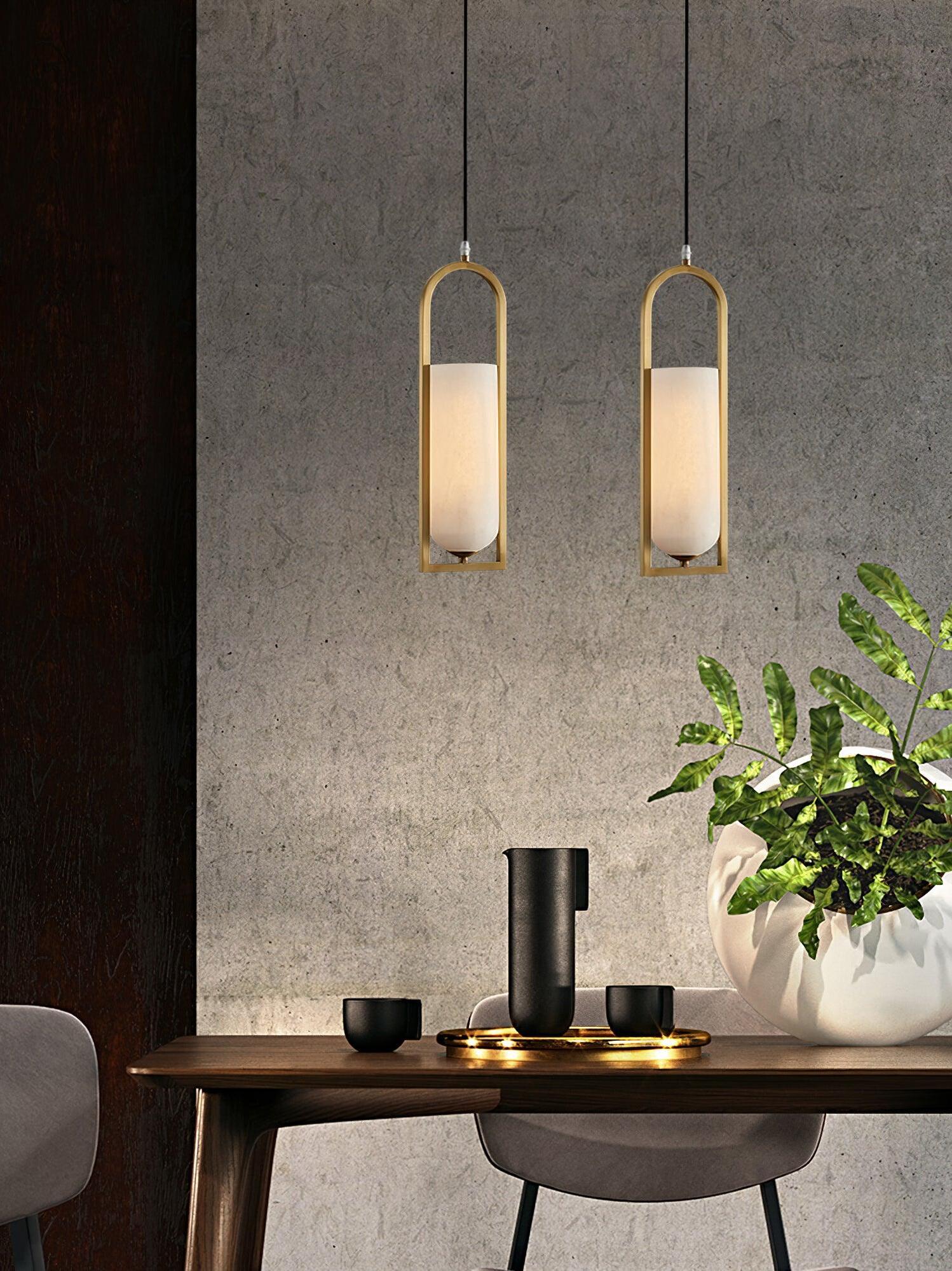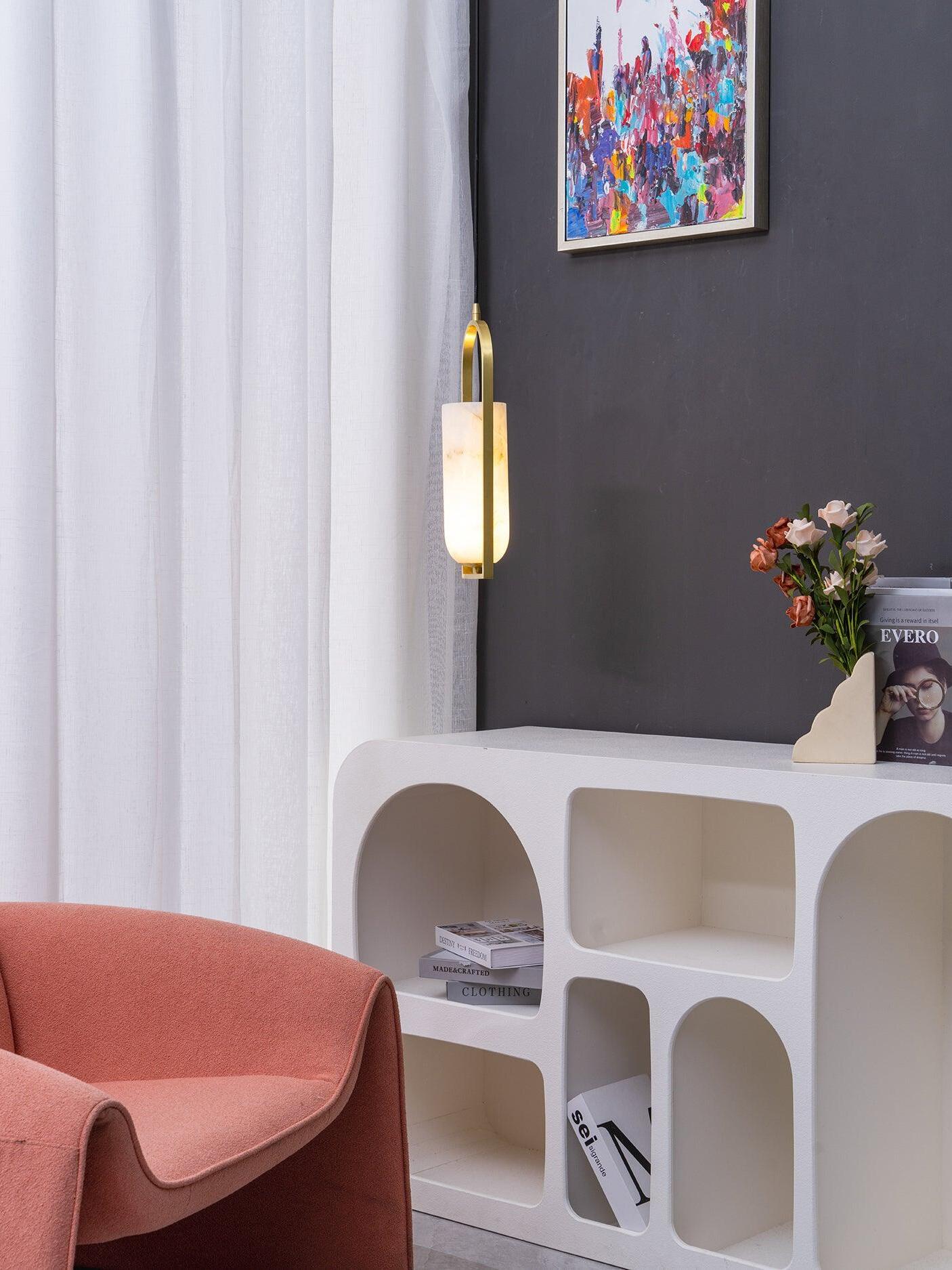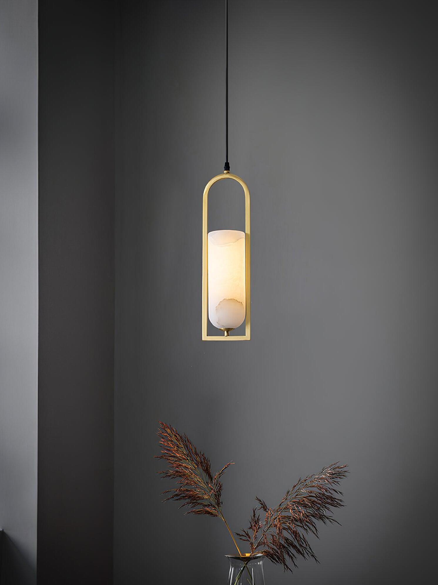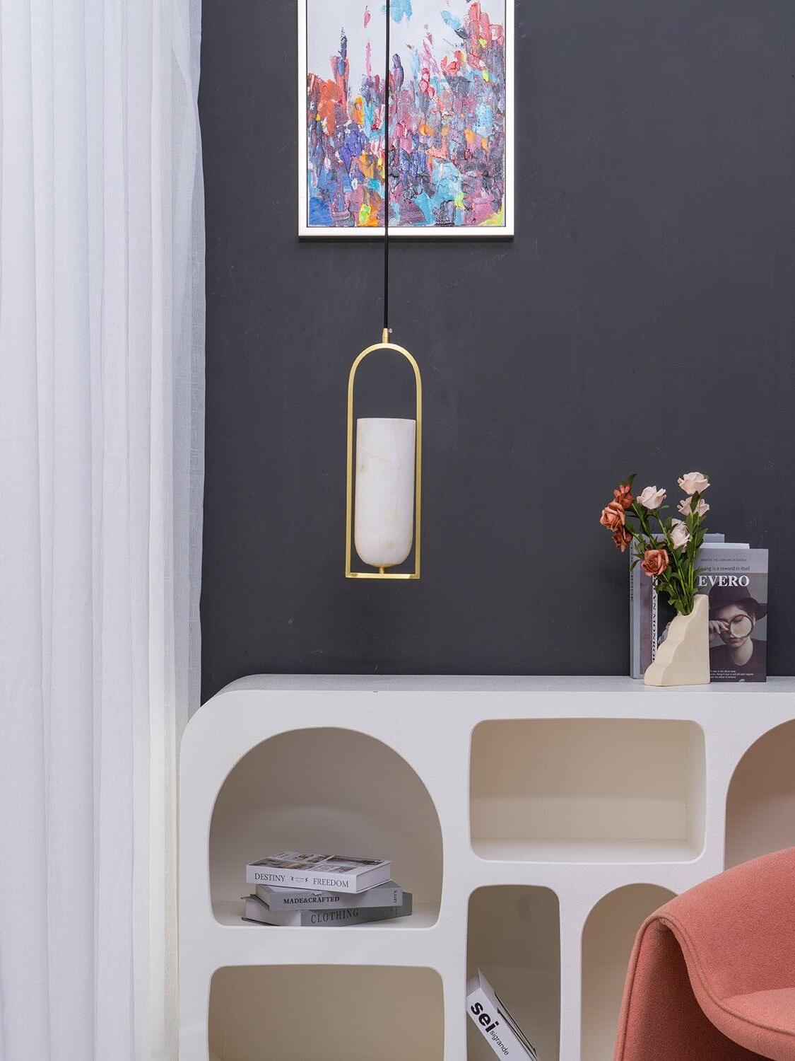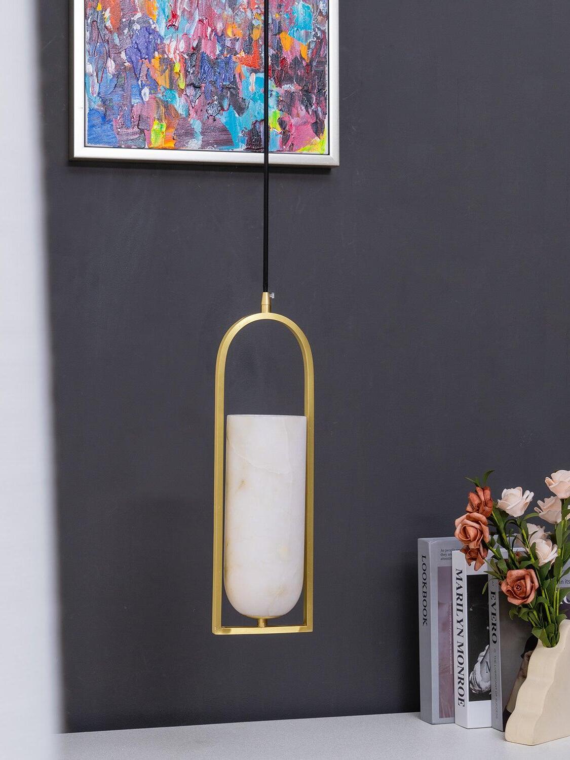 Combinando sin esfuerzo alabastro natural y elegantes detalles metálicos en una forma geométrica estilizada, el colgante pequeño Melange irradia un refinamiento moderno al tiempo que enfatiza la belleza de la piedra natural.