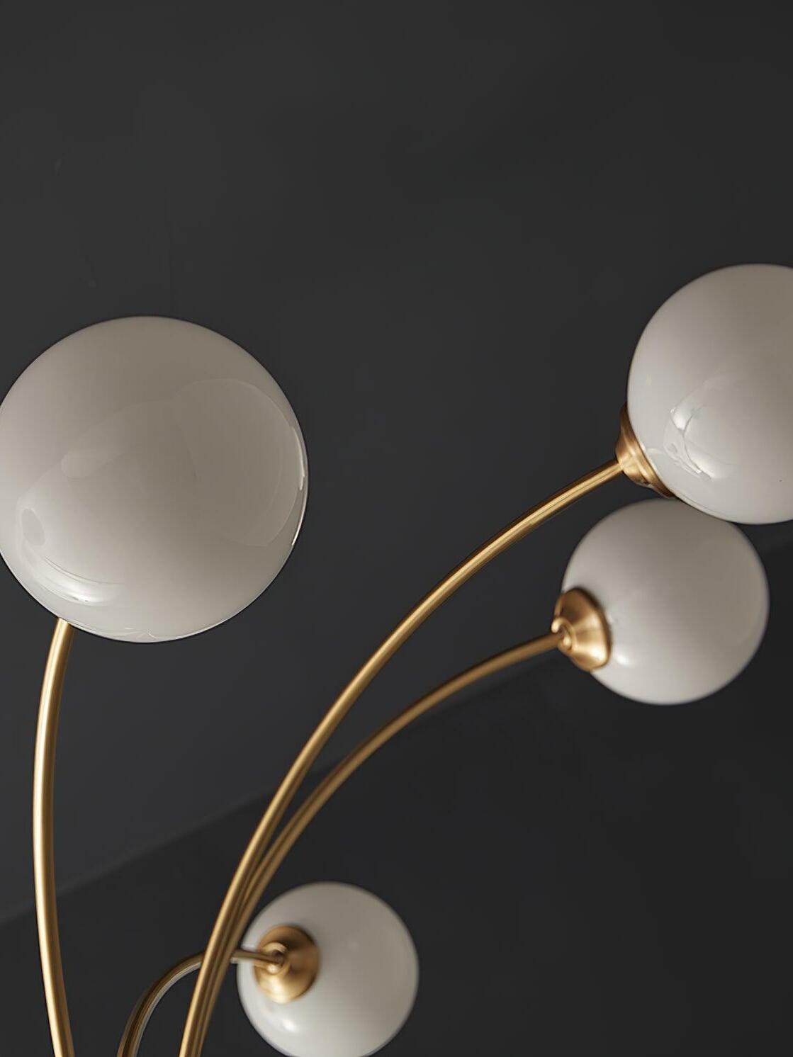 Esta lámpara Millder seguramente llamará la atención sobre tu sala de estar. Muestra ocho brazos en diferentes direcciones. Cada brazo tiene una pantalla de cristal en forma de globo en el extremo que dispersa una luz suave y cálida. Las pantallas de vidrio opaco/blanco combinadas con la construcción de metal con acabado dorado crean una atmósfera moderna y atemporal en su hogar.