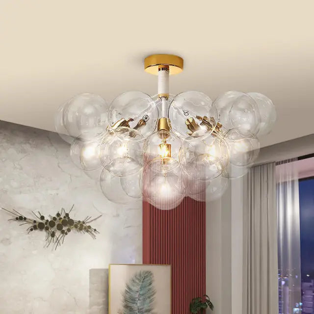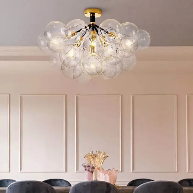 Transforme su espacio con el encanto moderno de nuestra lámpara de techo de burbujas de vidrio con montaje semi empotrado. Meticulosamente diseñado, este accesorio combina a la perfección el diseño contemporáneo con el encanto artístico. Las burbujas de vidrio crean una exhibición visual cautivadora, proyectando un brillo cálido y encantador. Ilumina tu habitación con la fusión perfecta de elegancia moderna y expresión artística.