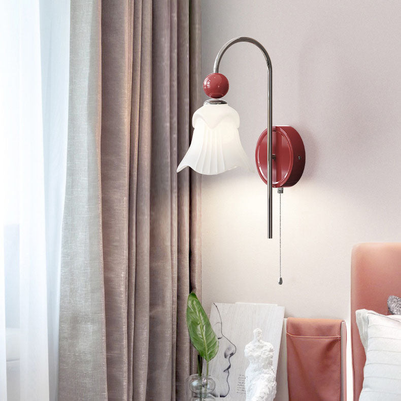 Lámpara de pared de 1 luz con forma de flor de vidrio de hierro simple nórdica moderna