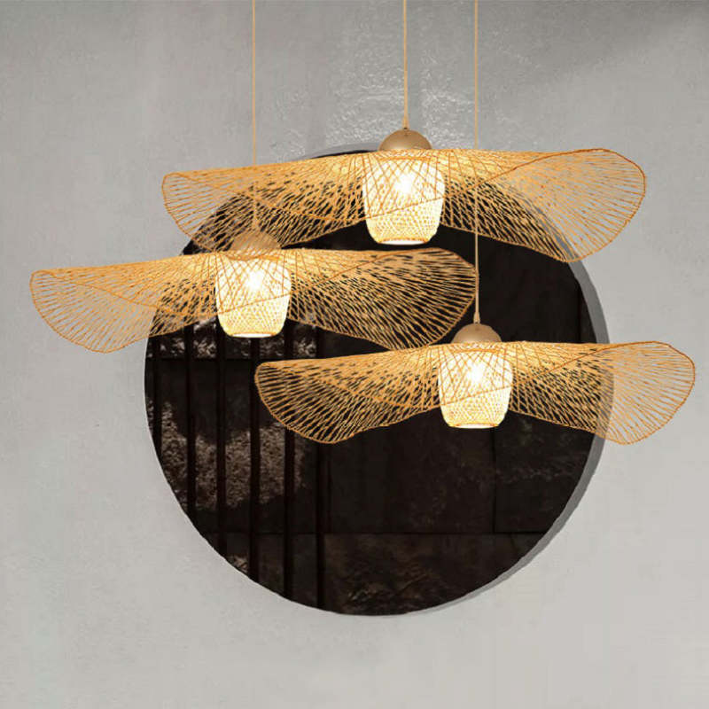 - La lámpara colgante presenta un diseño de tejido de cúpula verdaderamente distintivo, lo que la convierte en un punto focal llamativo en cualquier habitación. Lo que lo distingue es la intrincada parte superior, adornada con un cautivador diseño de tejido de placas que agrega un toque artístico al accesorio. La forma de cúpula crea un equilibrio armonioso entre la sensación orgánica del ratán y la elegancia del metal, lo que da como resultado una lámpara colgante atractiva y moderna. Su diseño garantiza que no sólo ilumine su espacio sino que también sirva como una pieza de decoración digna de conversación.