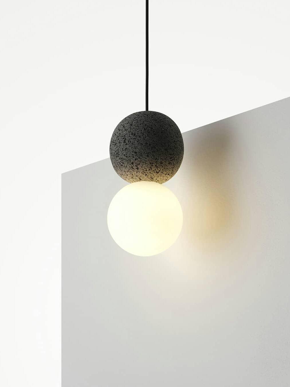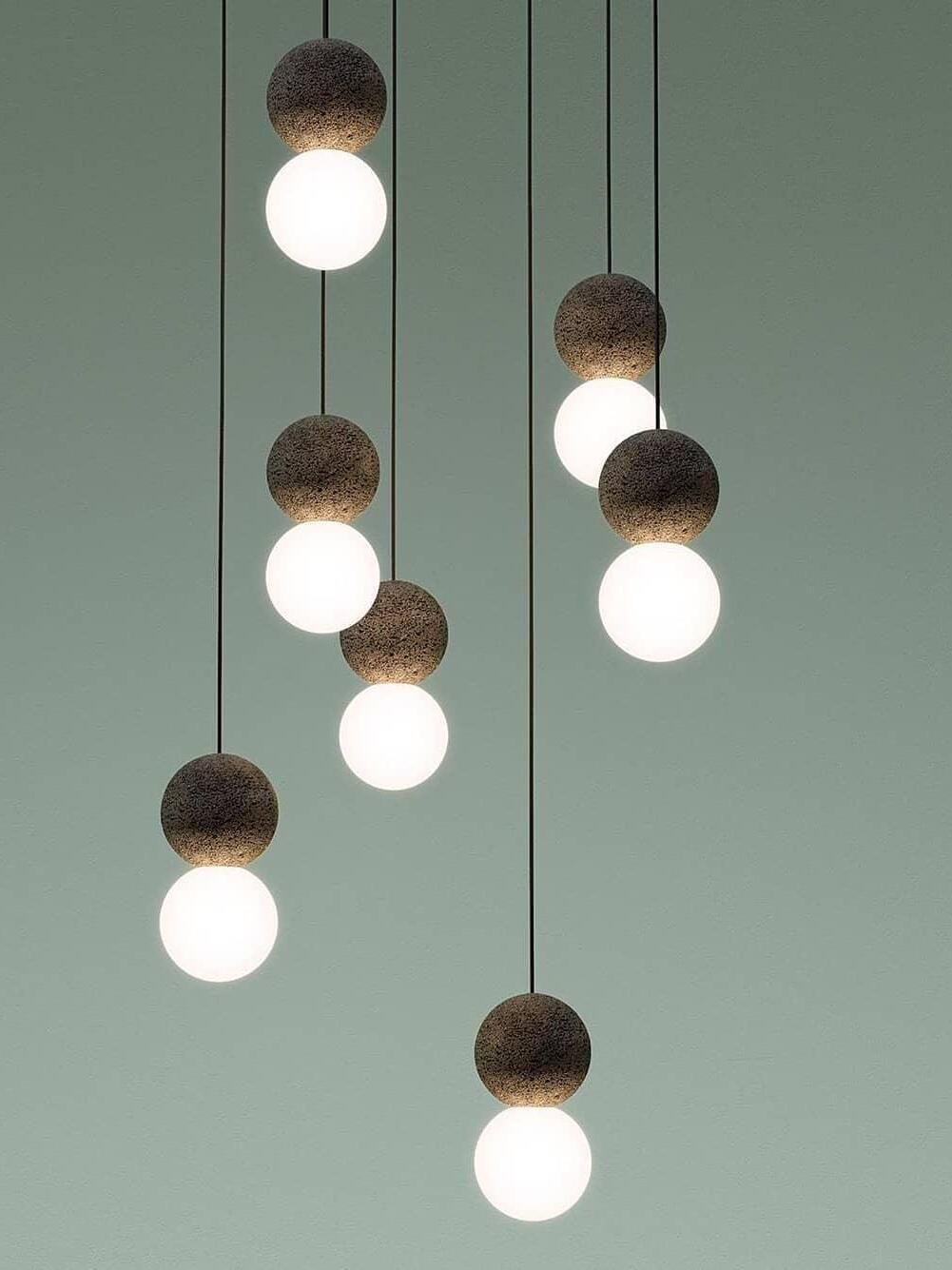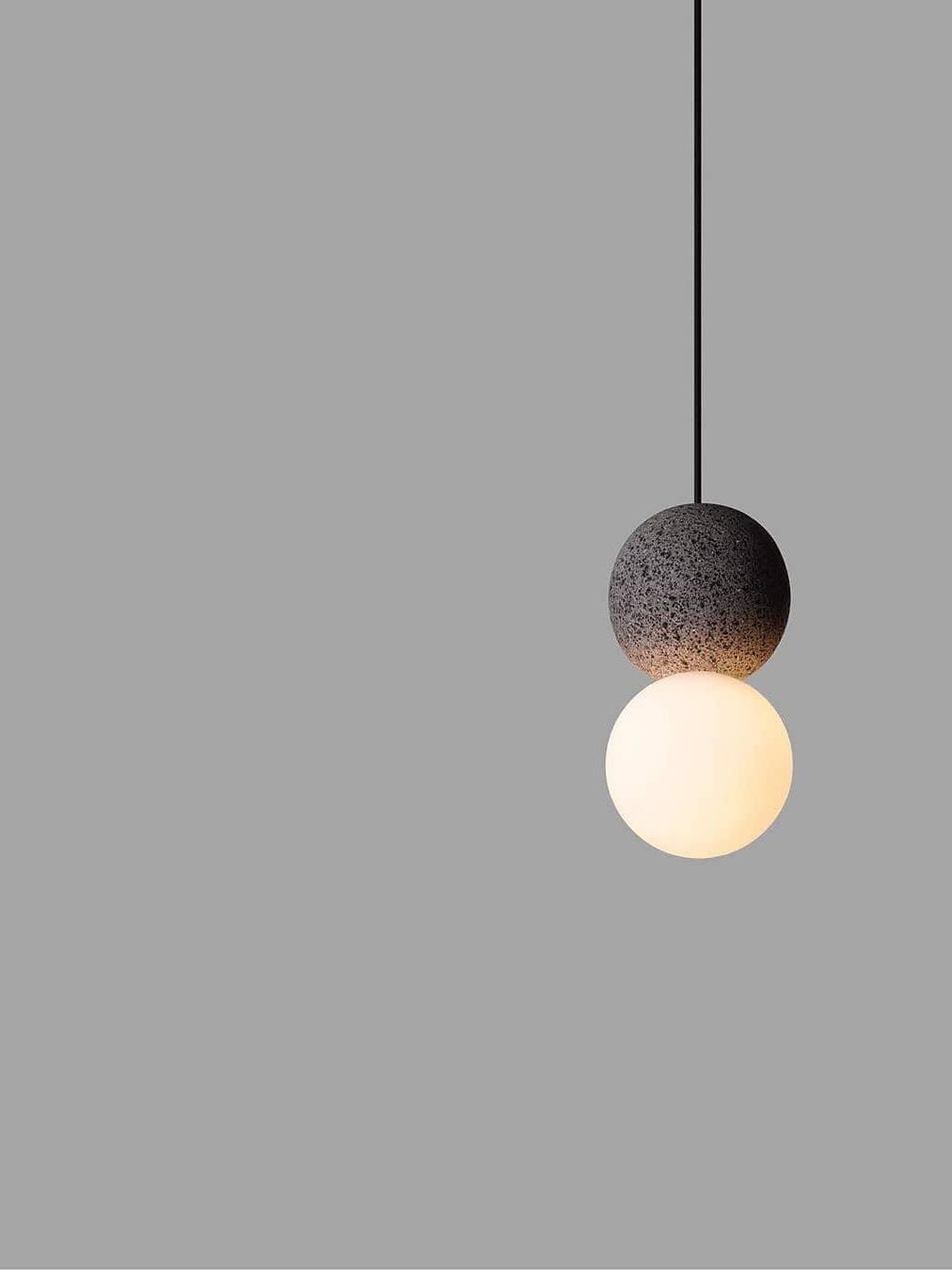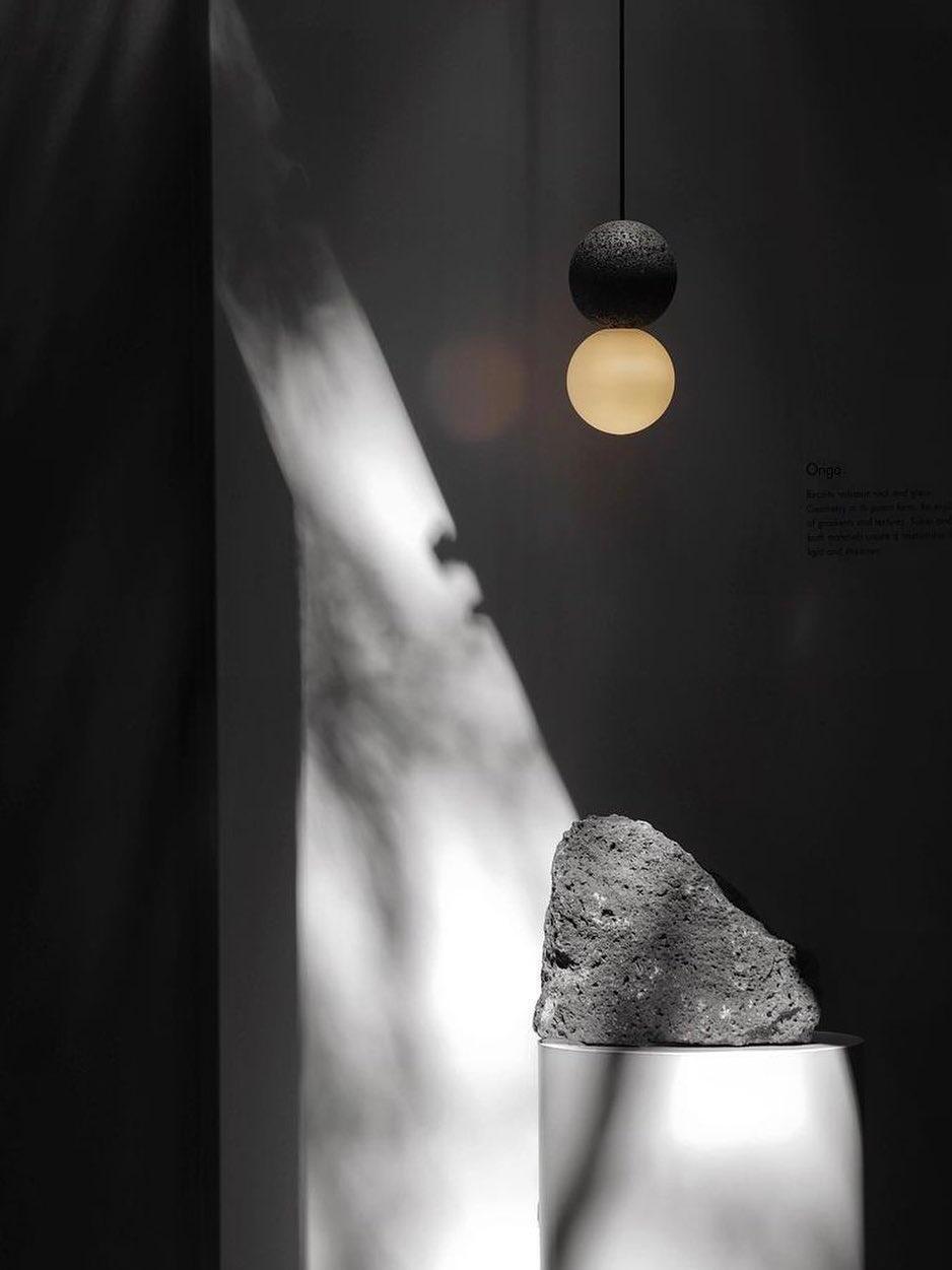 Geometría en estado puro. Origo encarna esencias opuestas que reflejan la roca volcánica y un difusor de vidrio opalino. Una exploración de la interacción, la luz brilla sobre la textura de la roca volcánica, revelando su relieve y contorno. Sobrios y lógicos, ambos materiales crean una relación entre luz y composición. El equilibrio en su esencia, ligereza y pesadez se expresa a través de una pieza atemporal. Las esferas funcionan como una geometría doble, reflejando lo positivo y lo negativo. Reforzar la relación fundamental entre luces y sombras.