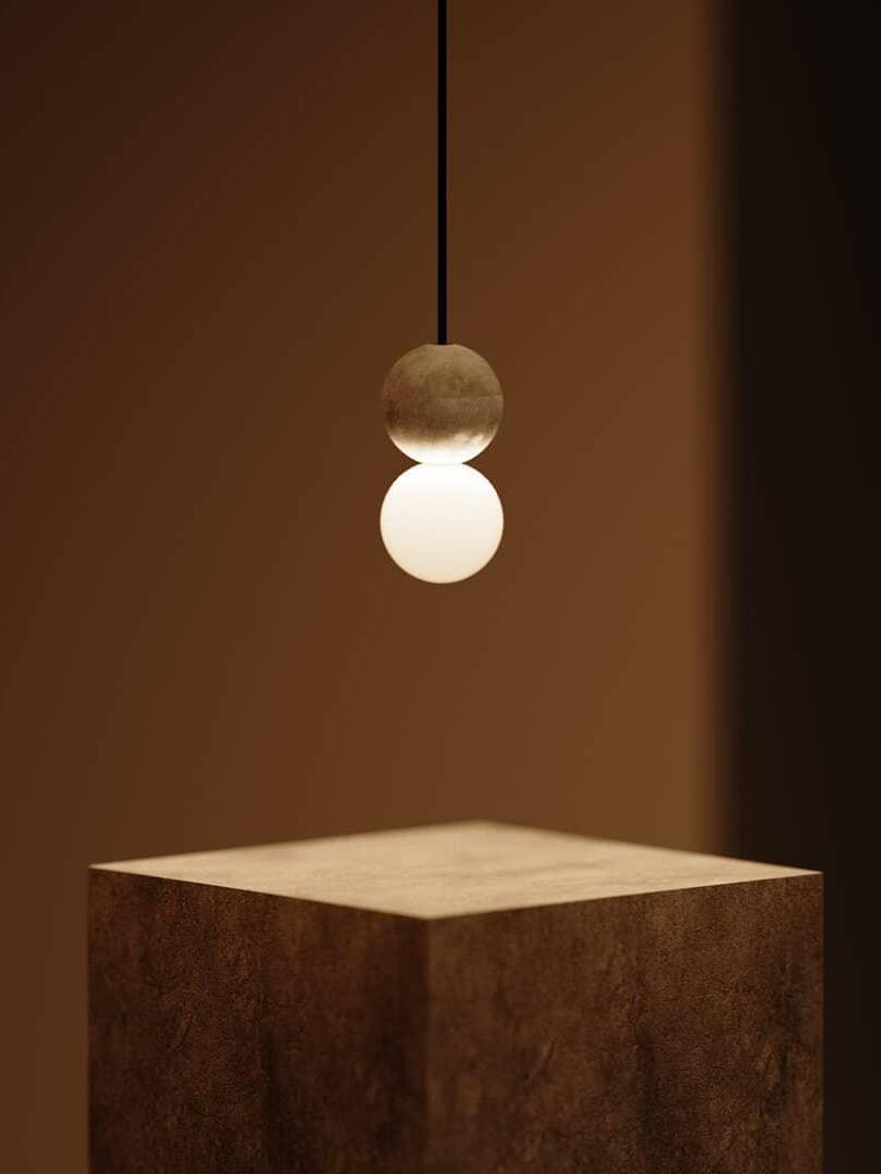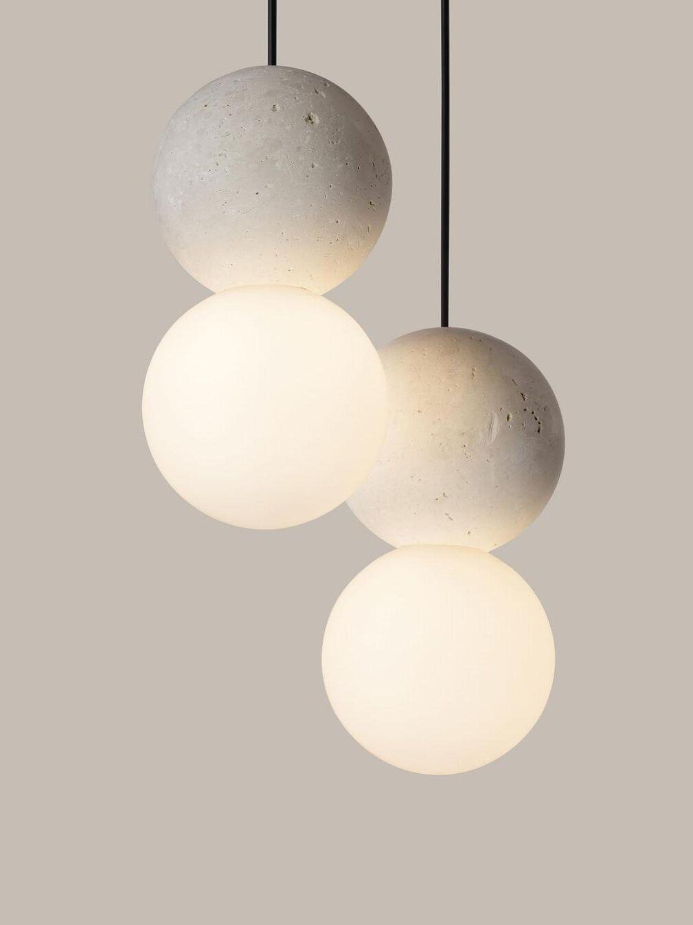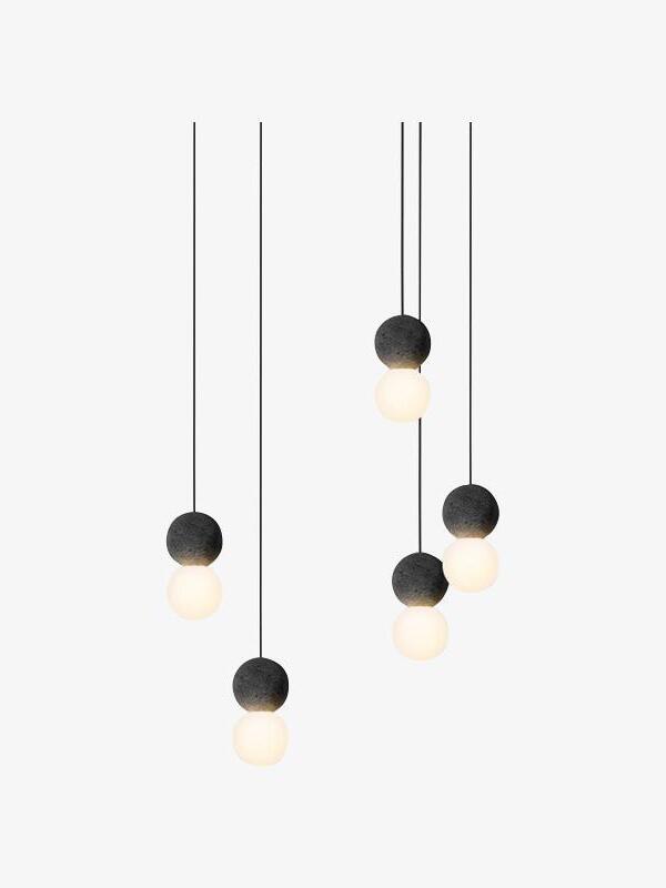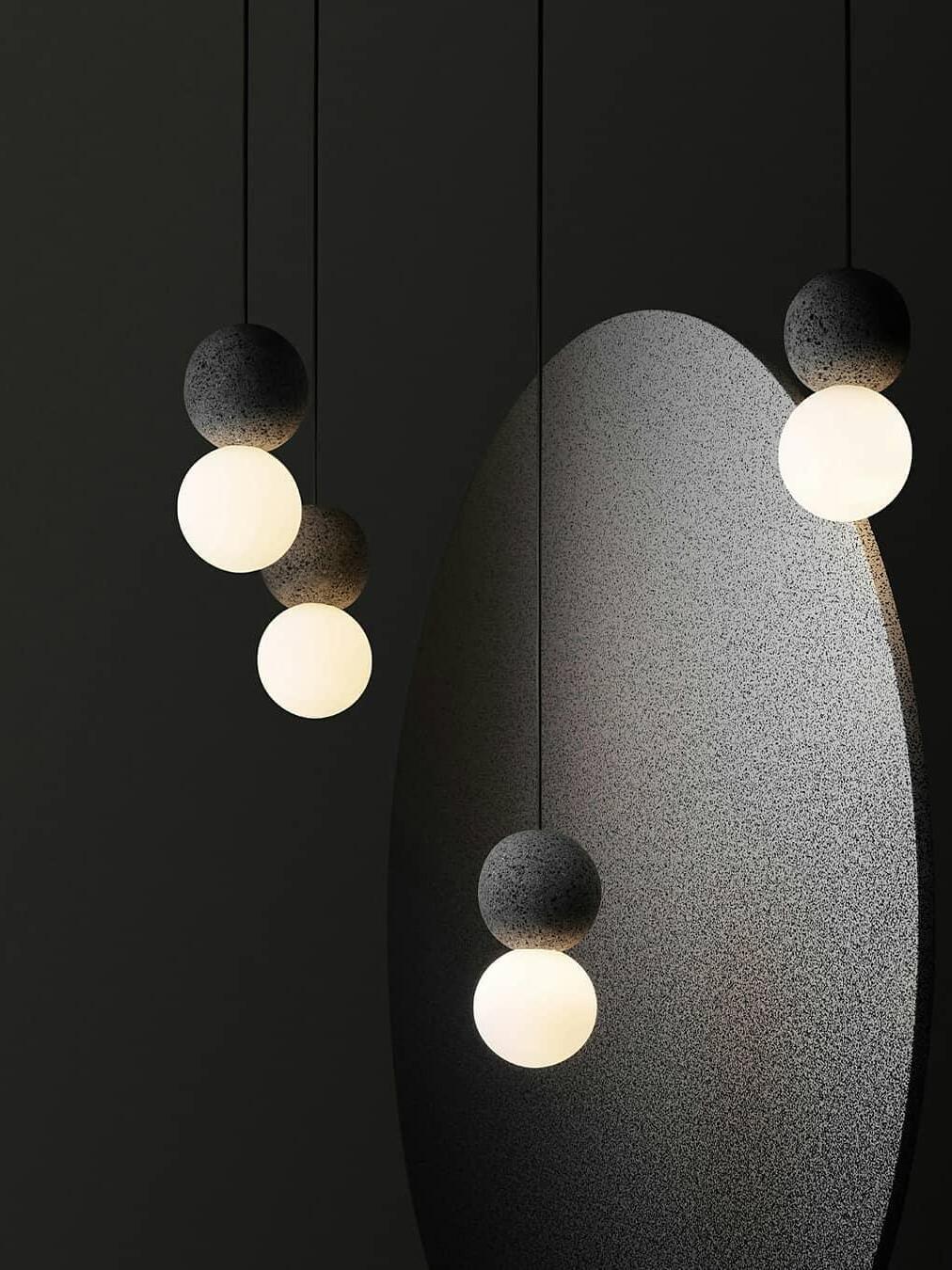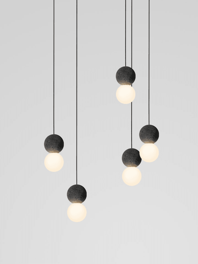 Geometría en estado puro. Origo encarna esencias opuestas que reflejan la roca volcánica y un difusor de vidrio opalino. Una exploración de la interacción, la luz brilla sobre la textura de la roca volcánica, revelando su relieve y contorno. Sobrios y lógicos, ambos materiales crean una relación entre luz y composición. El equilibrio en su esencia, ligereza y pesadez se expresa a través de una pieza atemporal. Las esferas funcionan como una geometría doble, reflejando lo positivo y lo negativo. Reforzar la relación fundamental entre luces y sombras.