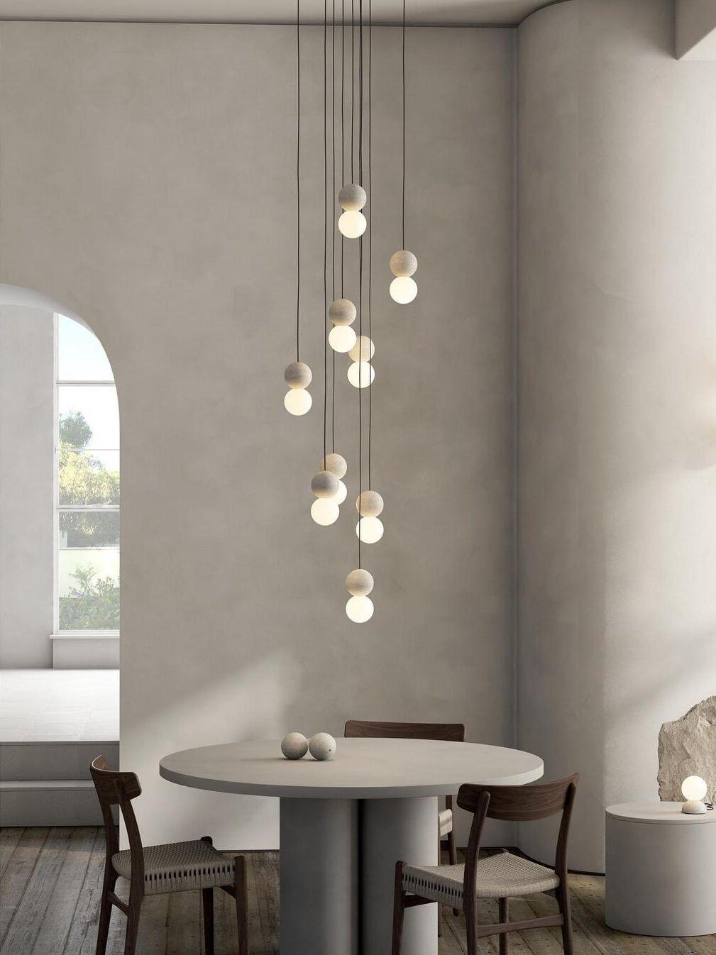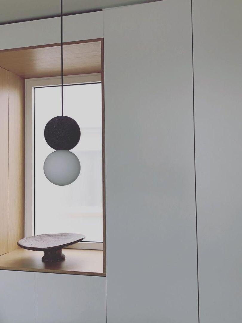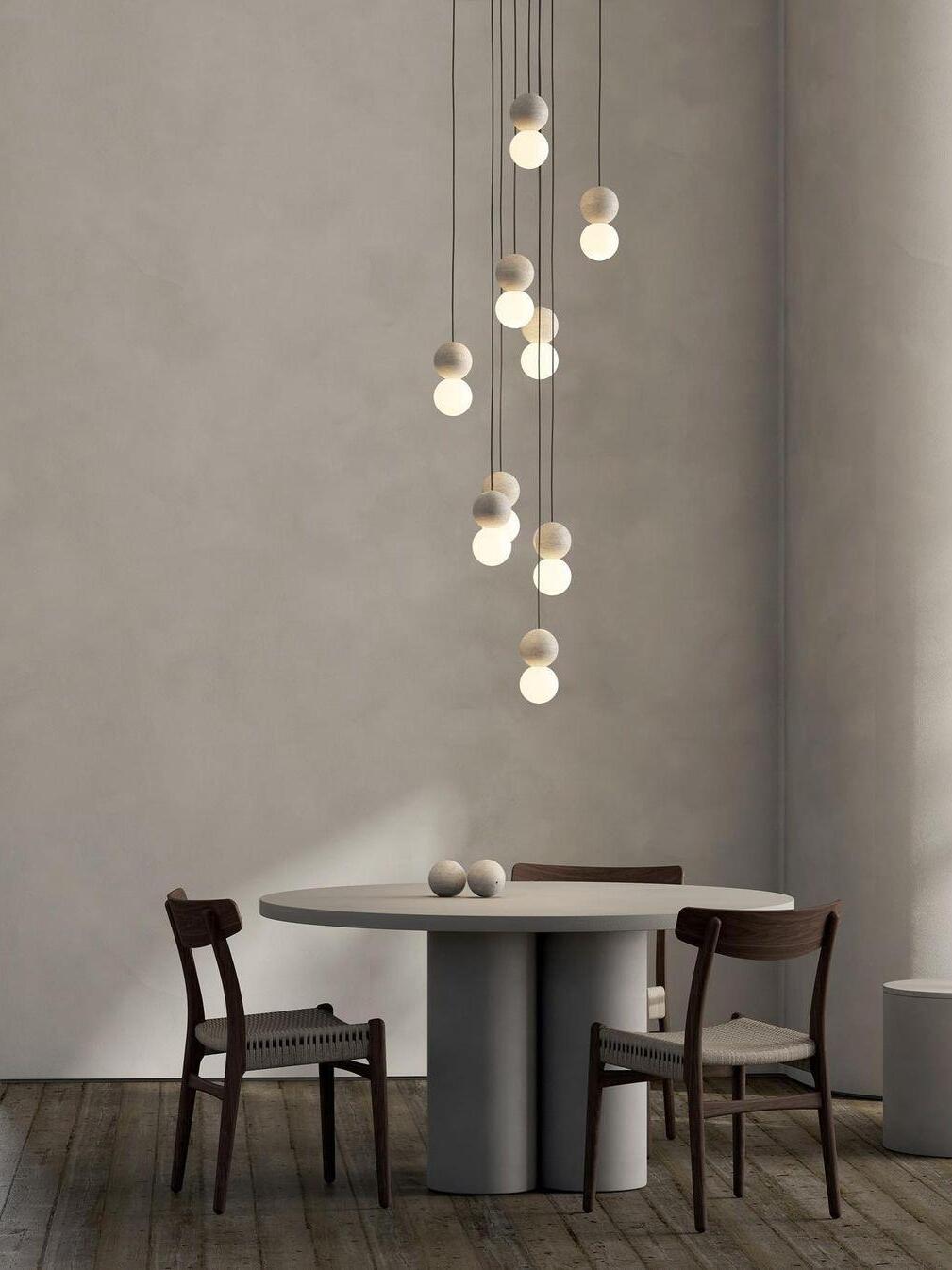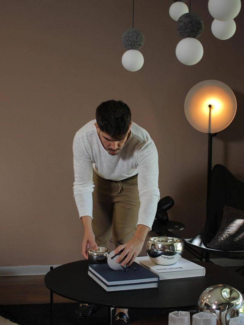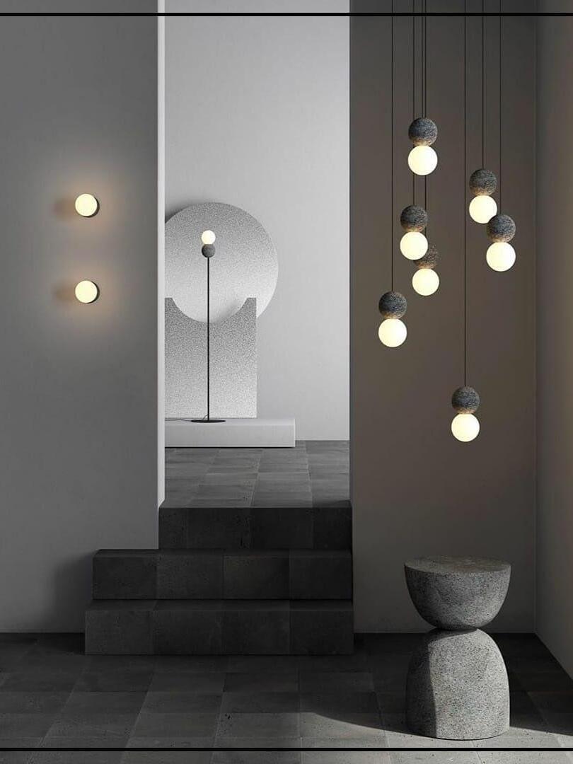 Geometría en estado puro. Origo encarna esencias opuestas que reflejan la roca volcánica y un difusor de vidrio opalino. Una exploración de la interacción, la luz brilla sobre la textura de la roca volcánica, revelando su relieve y contorno. Sobrios y lógicos, ambos materiales crean una relación entre luz y composición. El equilibrio en su esencia, ligereza y pesadez se expresa a través de una pieza atemporal. Las esferas funcionan como una geometría doble, reflejando lo positivo y lo negativo. Reforzar la relación fundamental entre luces y sombras.
