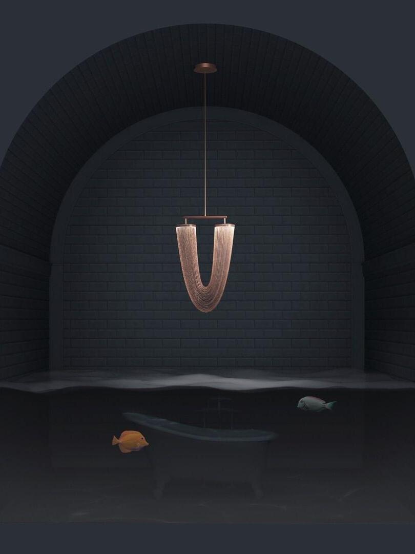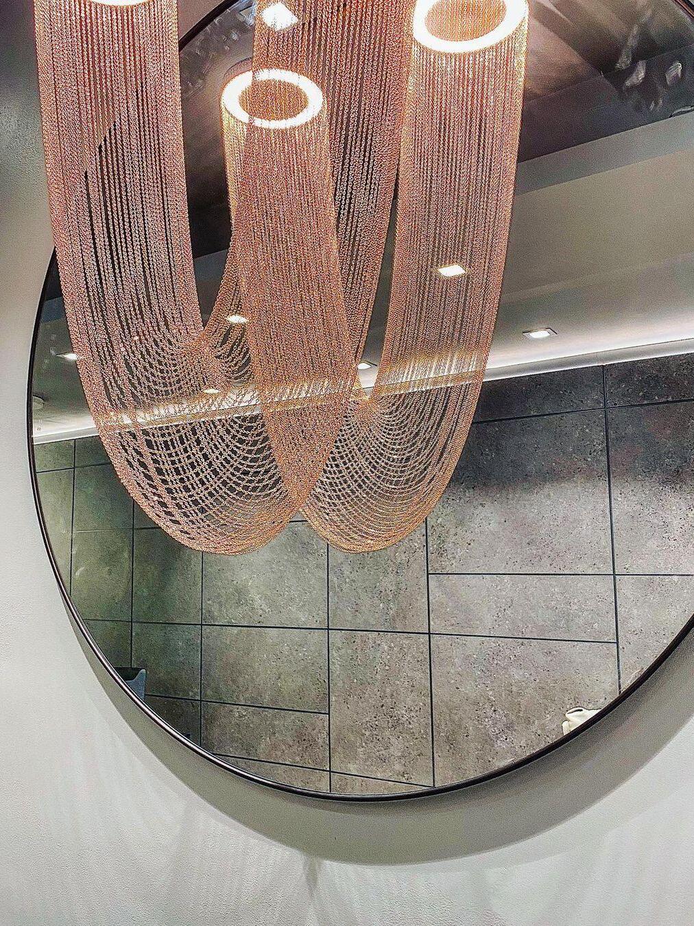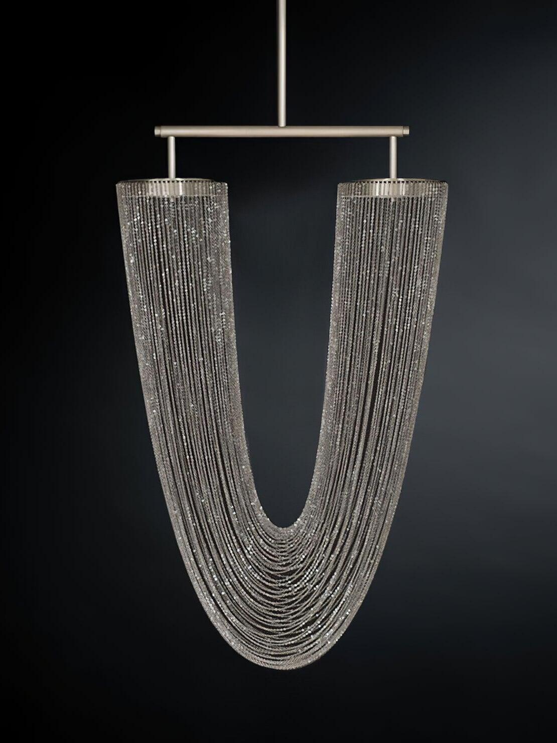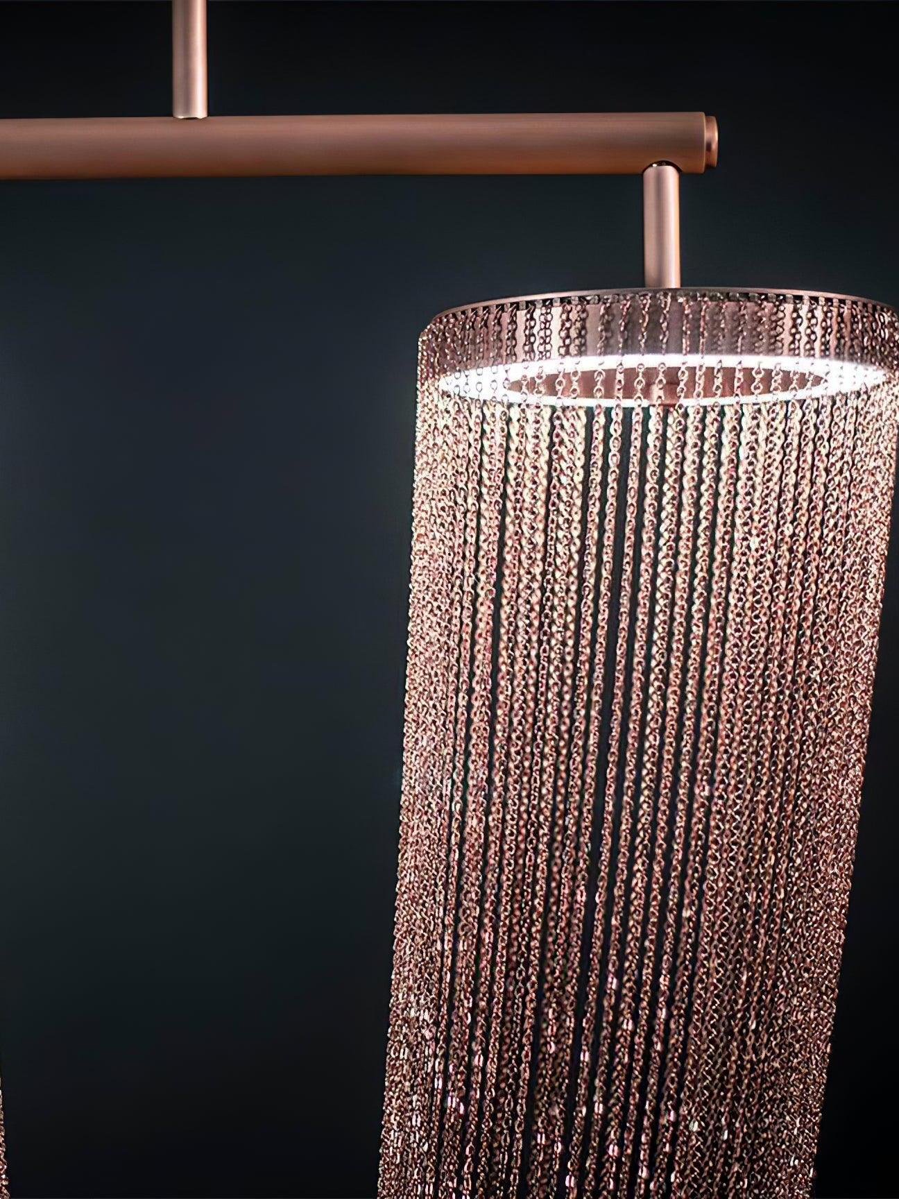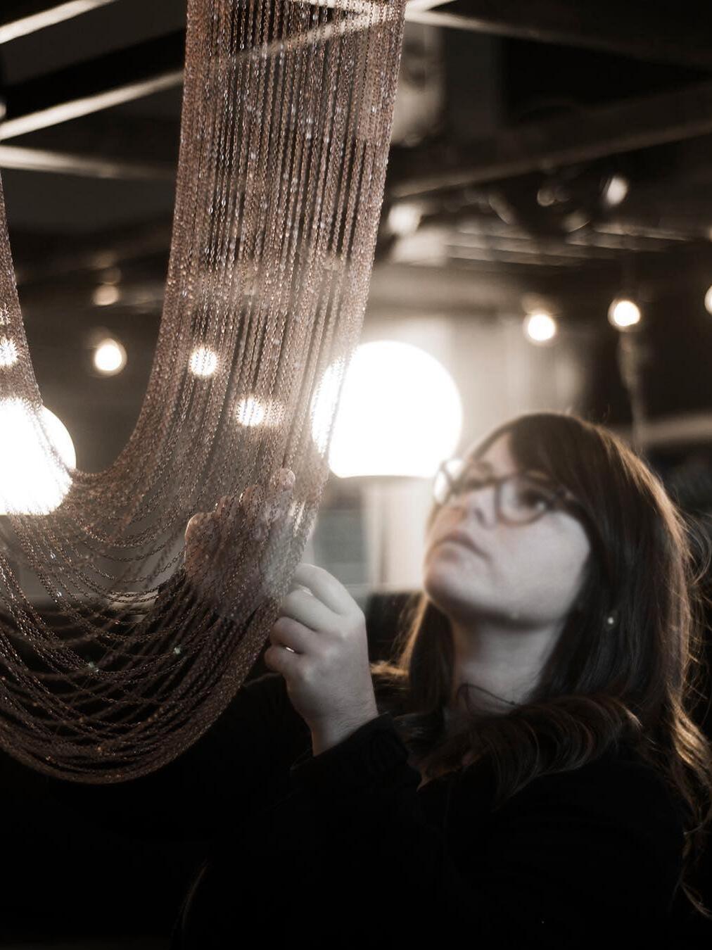 Es con una belleza poética capturada en este lujoso accesorio de iluminación de alta gama que ha sido recubierto con calidez y elegancia, que infectará su vida diaria. Esta lámpara escultural está hecha a mano con delicadas cadenas de cobre para crear una forma curva única y elegante inspirada en el romántico mundo de la joyería. La luz proviene de dos anillos de cobre y atraviesa las cadenas para crear una atmósfera mágica.