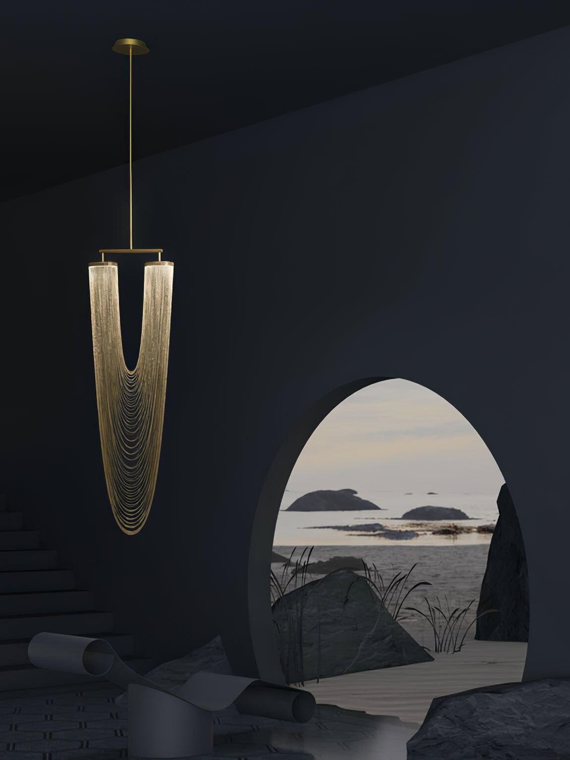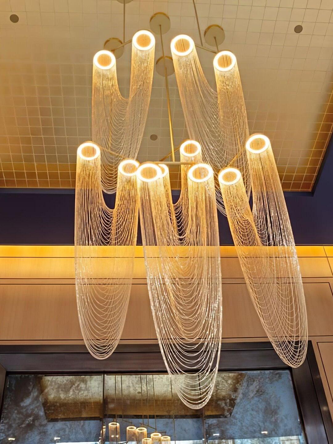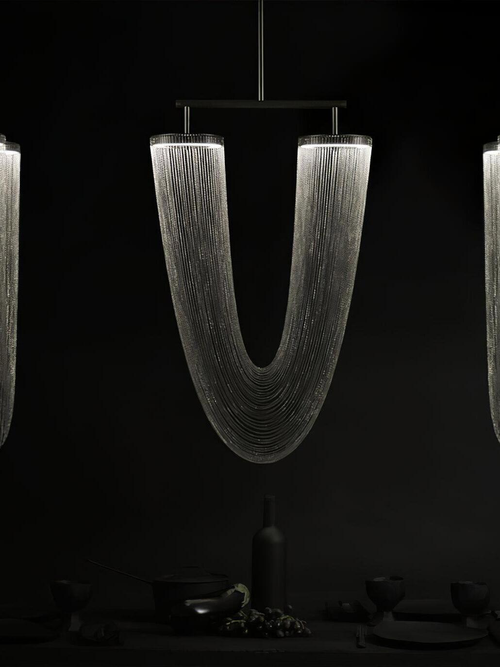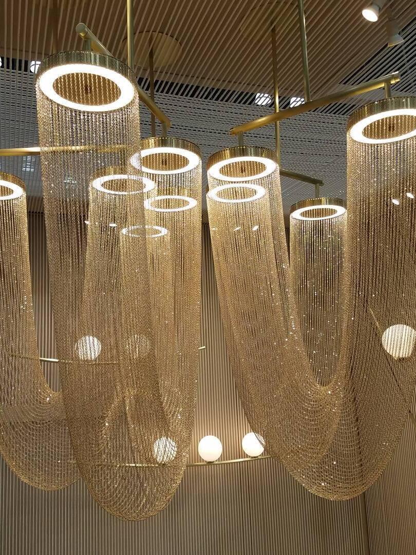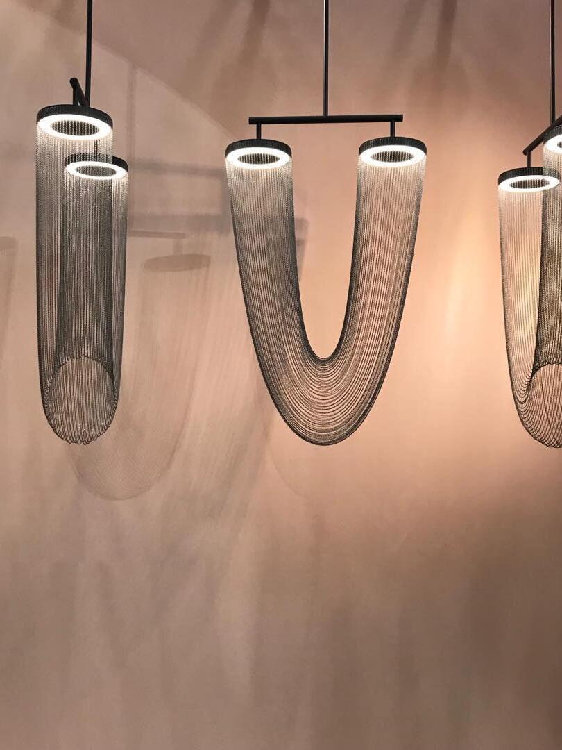 Es con una belleza poética capturada en este lujoso accesorio de iluminación de alta gama que ha sido recubierto con calidez y elegancia, que infectará su vida diaria. Esta lámpara escultural está hecha a mano con delicadas cadenas de cobre para crear una forma curva única y elegante inspirada en el romántico mundo de la joyería. La luz proviene de dos anillos de cobre y atraviesa las cadenas para crear una atmósfera mágica.