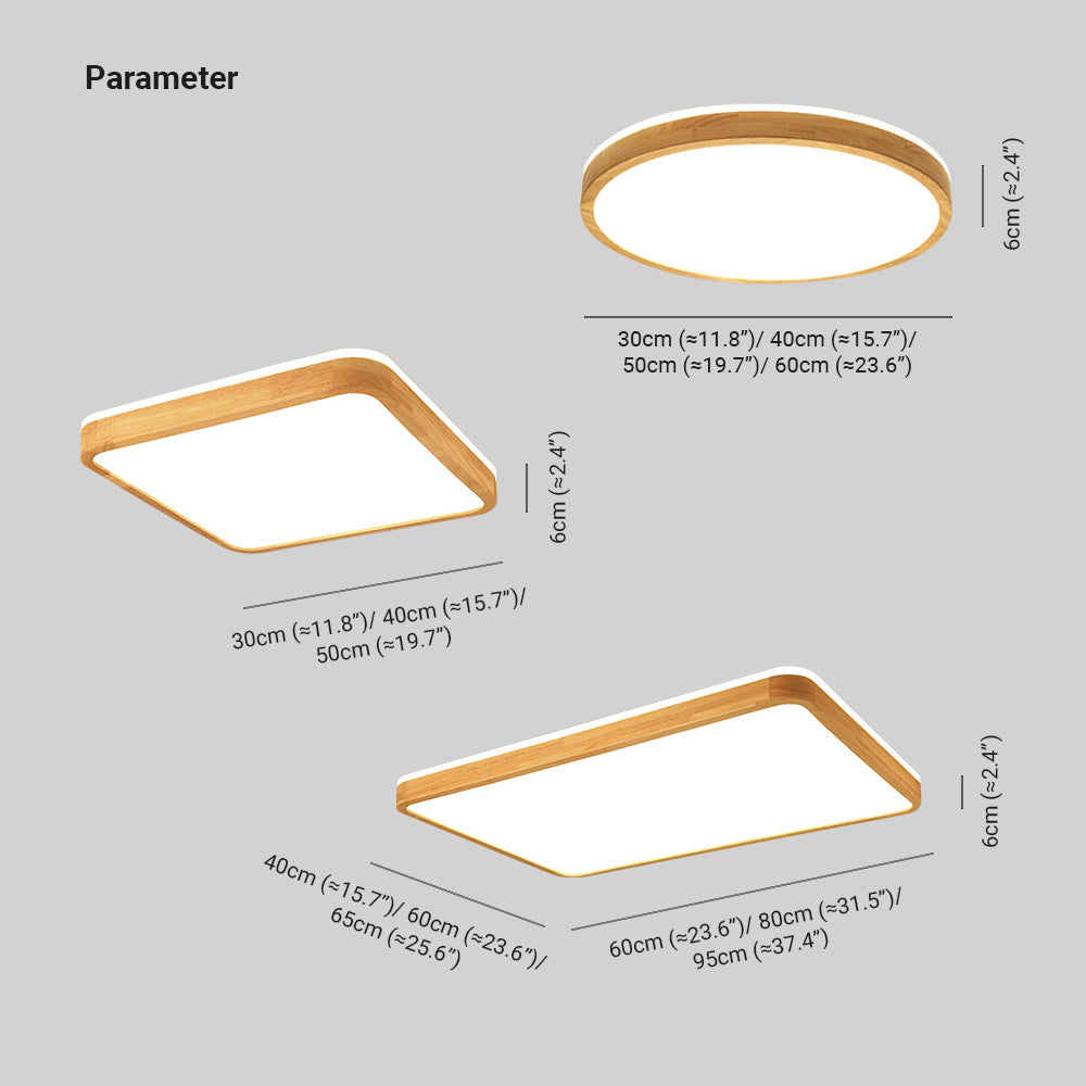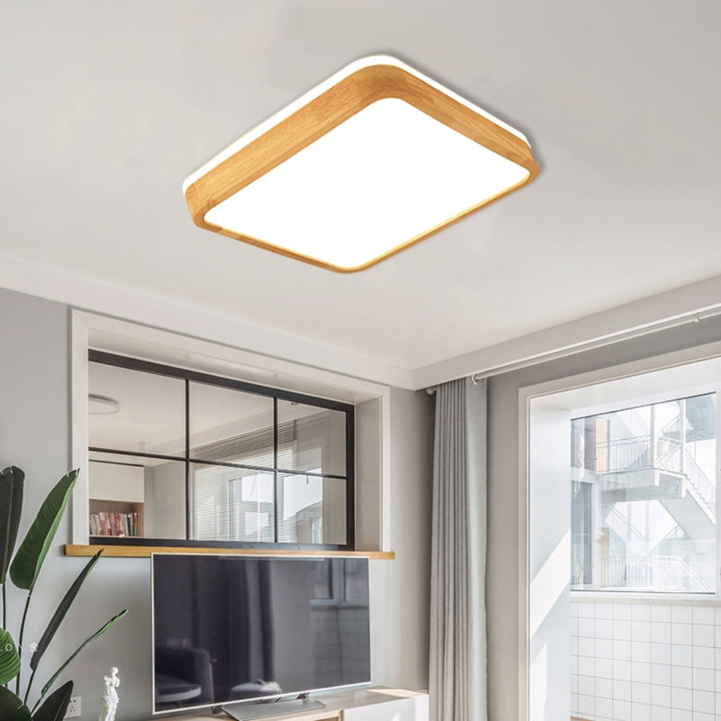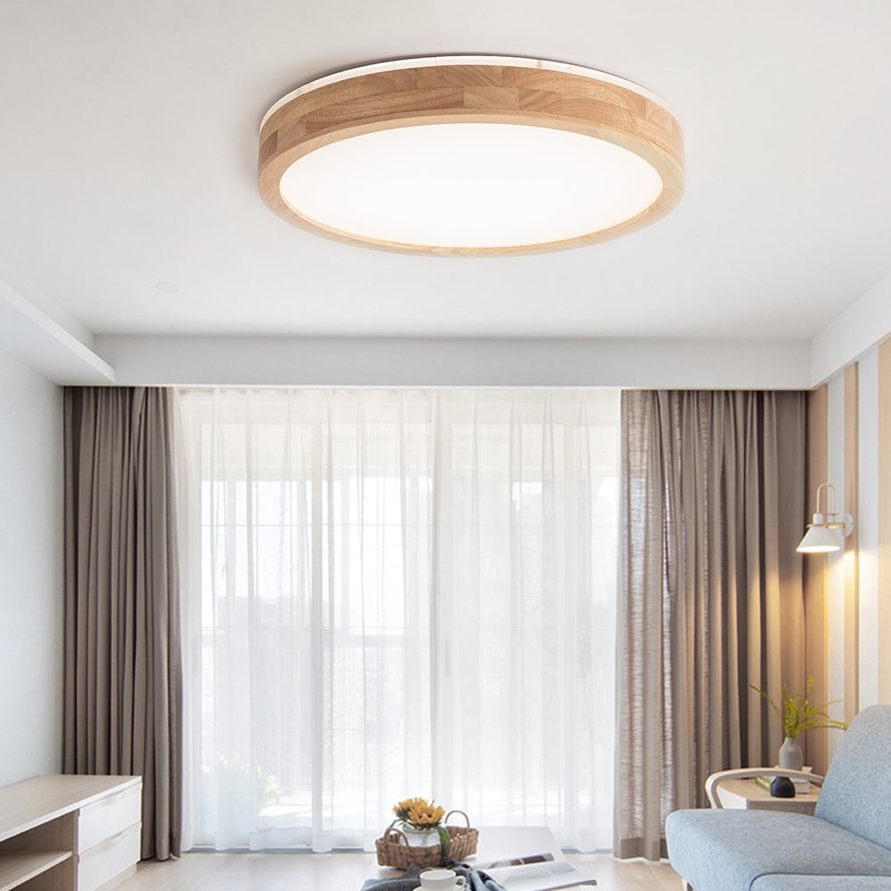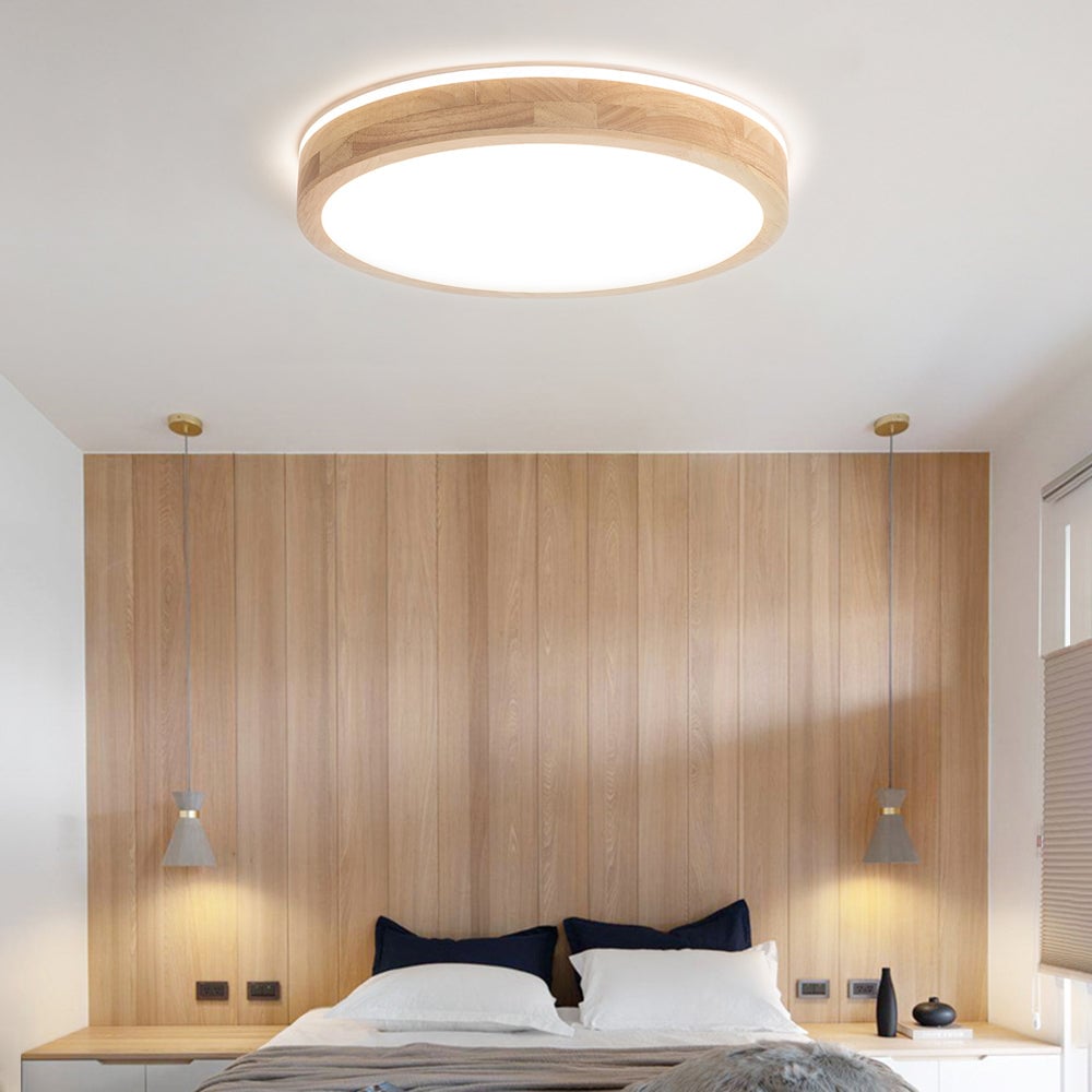 Lámpara de techo empotrada en madera y acrílico redonda nórdica Ozawa Madera