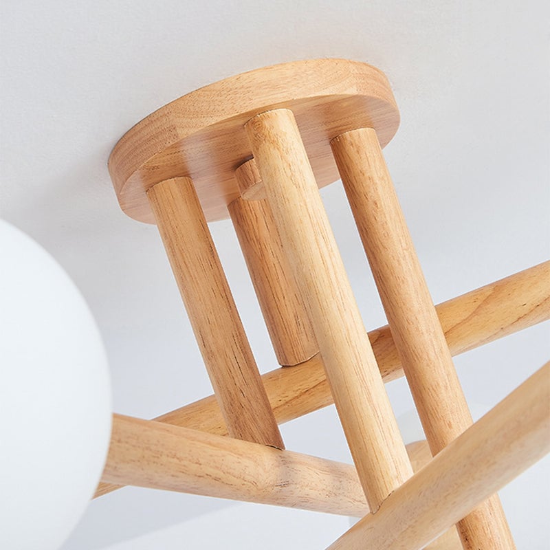 Lámpara de techo empotrada en madera y vidrio Ozawa Modern Globe