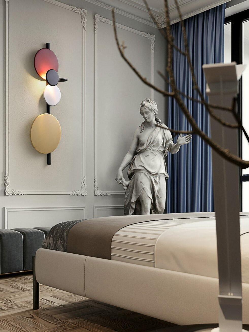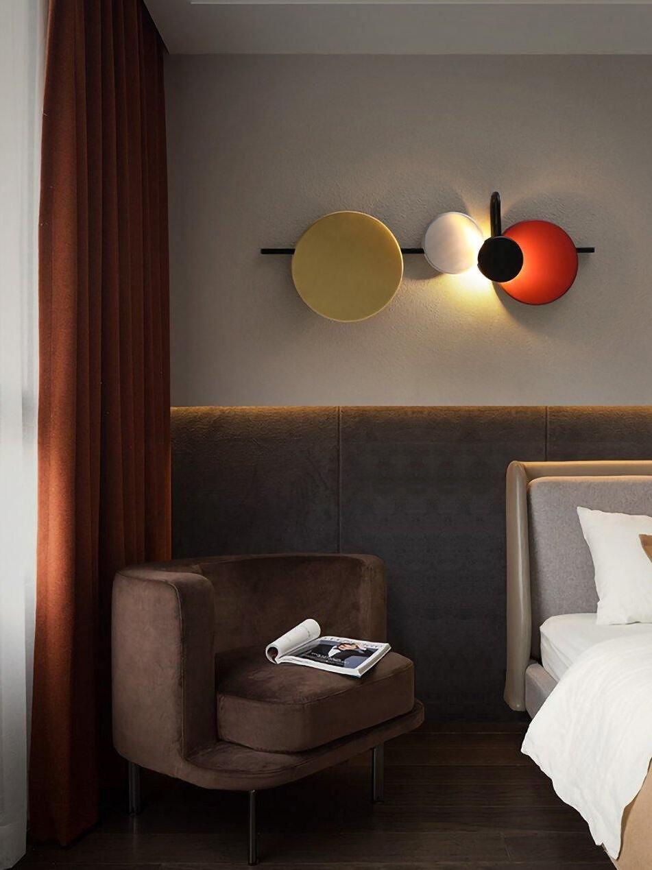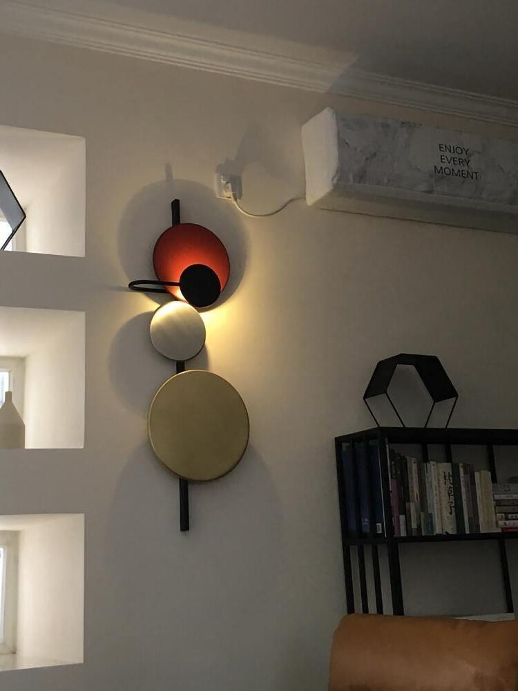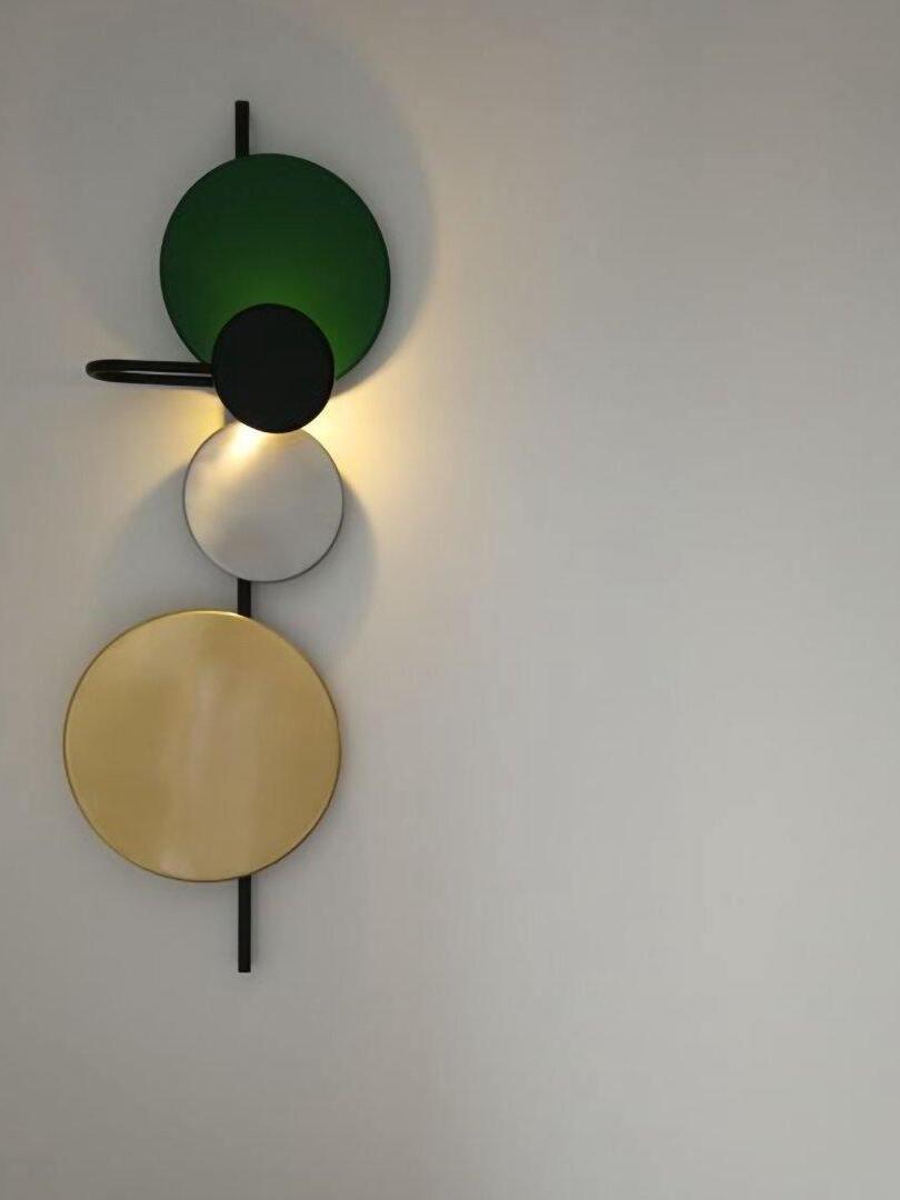 La lámpara de pared creativa Macaroon Planet Disc cuenta con una cautivadora fusión de estilo contemporáneo y vanguardista que eleva cualquier espacio habitable. Adornada con un grupo de discos iluminados en forma de macarrón, esta exclusiva lámpara de pared irradia un brillo suave y etéreo, añadiendo un toque de fantasía y sofisticación a cualquier habitación.