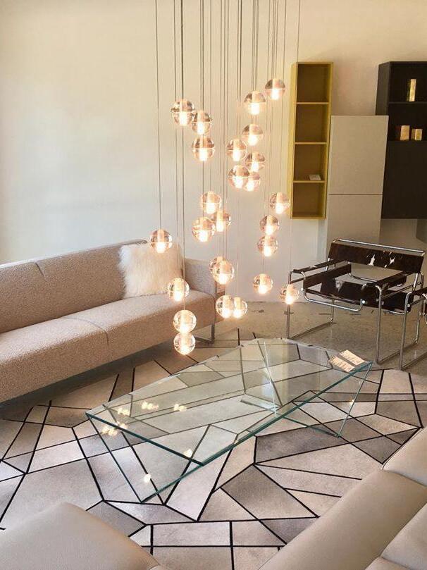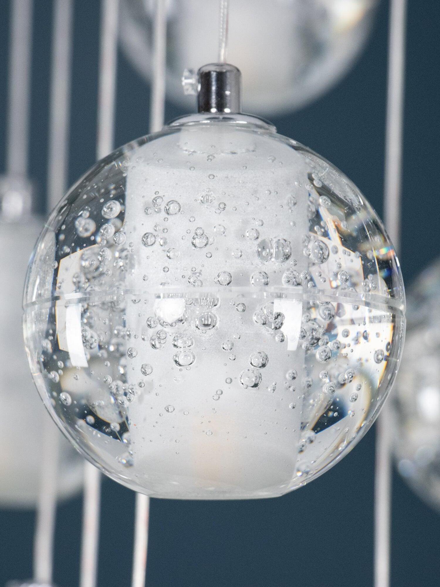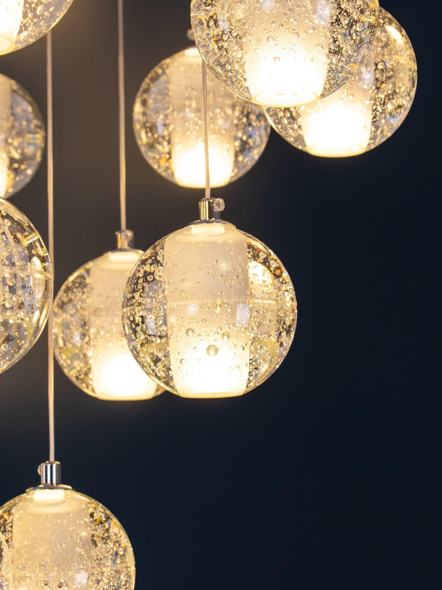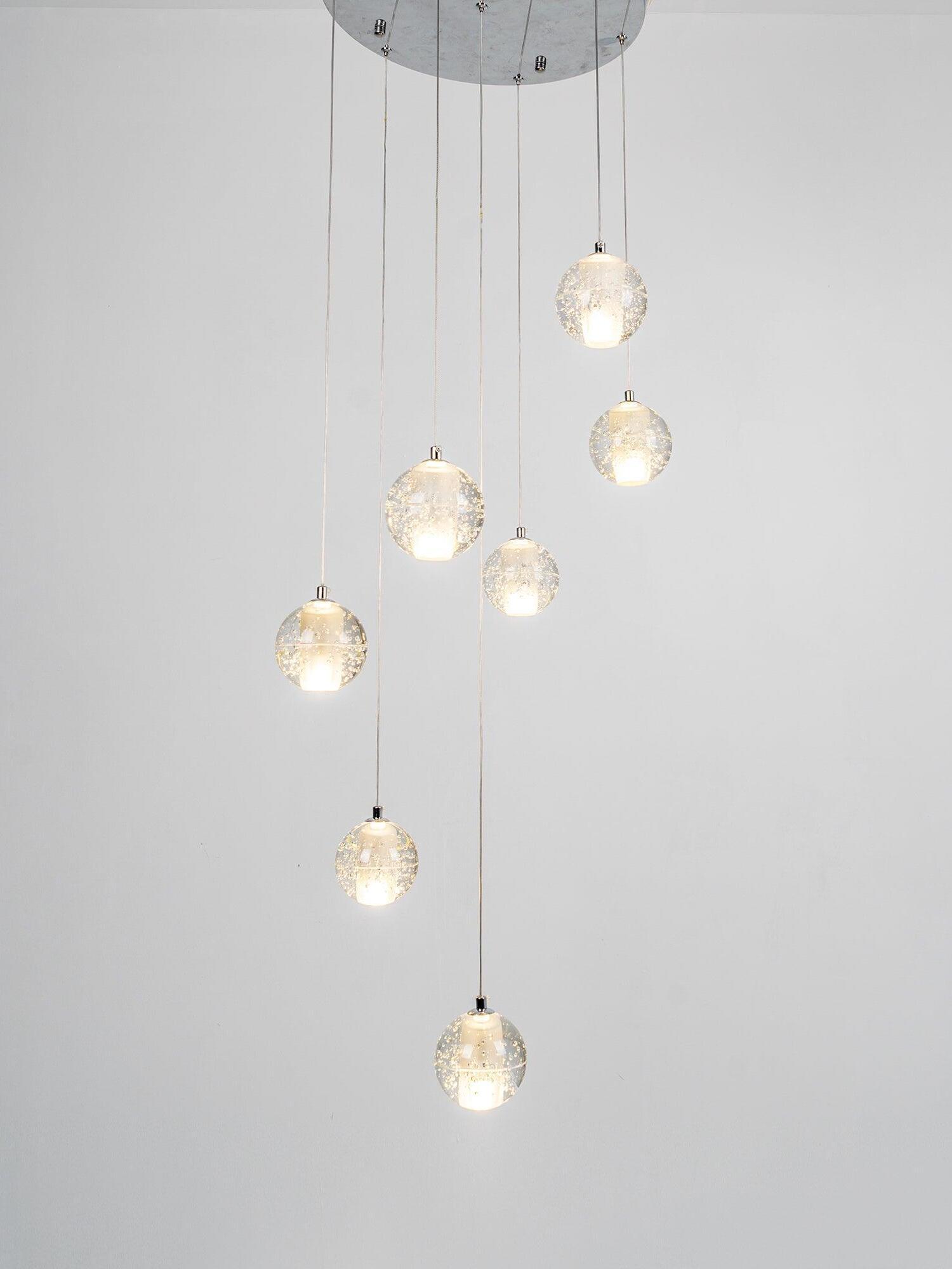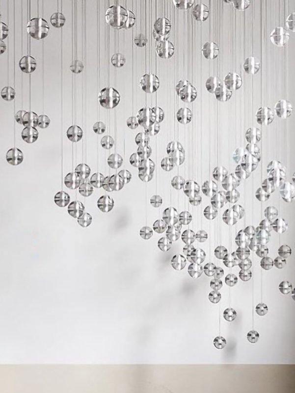 La lámpara colgante Crystal interactúa con las imperfecciones del vidrio para crear un rico halo de luz. Visualmente bastante sutil, gana una fuerza tremenda cuando se agrupa en formaciones aleatorias a lo largo de aplicaciones horizontales y verticales. Las aplicaciones residenciales y comerciales populares incluyen cocinas, restaurantes, dormitorios y armarios, pasillos, patios, iluminación de escaleras, vestíbulos y vestíbulos, y otras grandes configuraciones interiores y exteriores en espacios públicos y privados.