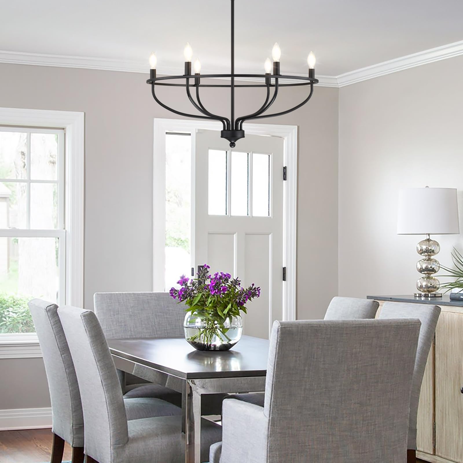 - Deje que su espacio disfrute de las suaves curvas y las atractivas formas de la lámpara de araña Silva. Los brazos largos y amplios crean una sinfonía visual que cautiva la vista. Las elegantes curvas de los brazos se extienden para abrazar las luces de las velas, formando una interacción armoniosa de luz y forma. El metal redondo que conecta estas luces no es sólo un elemento estructural; es una elección de diseño que añade un toque de delicadeza a tu espacio. Silva no es simplemente un elemento de iluminación; es una obra maestra escultórica que redefine su sala o comedor con su cautivadora geometría.