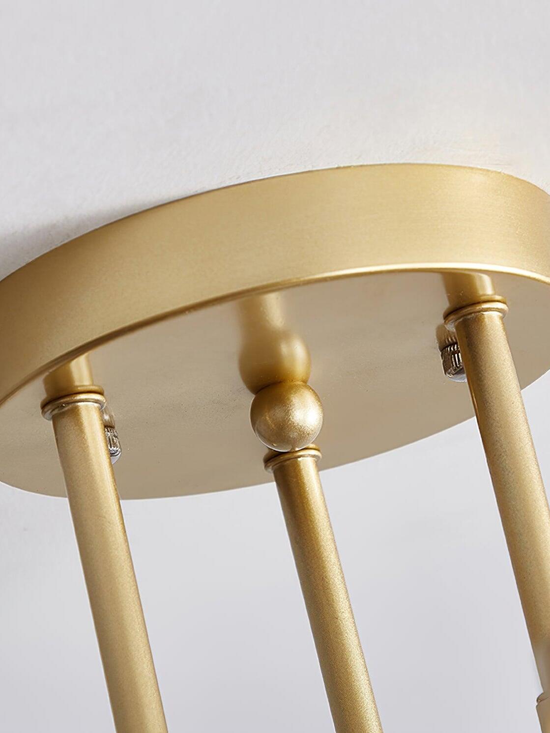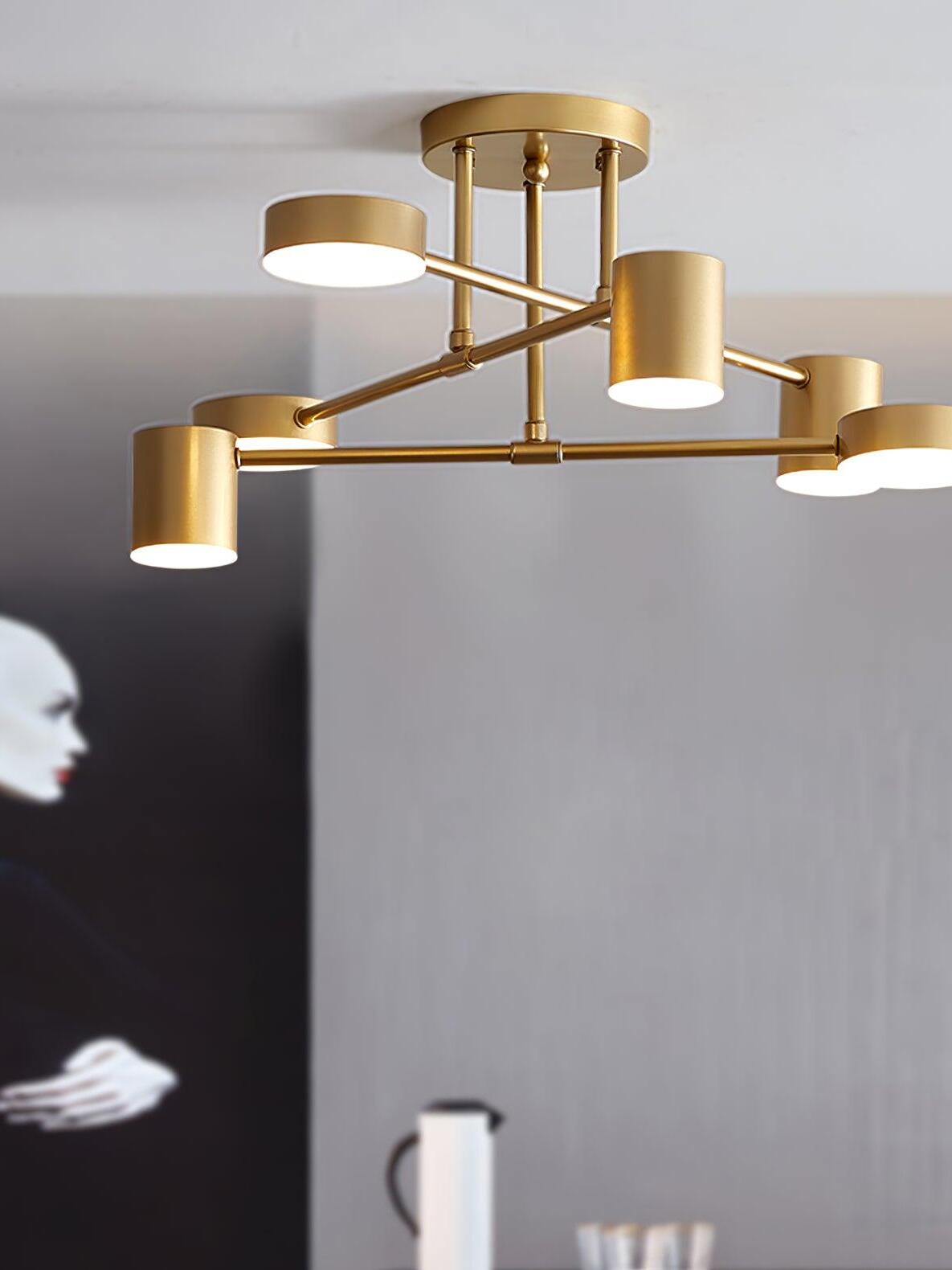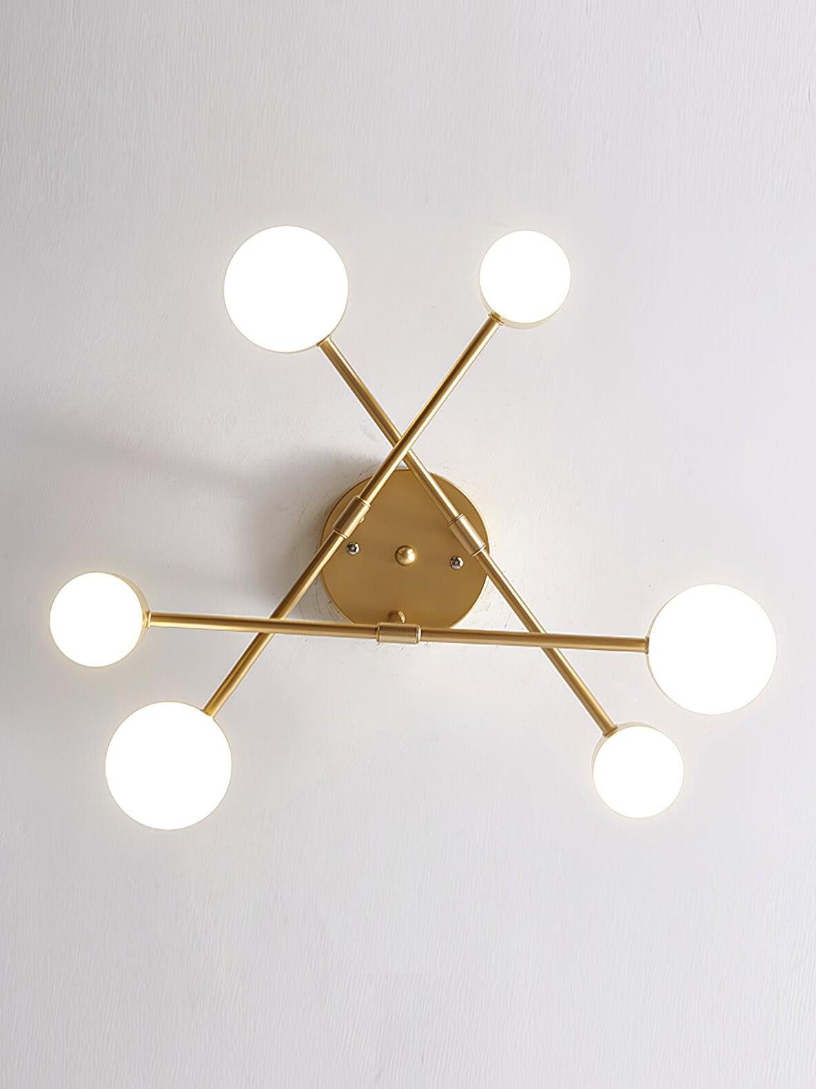 Mejora tus techos altos con la lámpara de techo empotrada Sputnik dorada. Con un impresionante marco de metal de múltiples brazos, este accesorio suspende seis pantallas de vidrio blanco LED integradas sobre sus salas de estar.