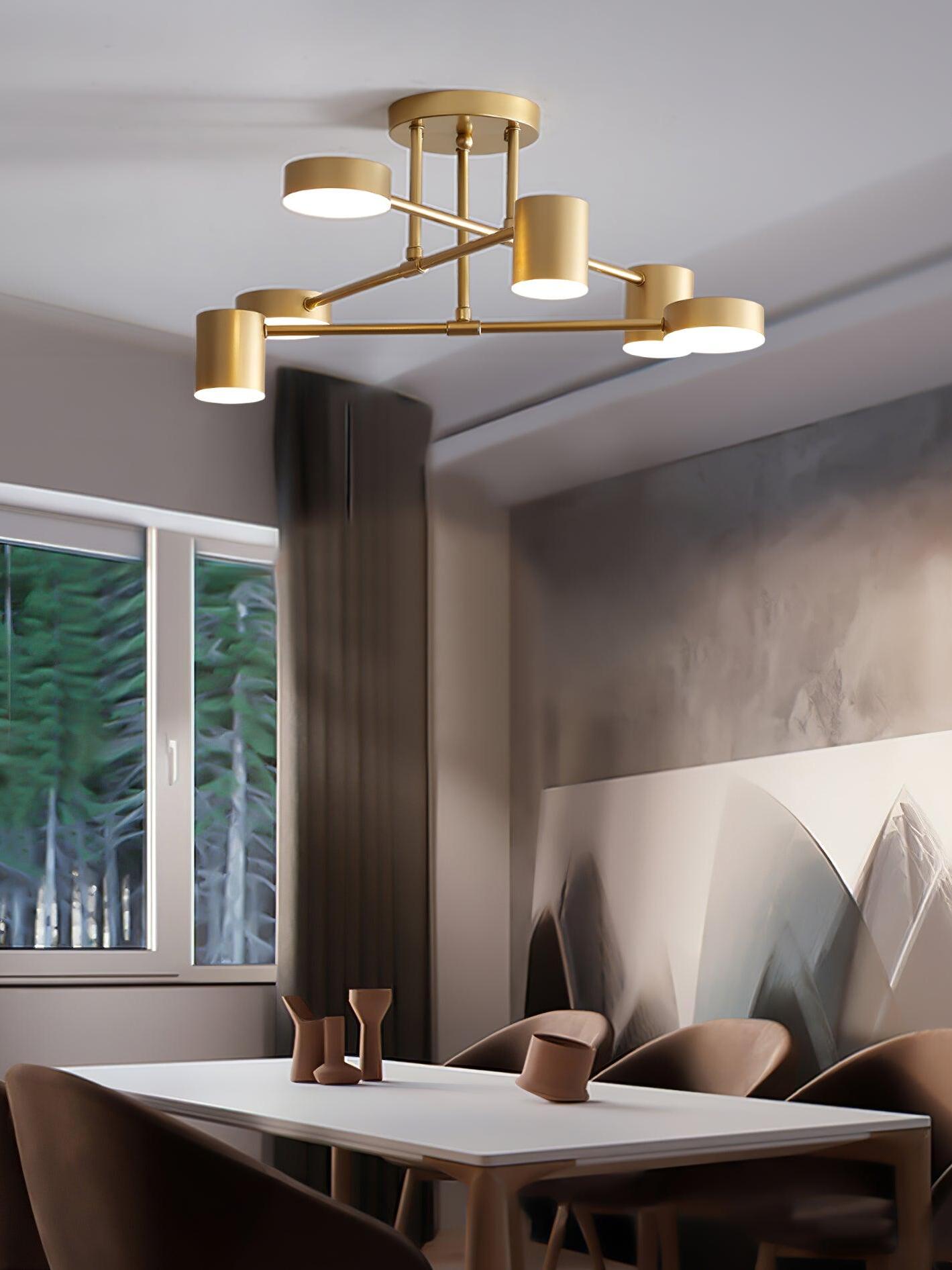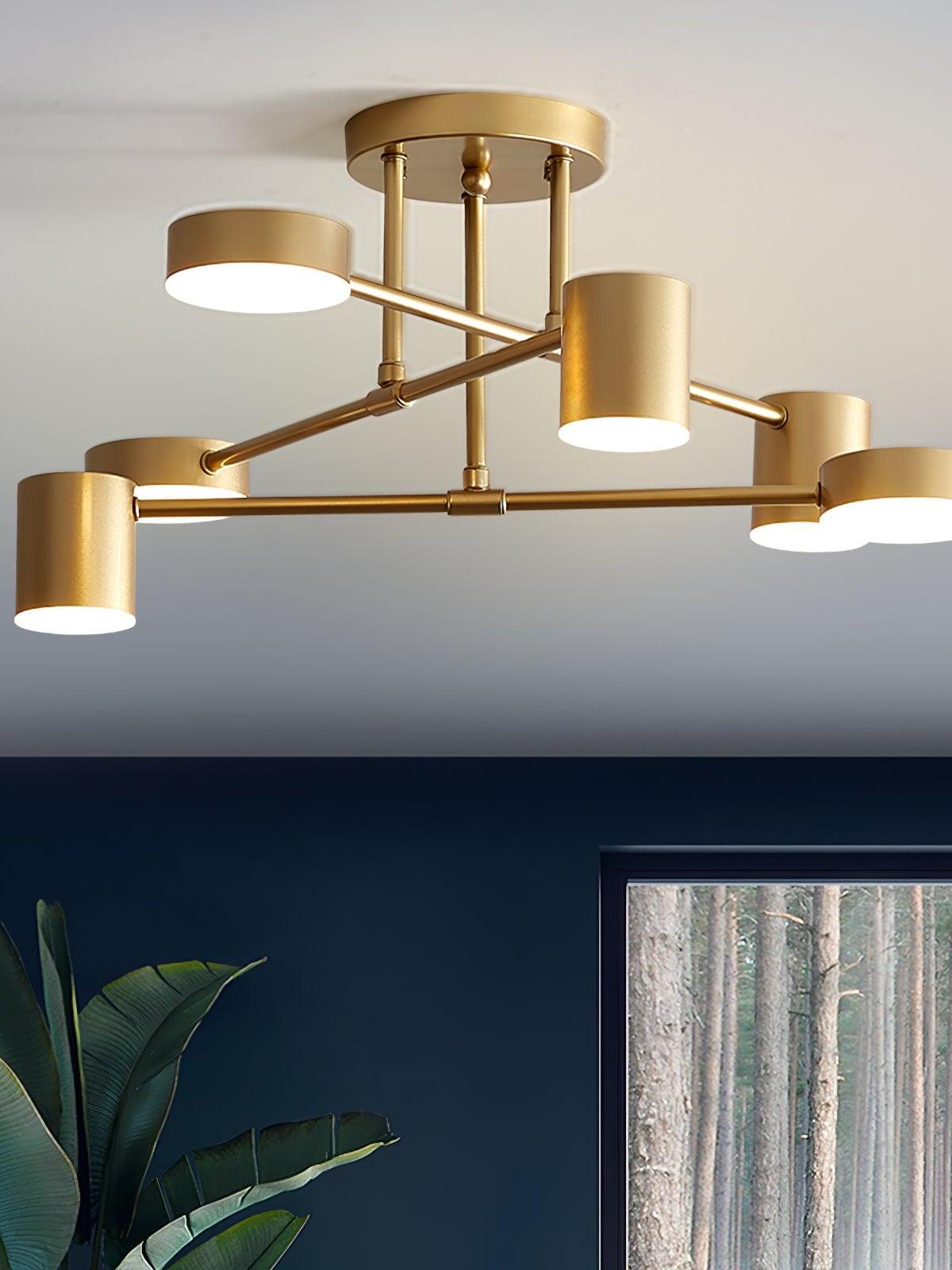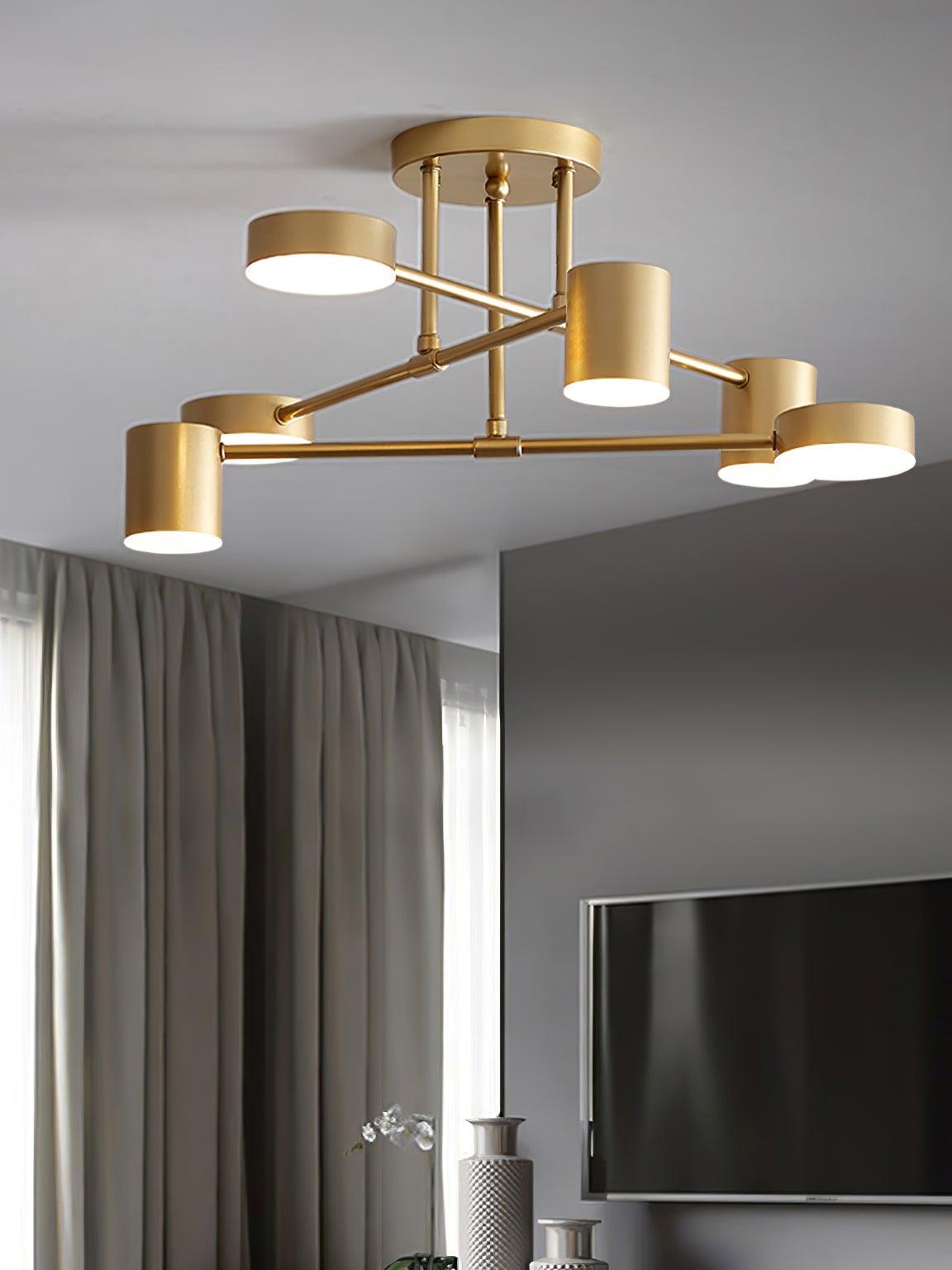 Mejora tus techos altos con la lámpara de techo empotrada Sputnik dorada. Con un impresionante marco de metal de múltiples brazos, este accesorio suspende seis pantallas de vidrio blanco LED integradas sobre sus salas de estar.