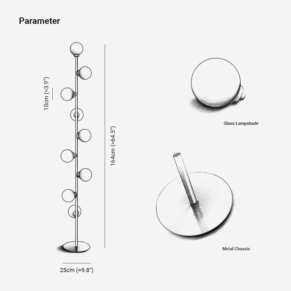 Lámpara de pie Valentina Globe Glass Slim, salón
