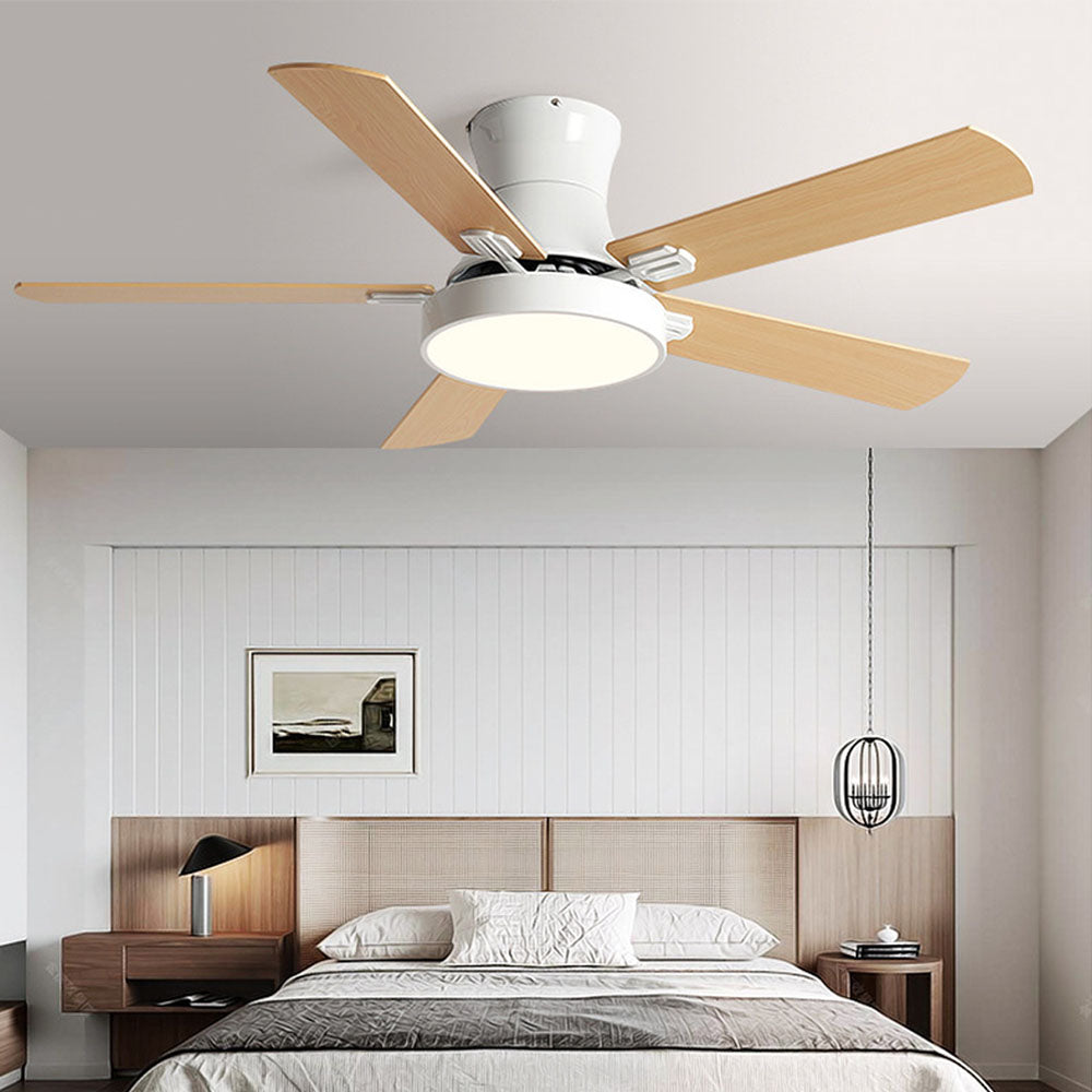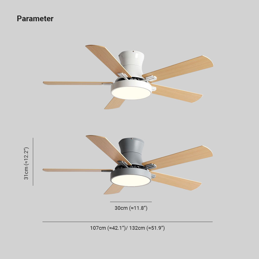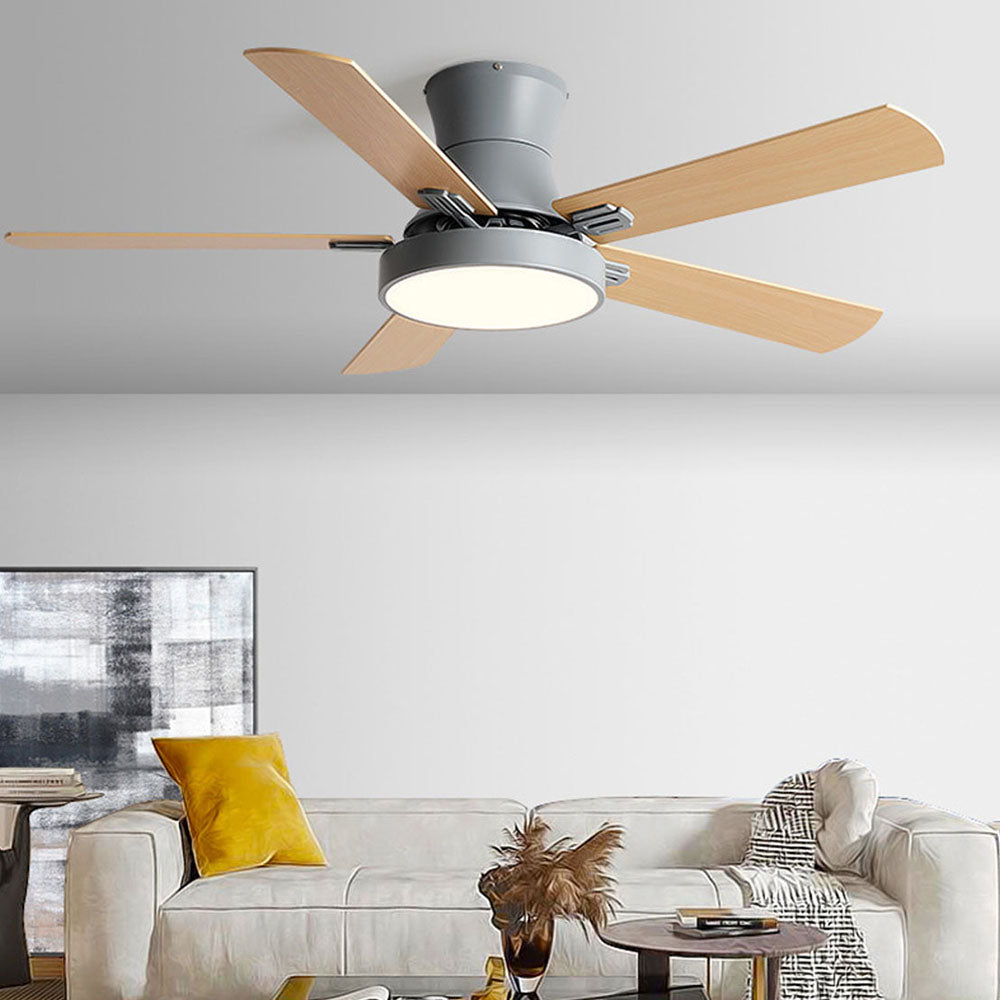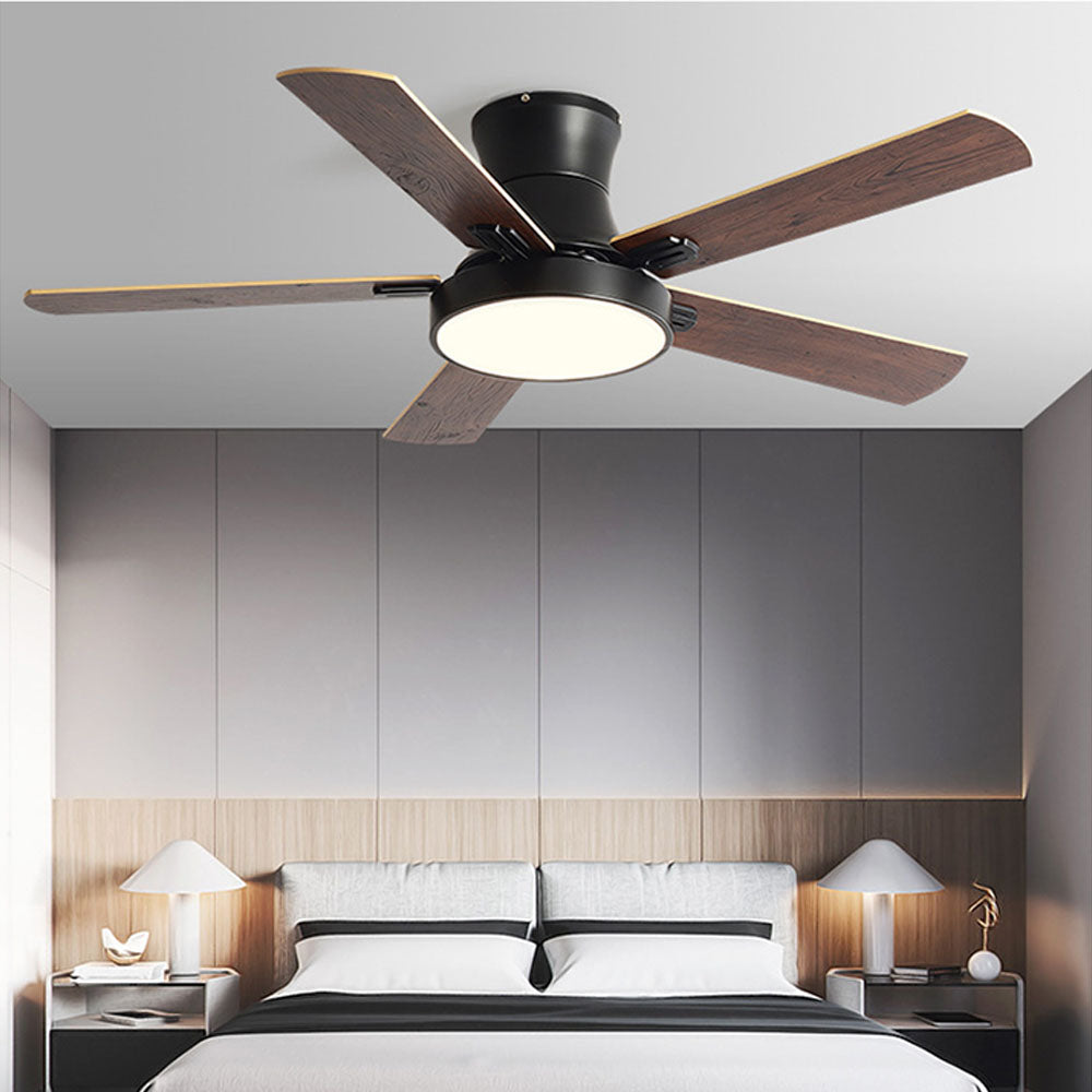Ventilador de techo DC de madera moderno de 5 aspas Ozawa con luz, 47,2 ''/51,2''