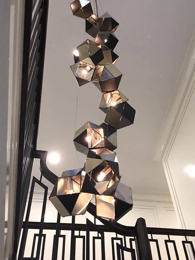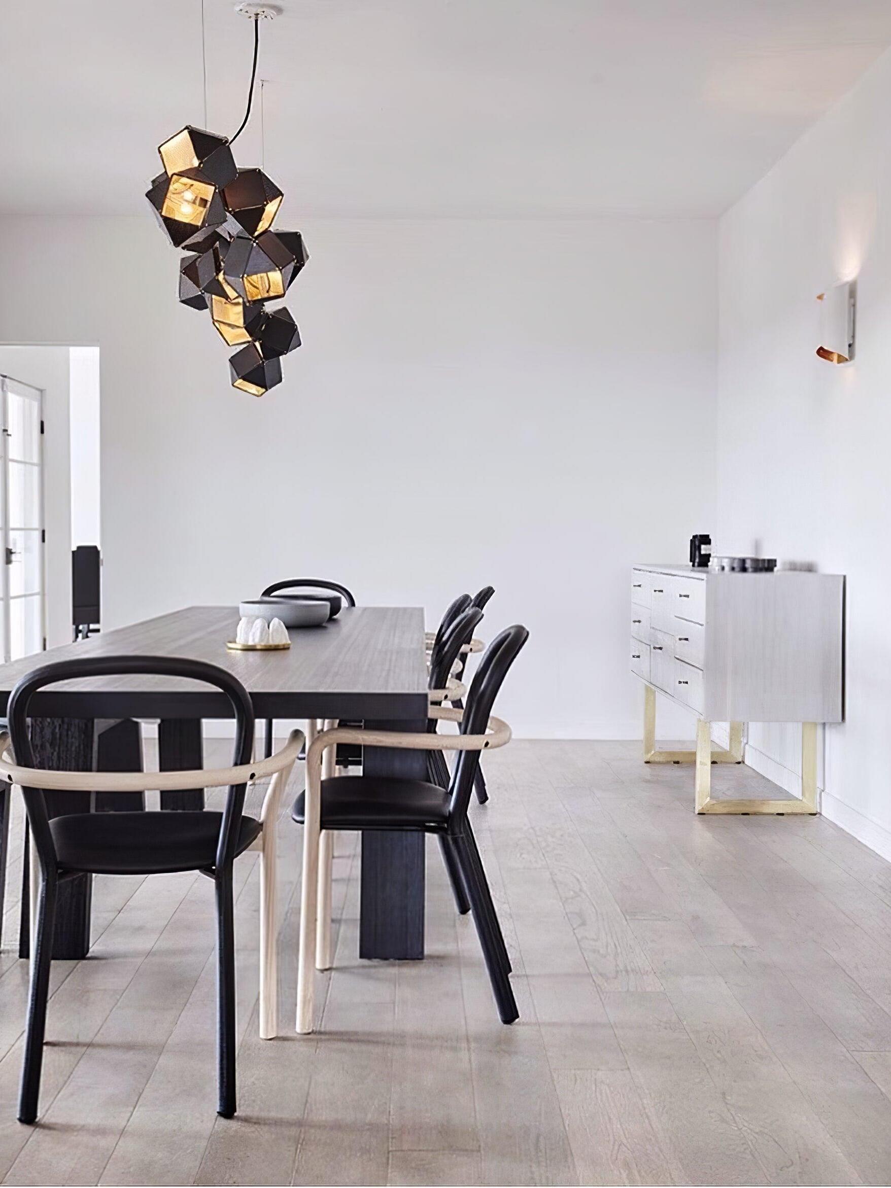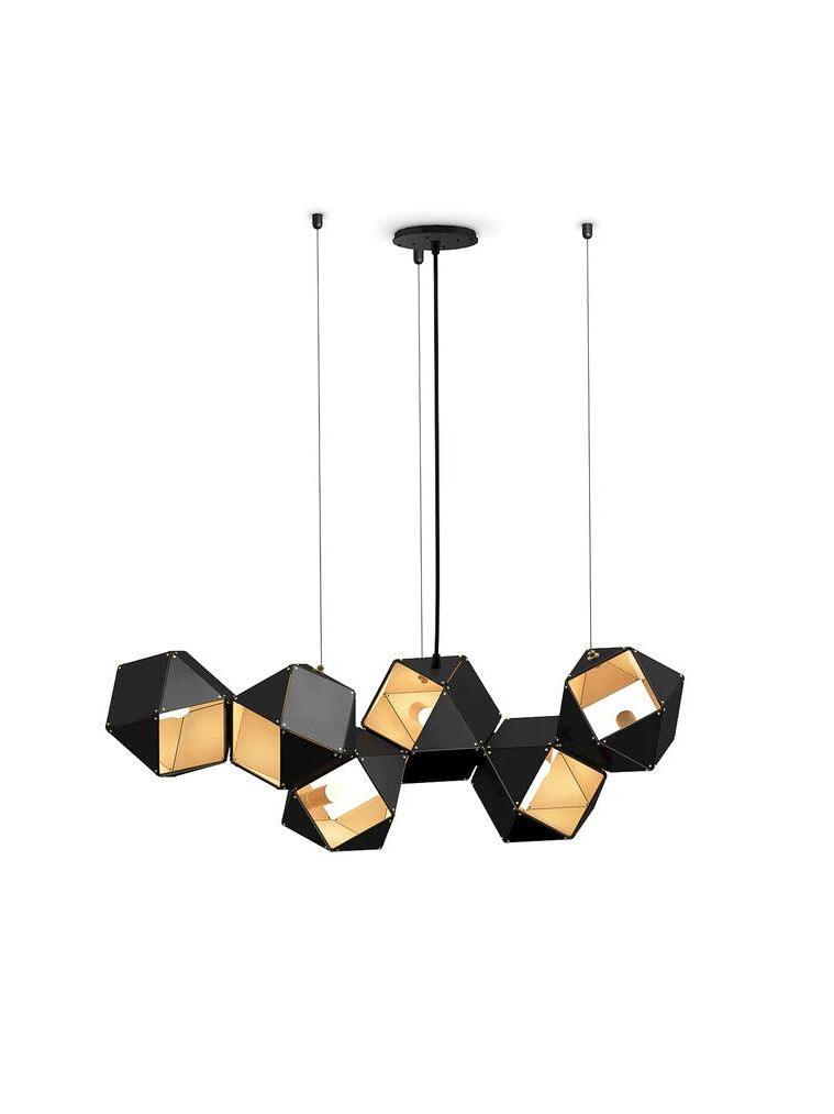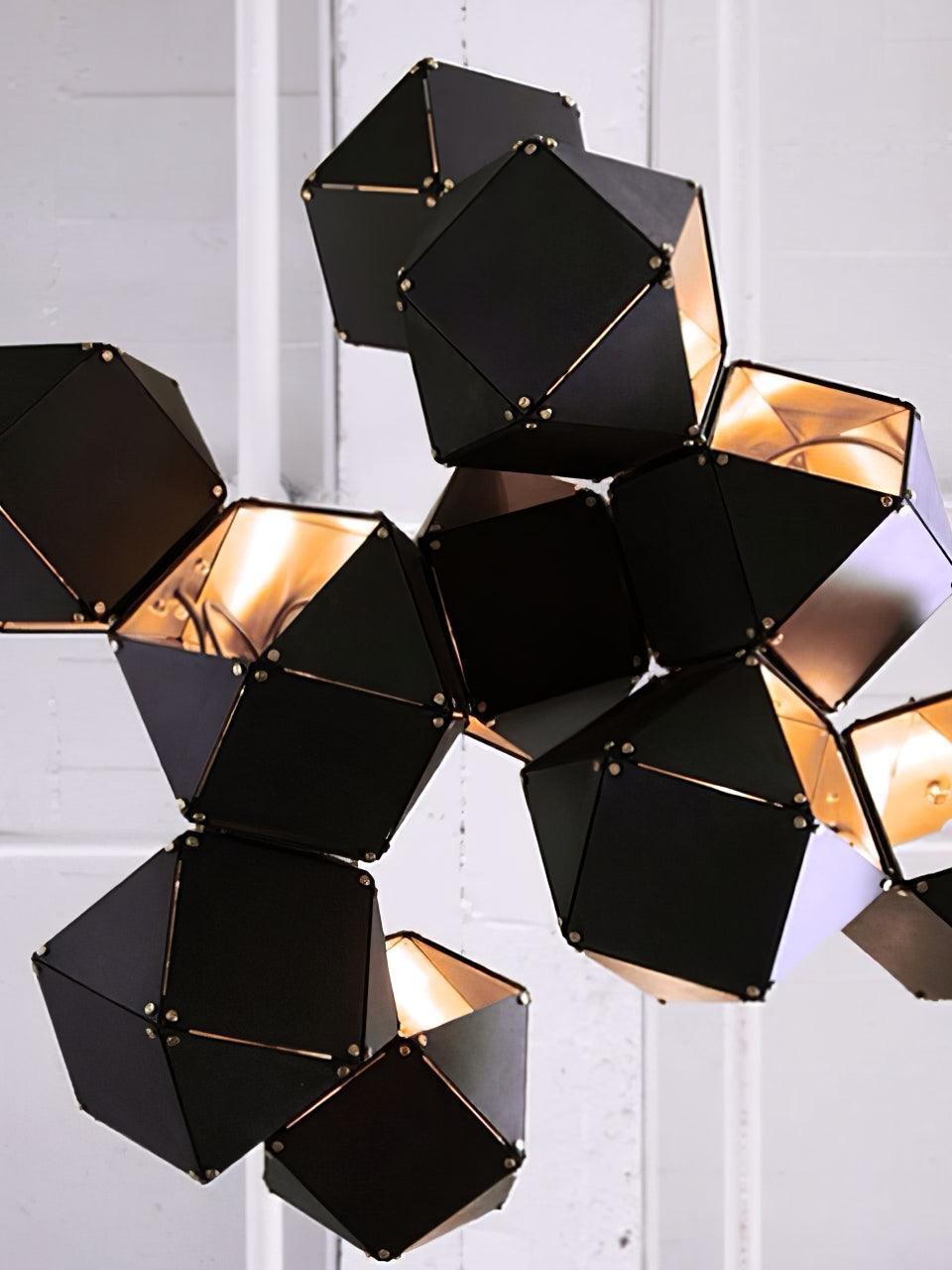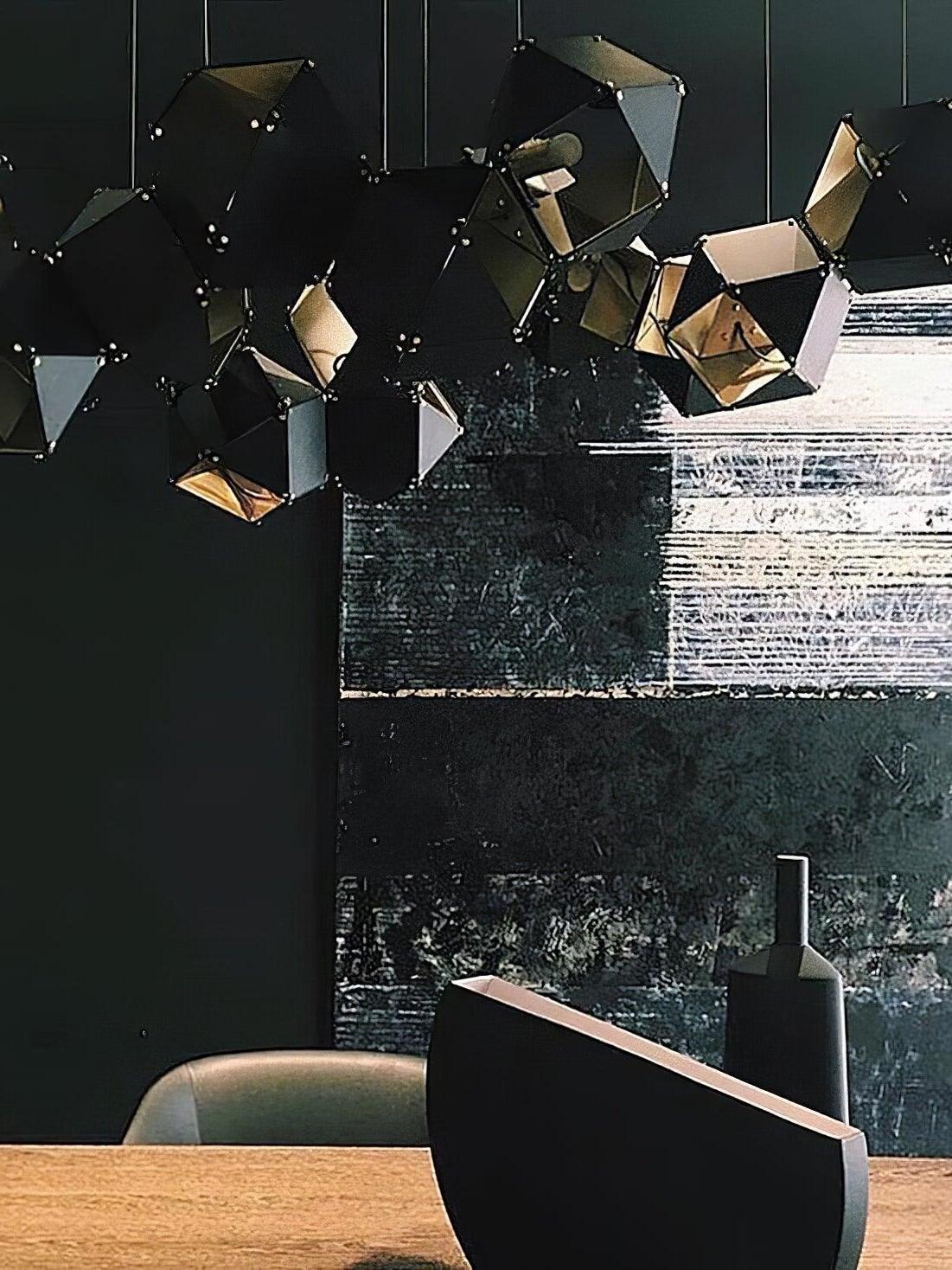 Un accesorio de proporciones metálicas, la firma WELLES es una pieza moderna que muestra el arte experto. Los polígonos metálicos huecos se ramifican en un sistema modular de configuraciones interconectadas para una ilusión óptica impresionante. Con sus infinitas posibilidades, WELLES flota en el aire emitiendo una nube de luz suave a través de su silueta multifacética y escultóricamente innovadora.