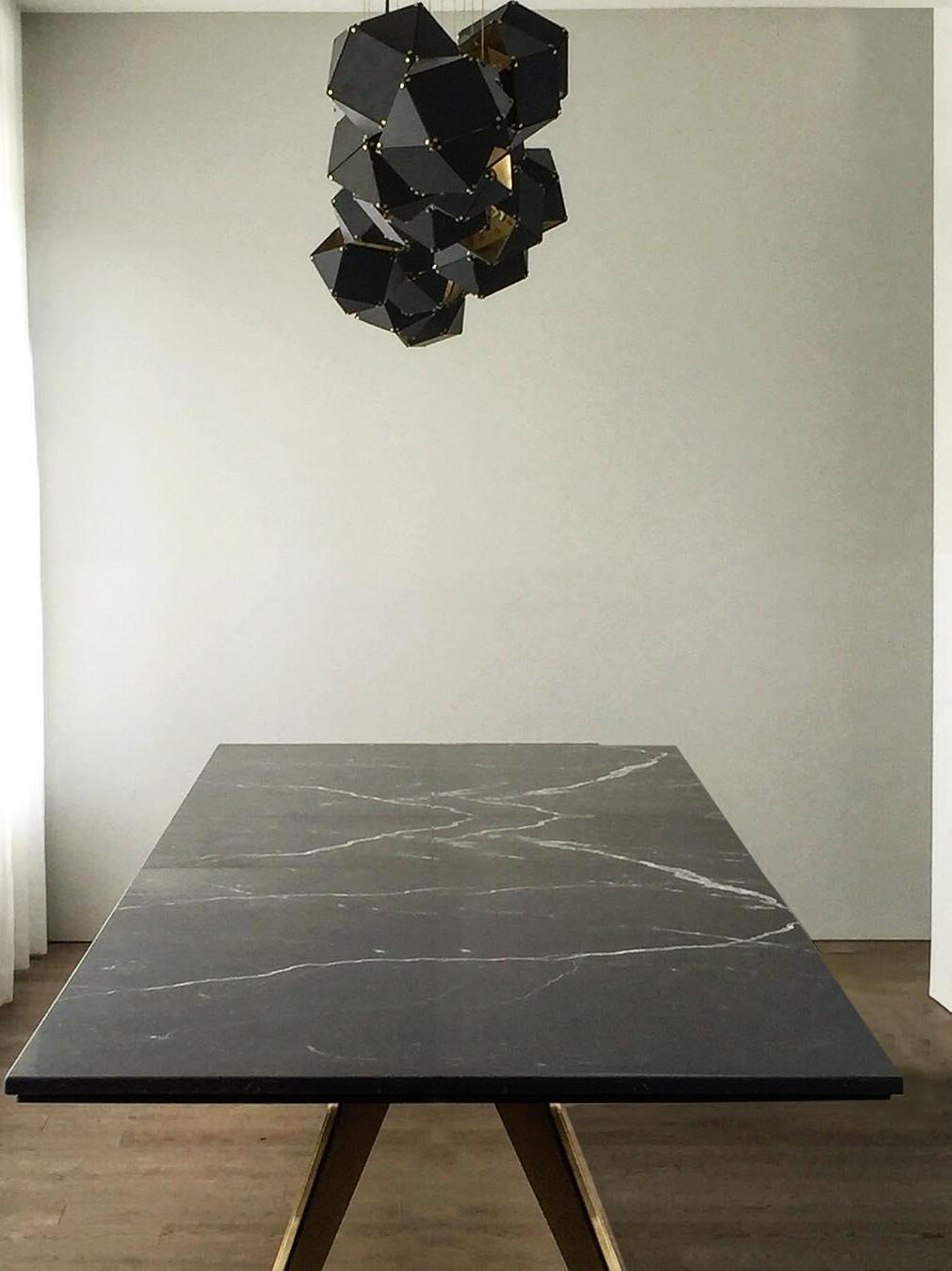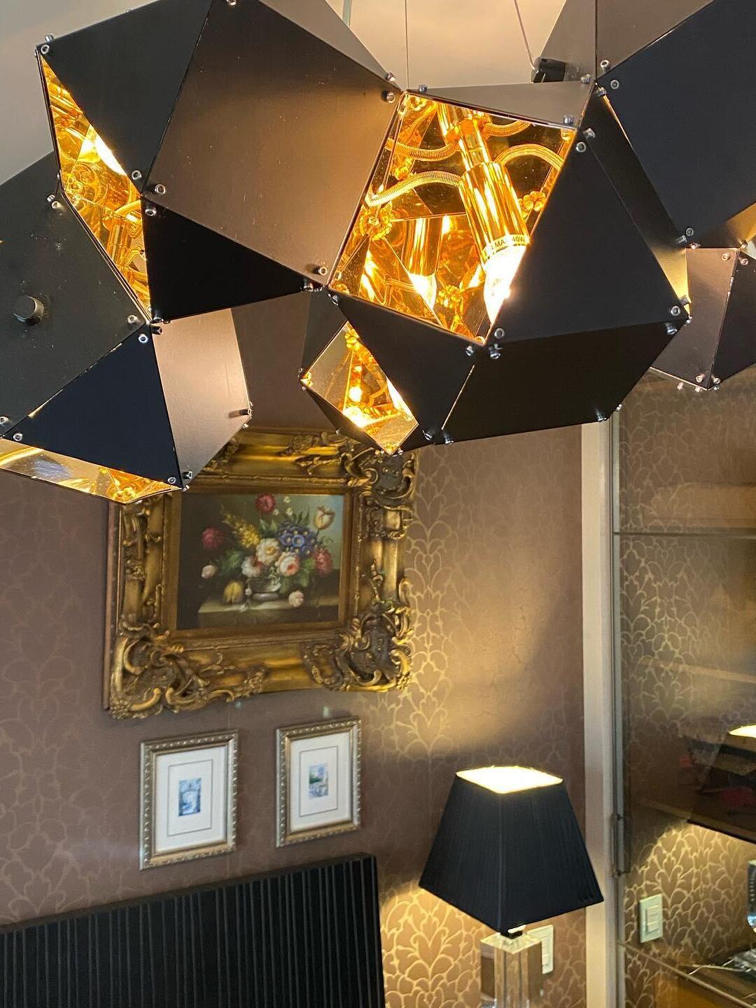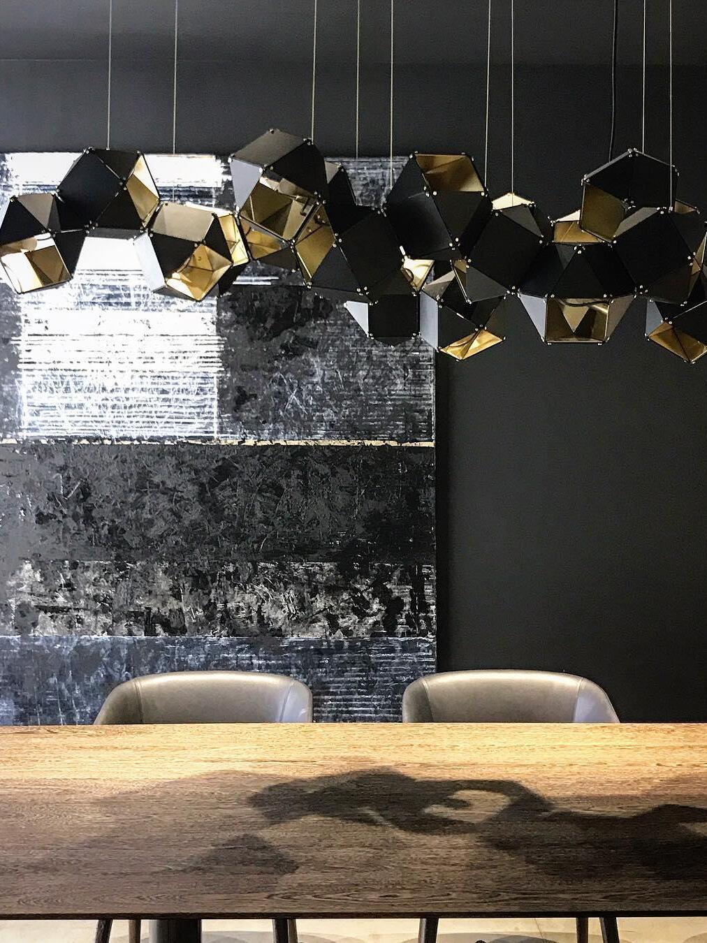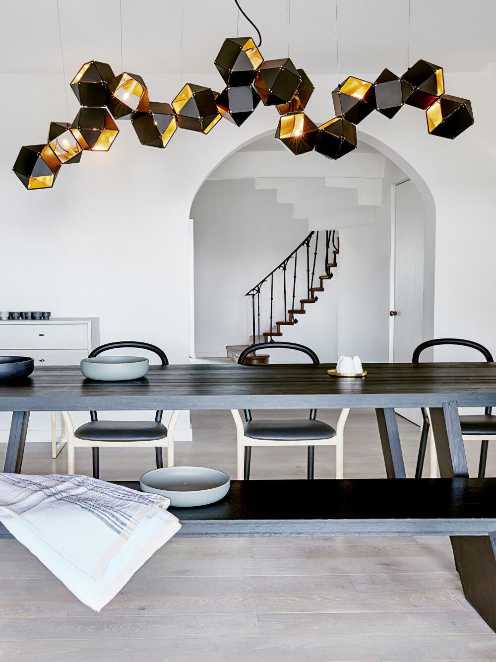 Un accesorio de proporciones metálicas, la firma WELLES es una pieza moderna que muestra el arte experto. Los polígonos metálicos huecos se ramifican en un sistema modular de configuraciones interconectadas para una ilusión óptica impresionante. Con sus infinitas posibilidades, WELLES flota en el aire emitiendo una nube de luz suave a través de su silueta multifacética y escultóricamente innovadora.