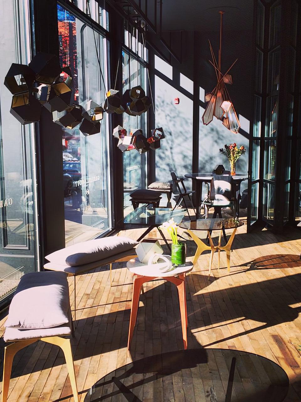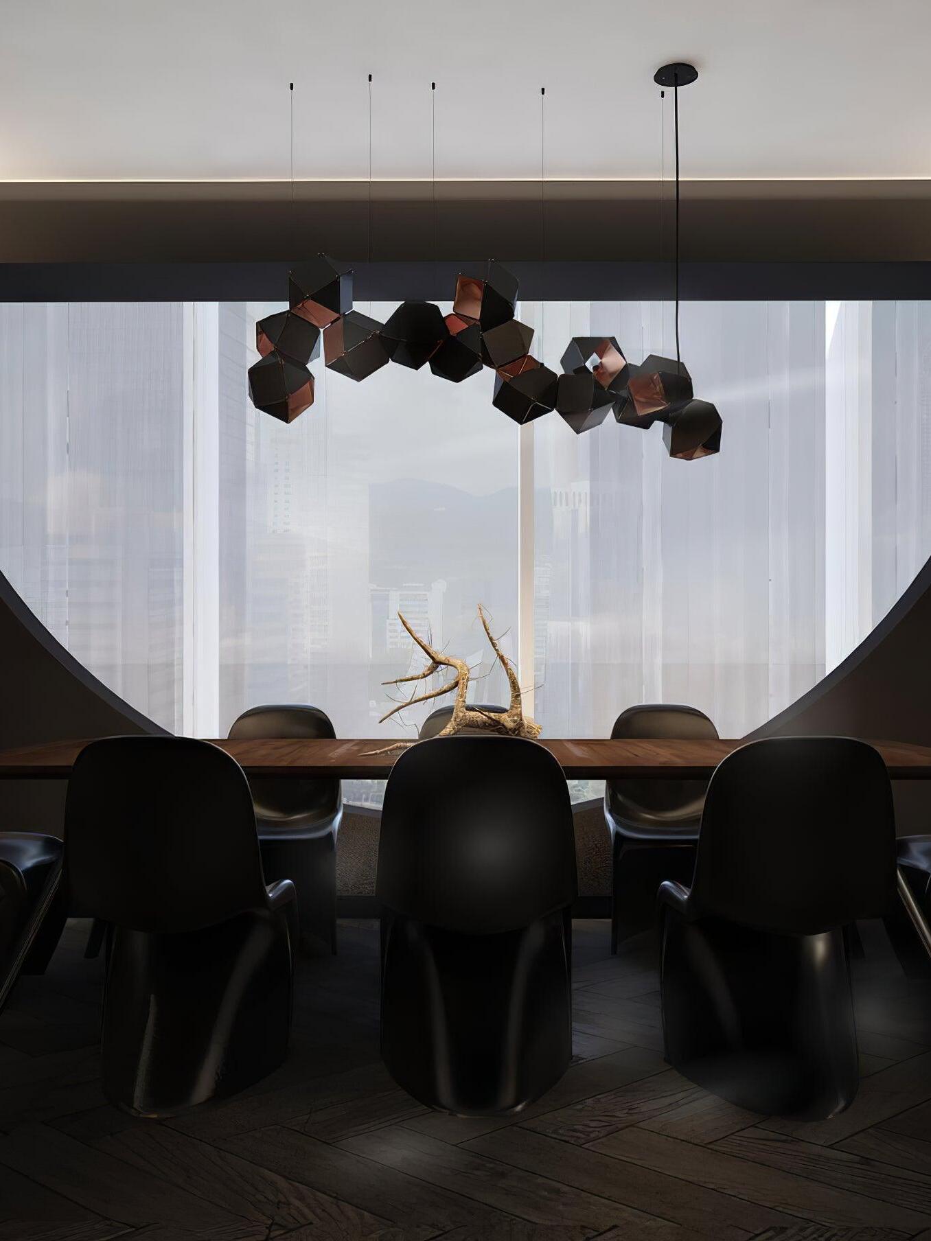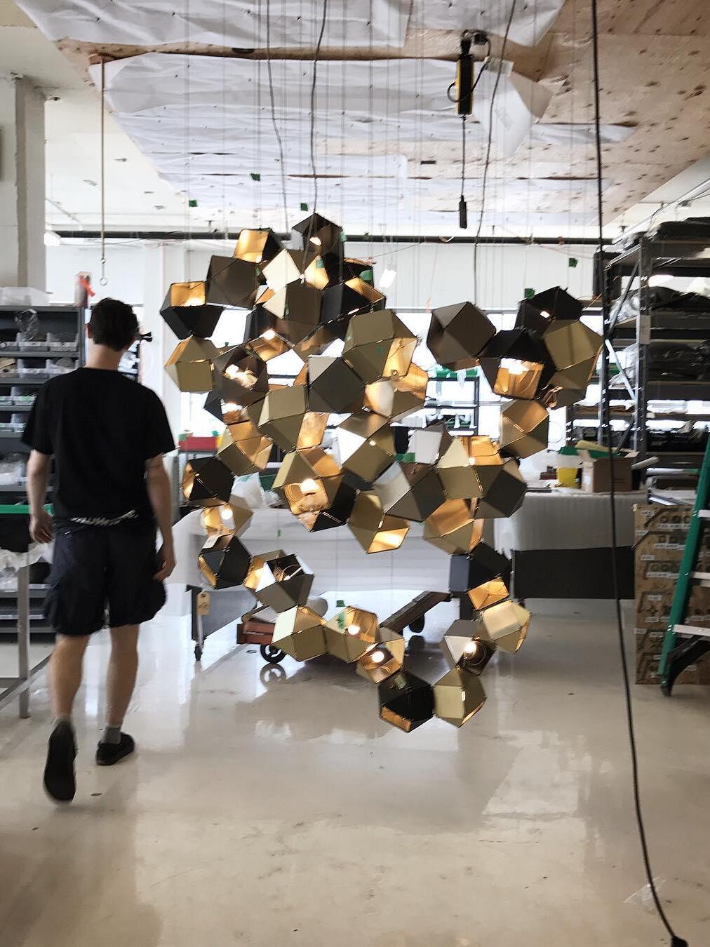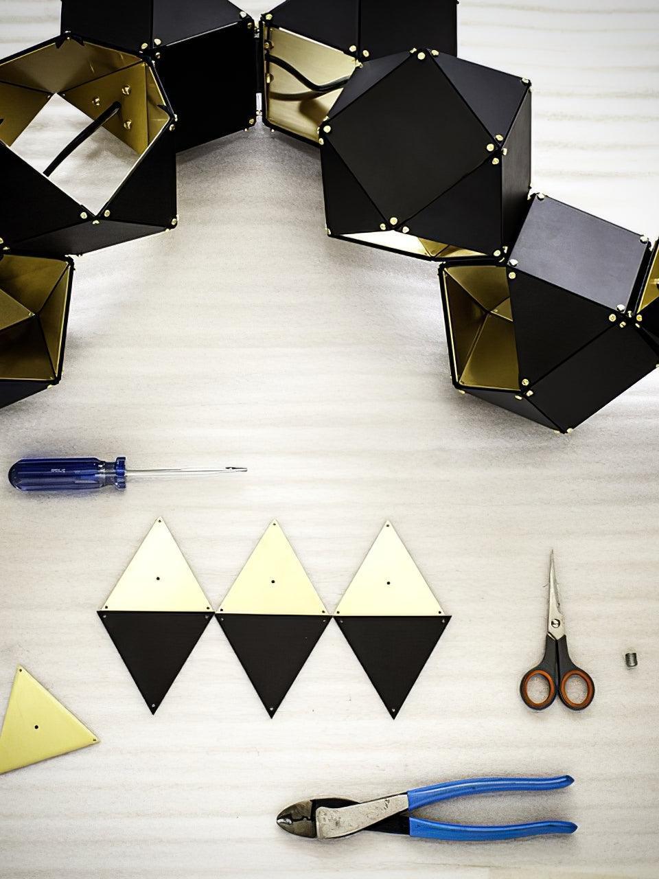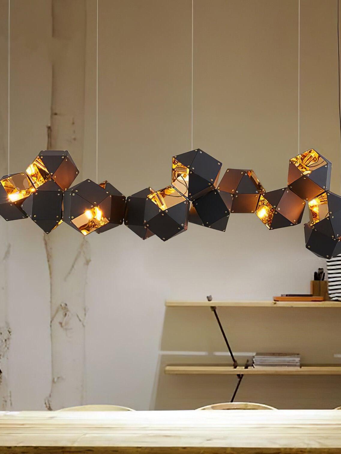Un accesorio de proporciones metálicas, la firma WELLES es una pieza moderna que muestra el arte experto. Los polígonos metálicos huecos se ramifican en un sistema modular de configuraciones interconectadas para una ilusión óptica impresionante. Con sus infinitas posibilidades, WELLES flota en el aire emitiendo una nube de luz suave a través de su silueta multifacética y escultóricamente innovadora.