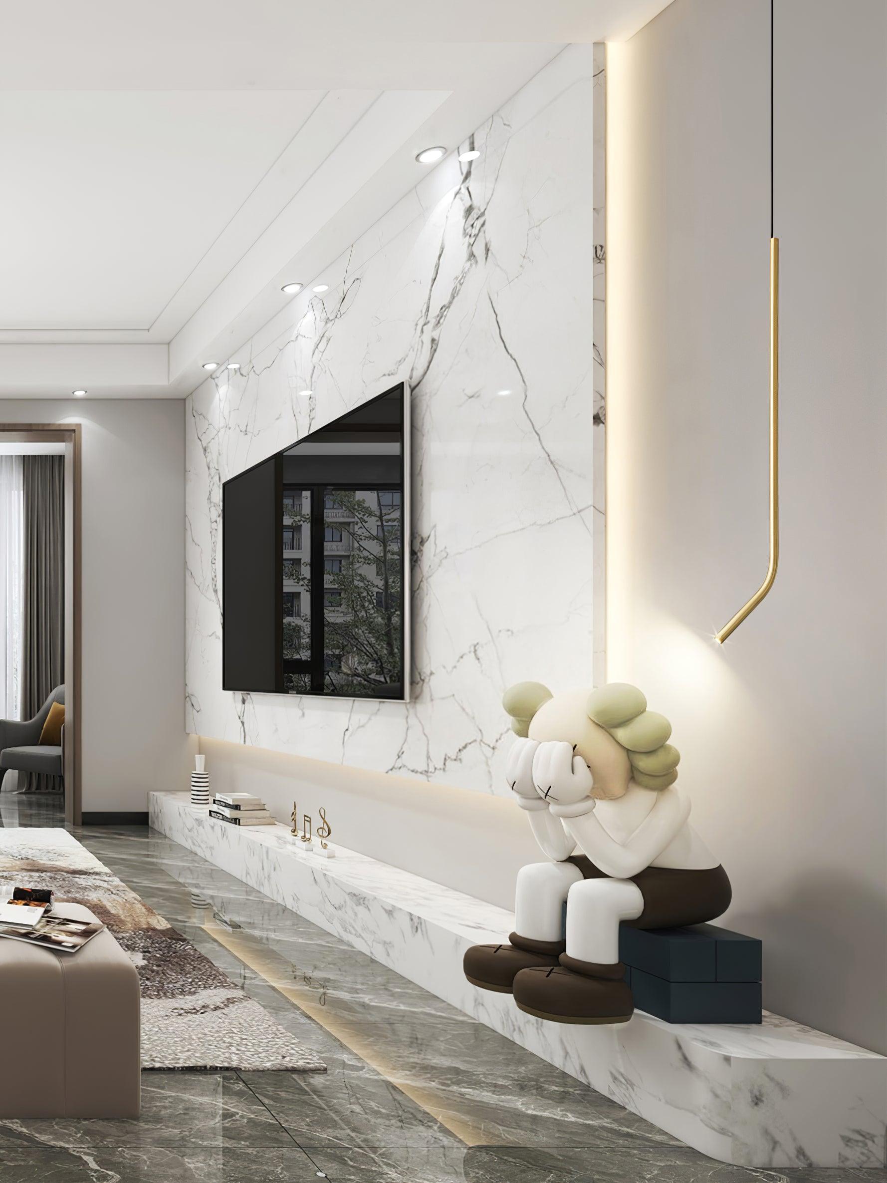 Questa bellissima lampada a sospensione Bending Line sarà un pezzo importante in ogni casa. Realizzato con metallo di qualità, il lampadario proietta una forma accattivante con curve e pieghe che porteranno un tocco di stile moderno nel tuo spazio abitativo.