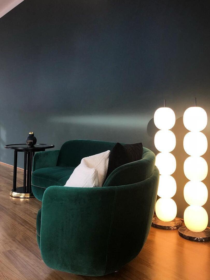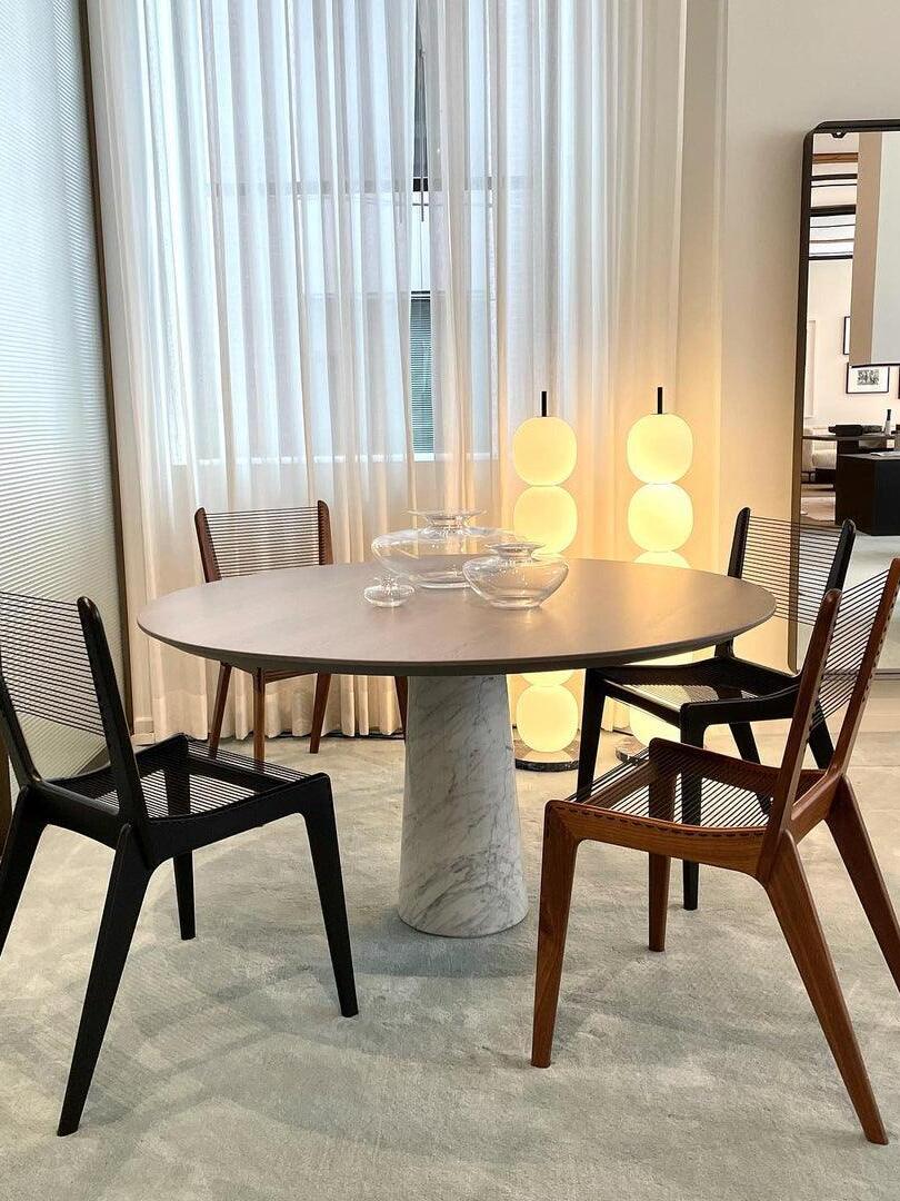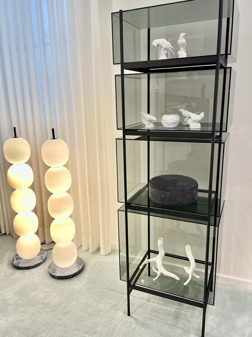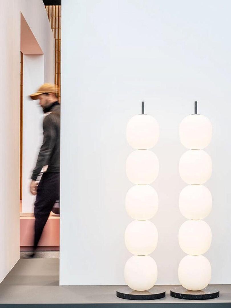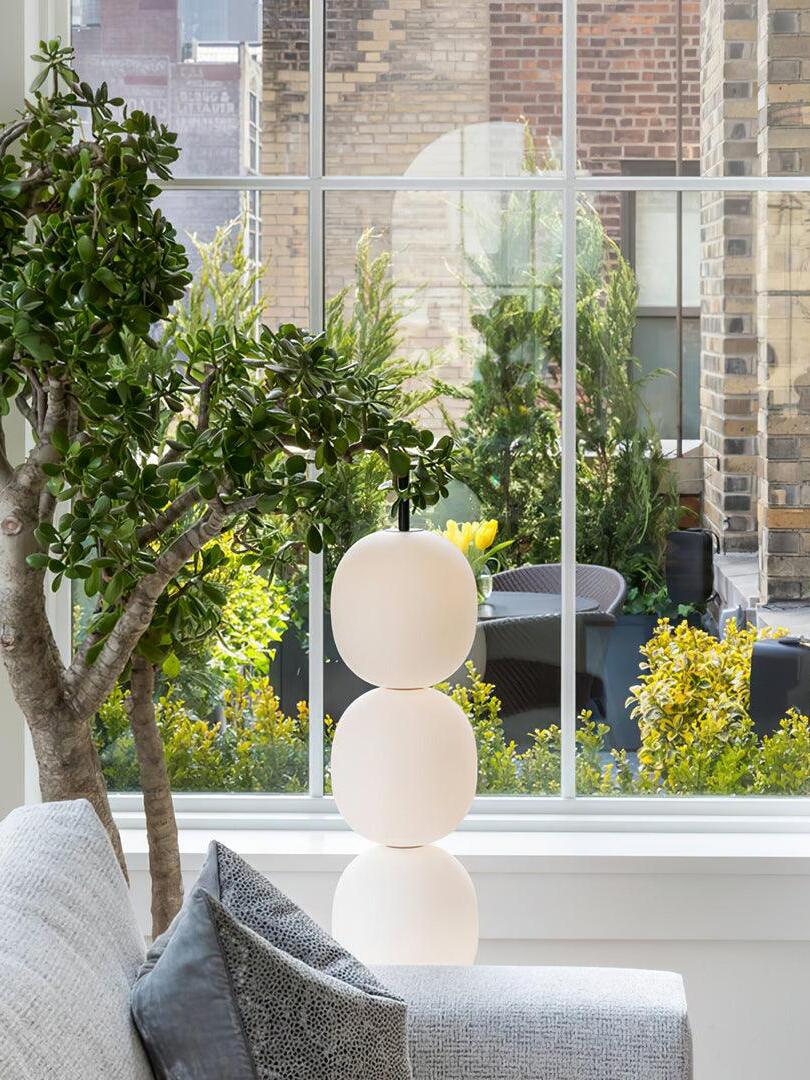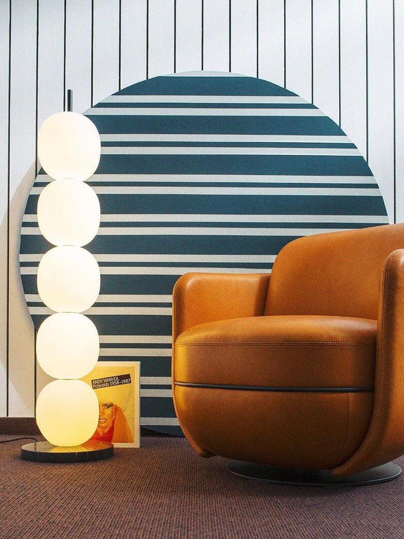 Gli originali globi di vetro soffiato a mano ricordano i galleggianti e le boe che decorano il fiume. Il pulsante della lampada integrato sullo stelo superiore attenua l'abbagliamento della luce. La base è disponibile in marmo.