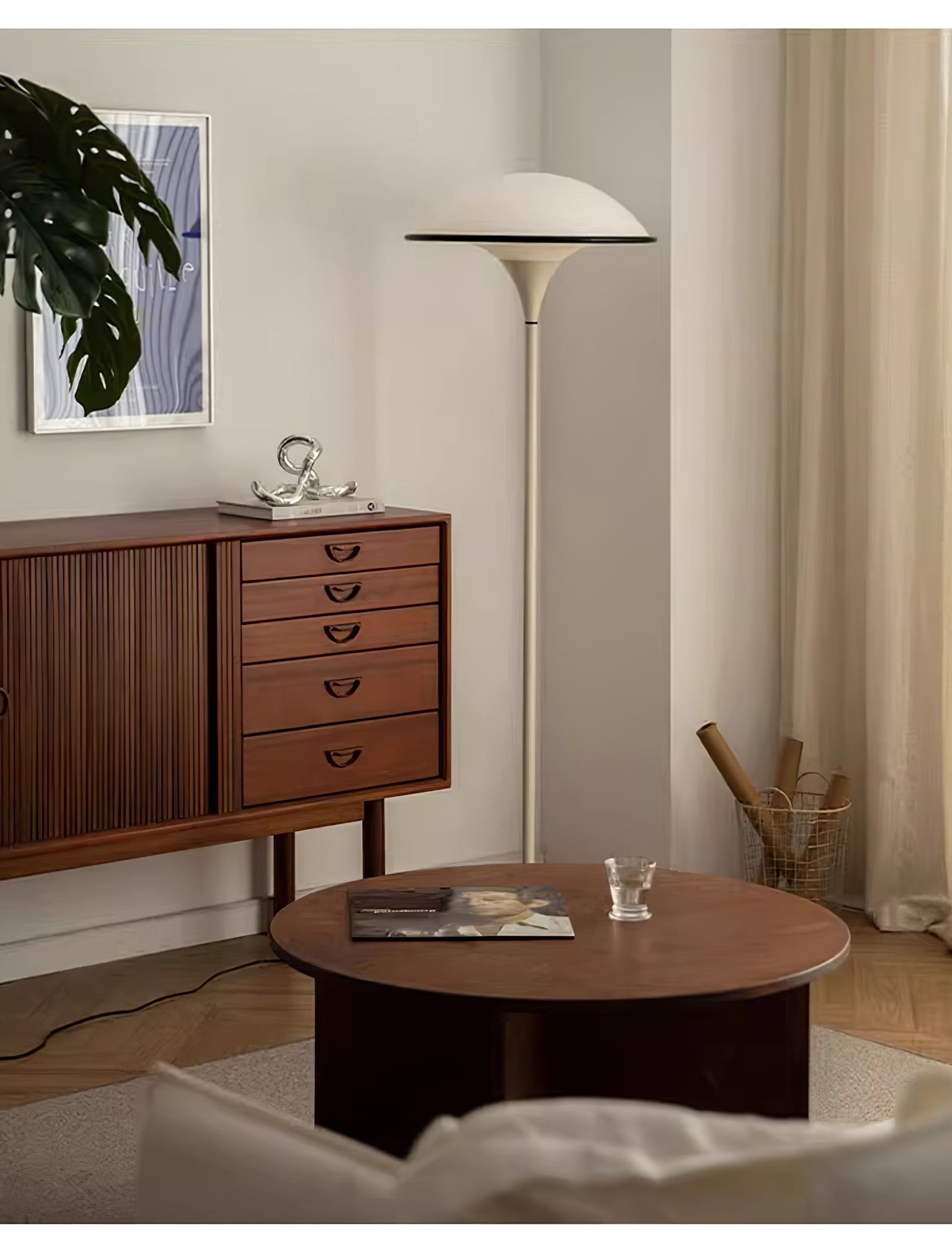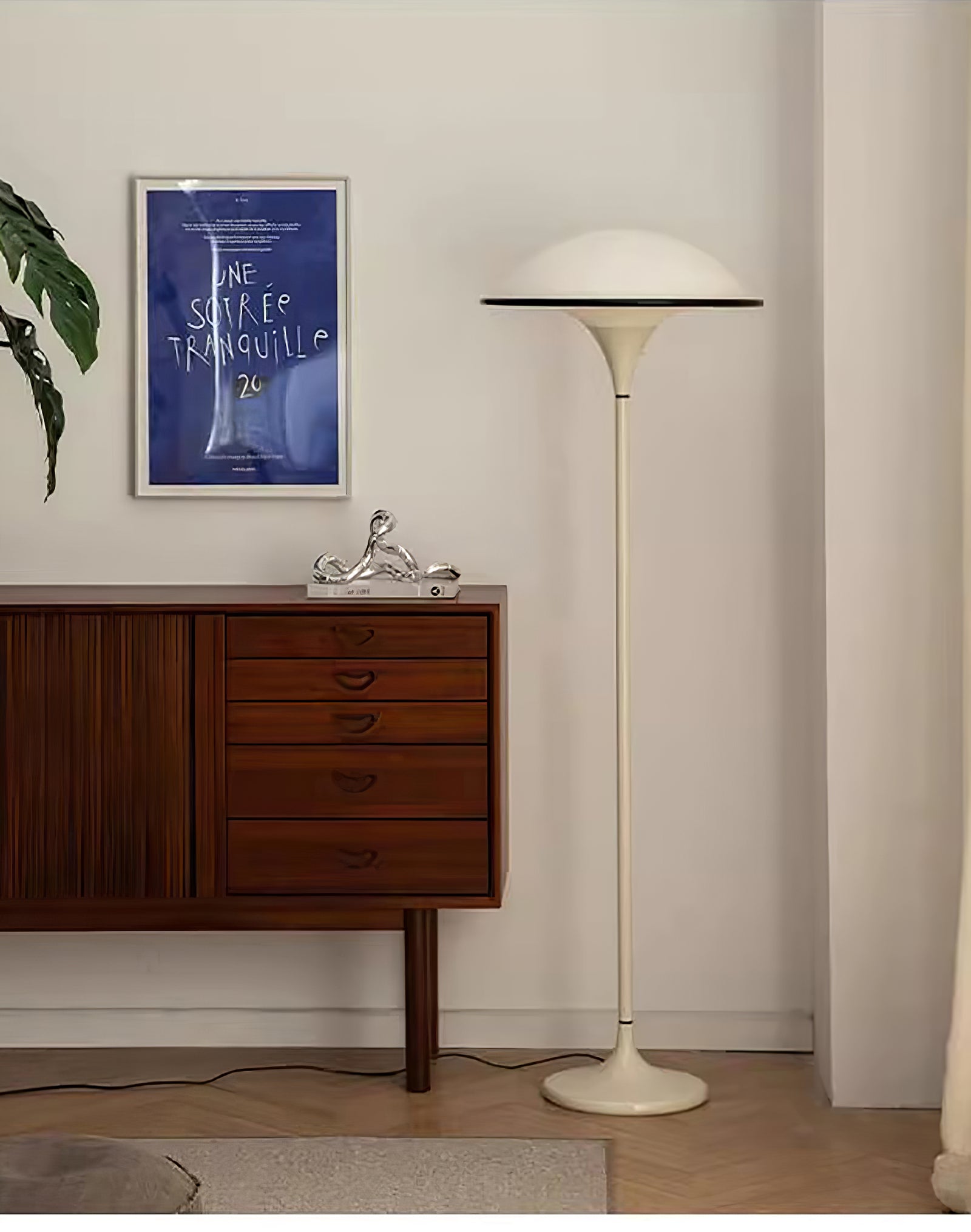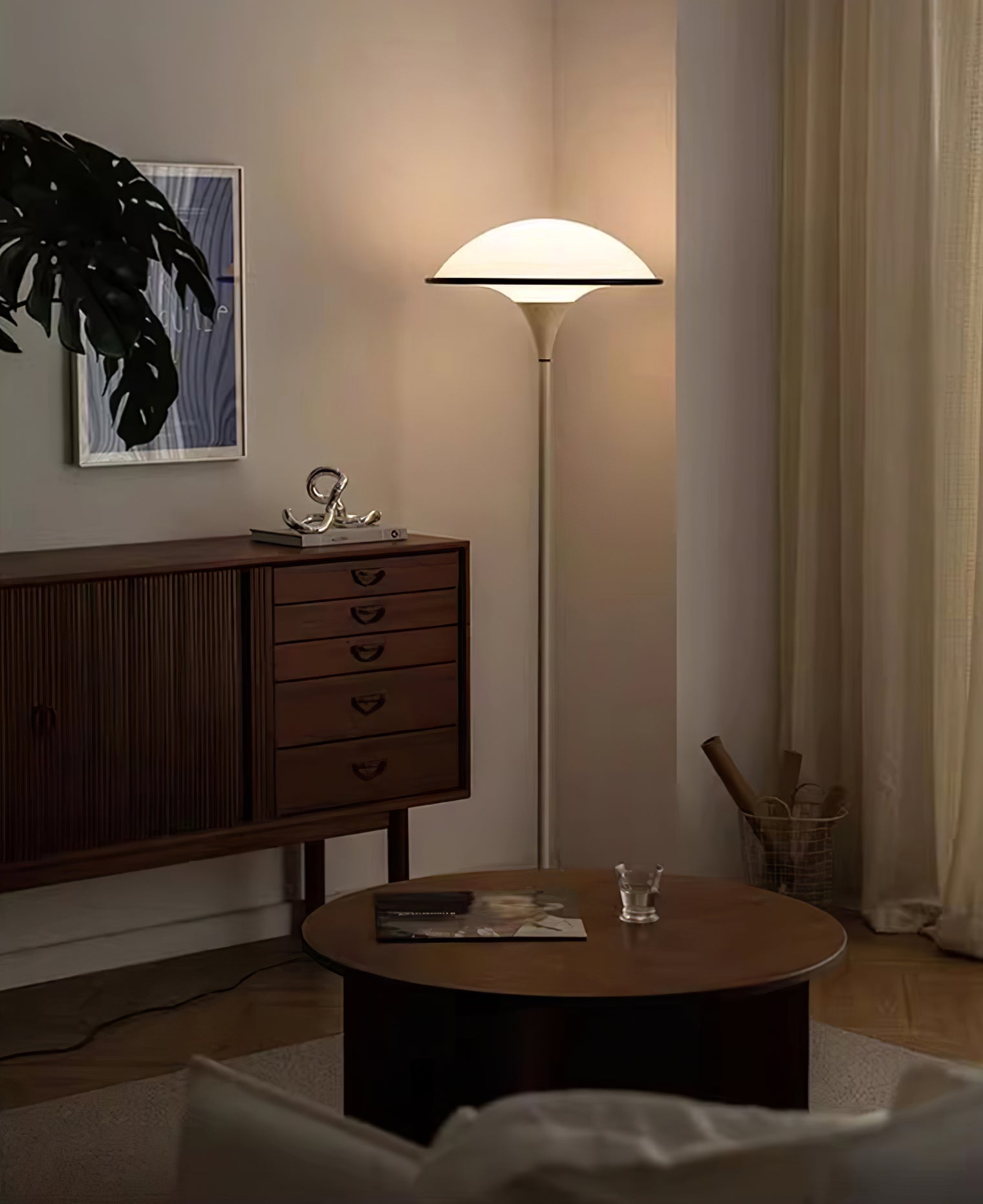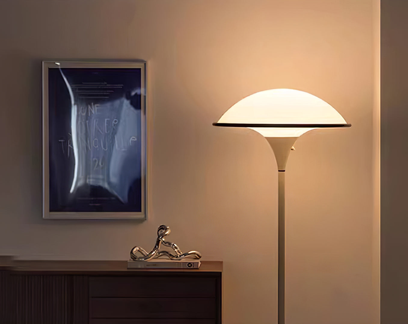 The Fontana Mushroom Dome LED Floor Lamp combines elegance with a touch of retro-modern style. Its design features a large, mushroom-shaped dome shade that emits a soft, warm LED glow, creating a cozy ambiance in any room. The slim, gracefully tapered pole extends from a sturdy, rounded base, giving the lamp a balanced and refined appearance. The shade’s smooth curves and the lamp’s minimalist silhouette make it a versatile addition to various interiors, from contemporary to mid-century settings. This floor lamp is perfect for living rooms, bedrooms, or lounge areas, where its stylish form and diffused lighting can enhance the overall atmosphere.